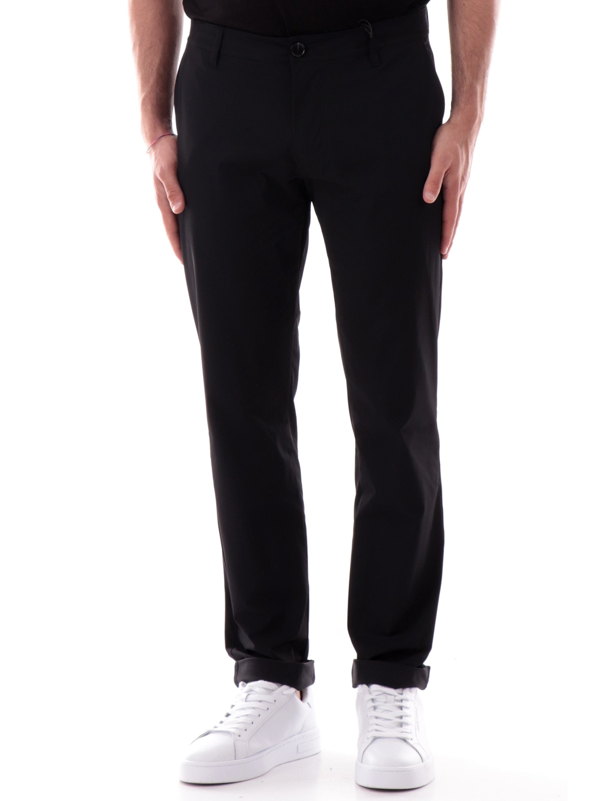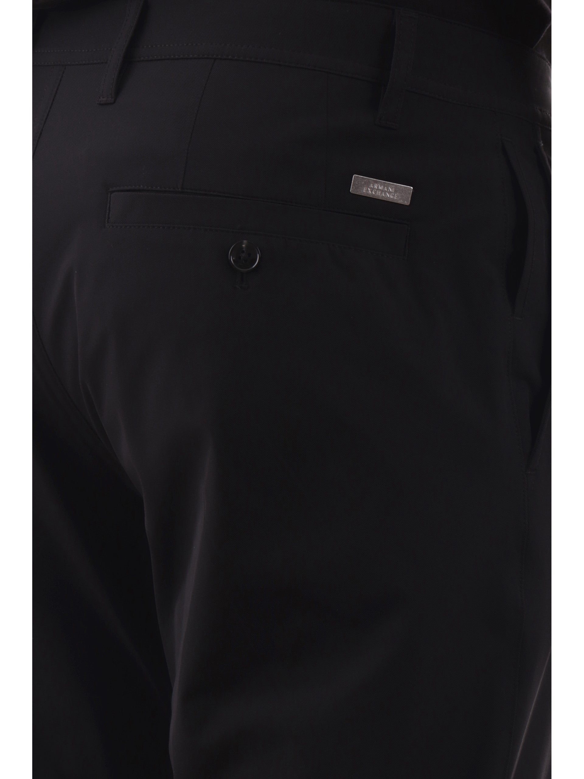 Pantaloni Armani Exchange neri da uomo 8NZP49ZNYZZ, realizzato in tessuto elasticizzato Bi-stretch. Questi pantaloni AX neri hanno il punto vita elasticizzato, la chiusura con bottone e zip, due tre tasche laterali aperte con taglio dritto, la predisposizione per indossare la cintura e due tasche posteriori con bottoni.