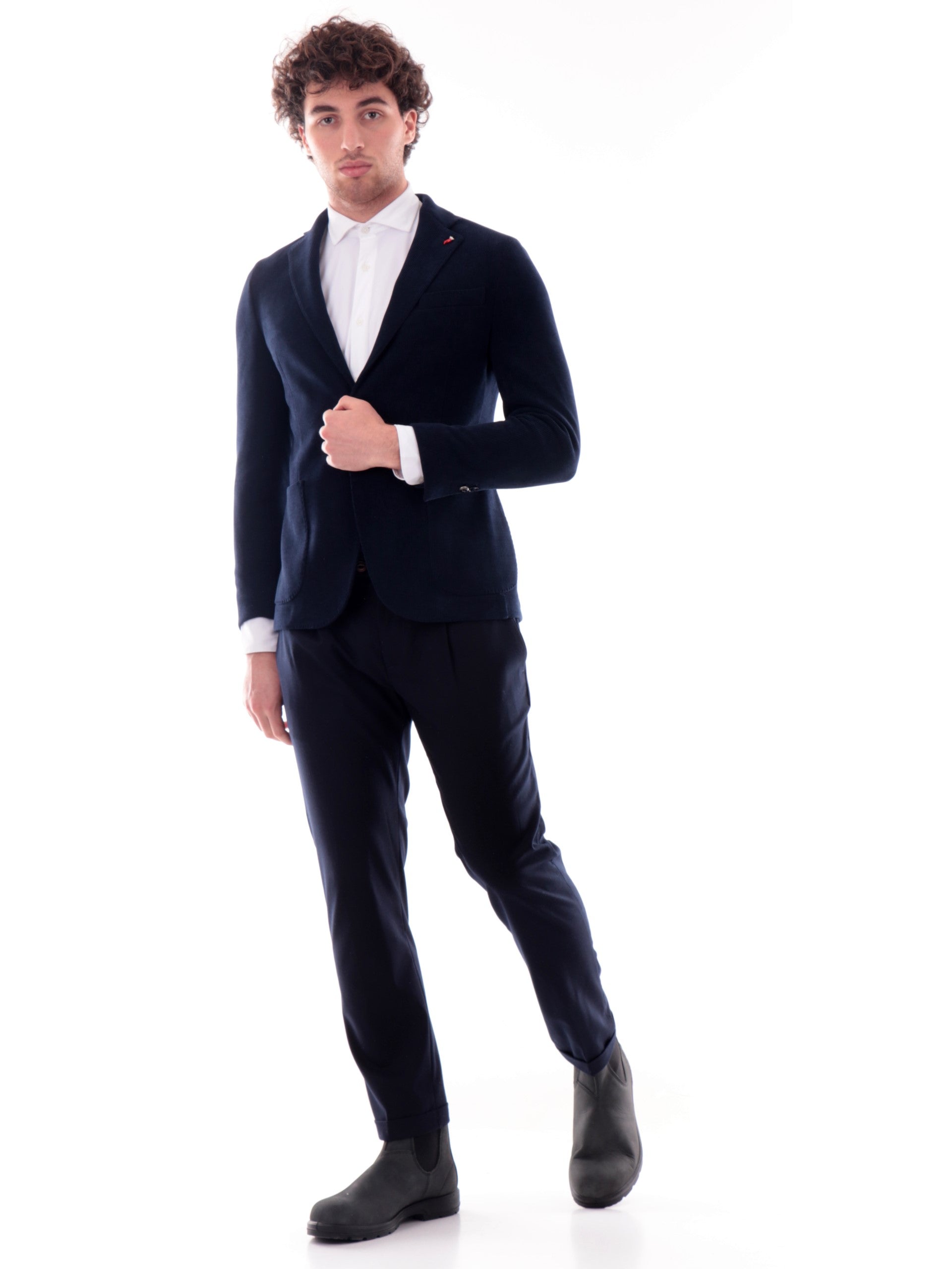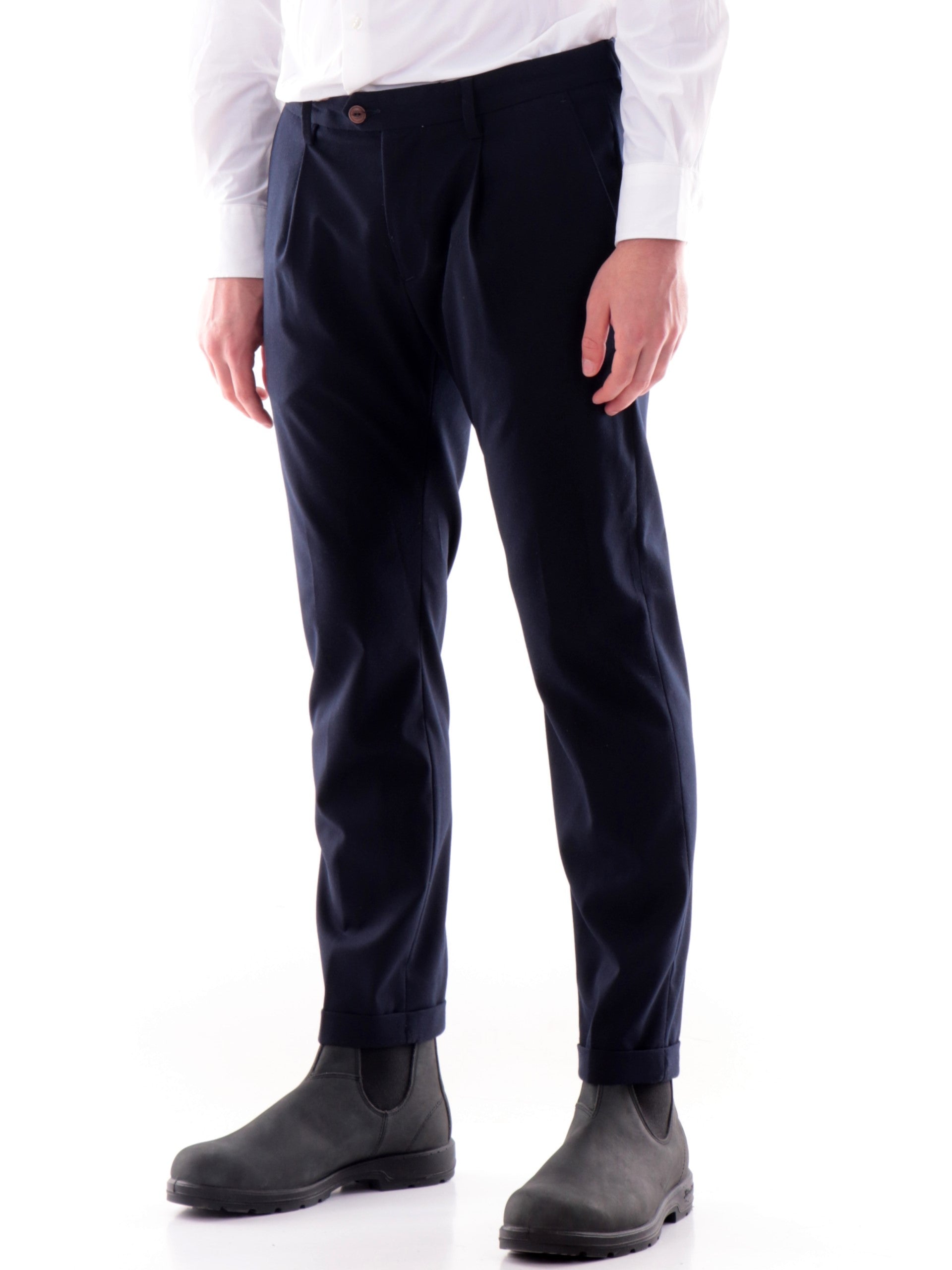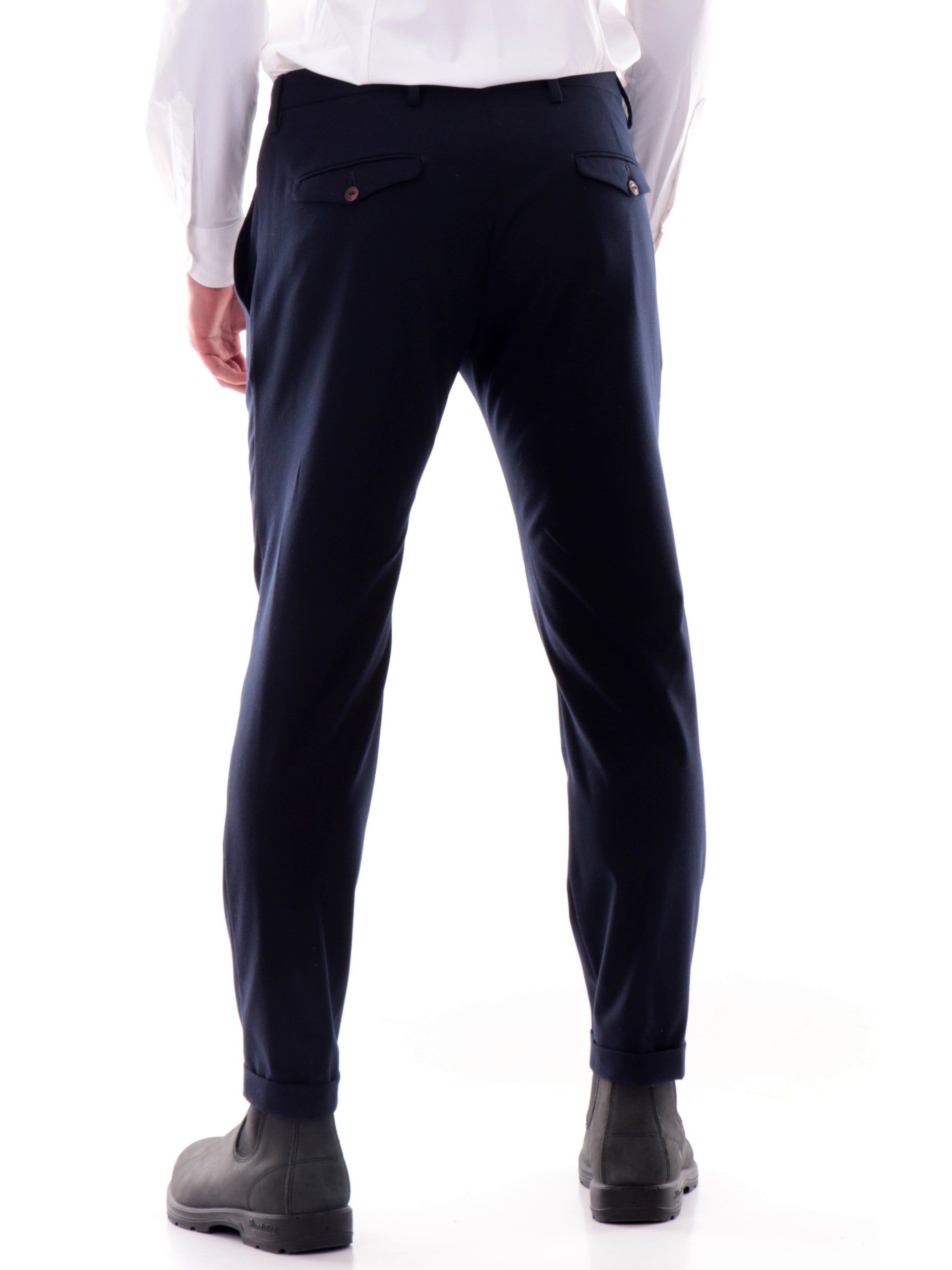 Pantaloni blu da uomo Modfitters Regent. Questi pantaloni da uomo blu sono realizzati dal tessuto in flanella che li rende caldi, morbidi e sofffici al tatto, questi pantaloni Regent sono caratterizzati dalla chiusura con bottone più zip, due tasche laterali aperte e due tasche posteriori con bottoni e il fondo con il risvolto. Questi pantaloni sono perfetti per un look sia elegante che casual
