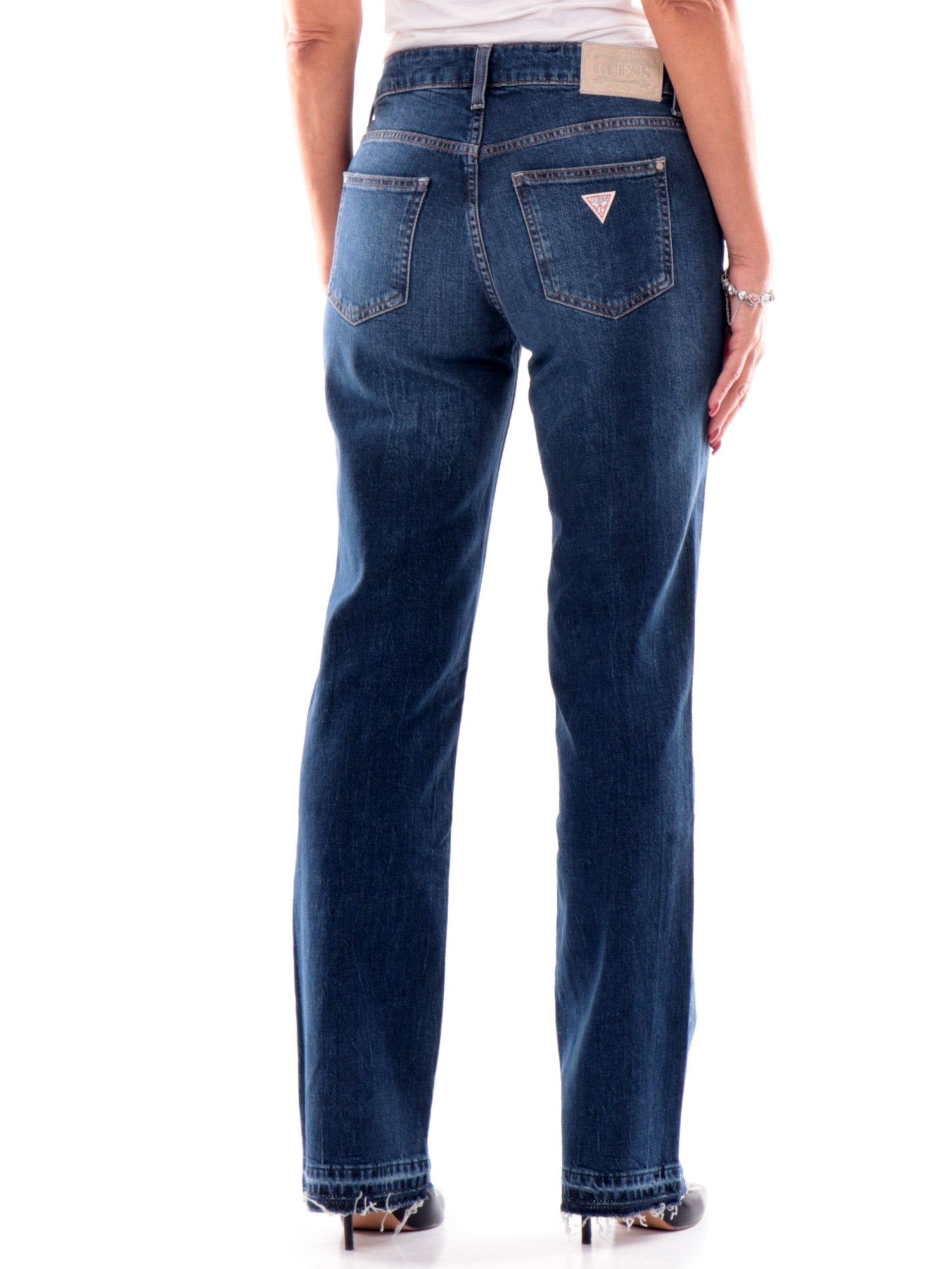 Pantaloni jeans Guess da donna Nicky Cigarette W5YA0RD5QP4TGLC. Questi pantaloni jeans Donna fondo cropped Guess hanno la chiusura con bottone più zip, due tasche laterali di cui la destra con taschino, due tasche posteriori di cui la destra con patch del brand ricamato, la vestibilità dritta .