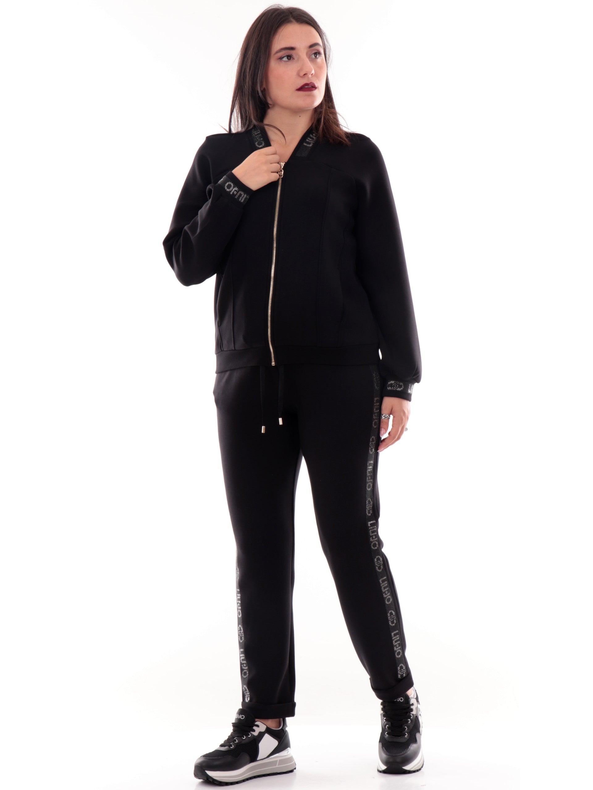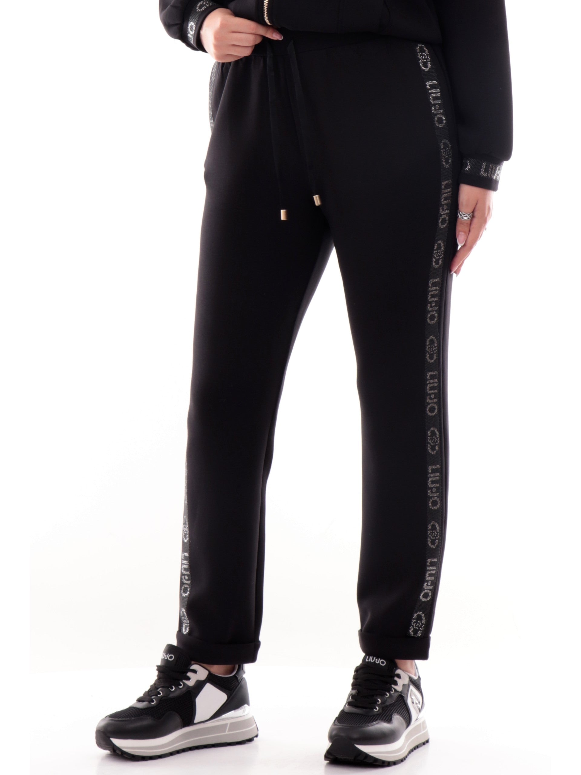 Pantaloni tuta Liu Jo neri da donna bande con strass TF5093J4616