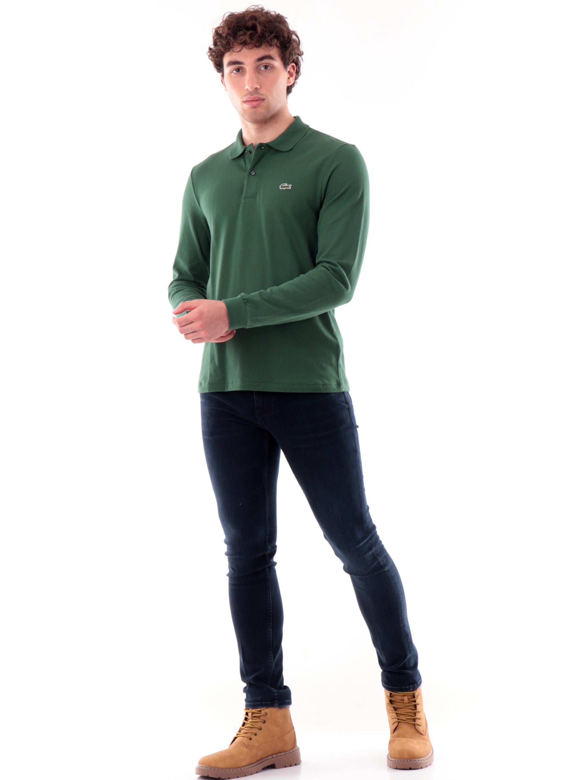 Polo Lacoste verde da uomo maniche lunghe L1312