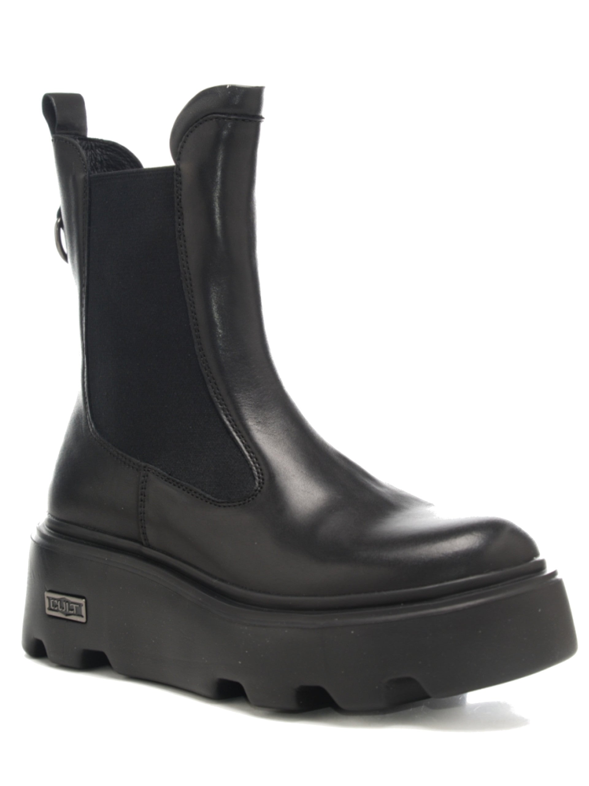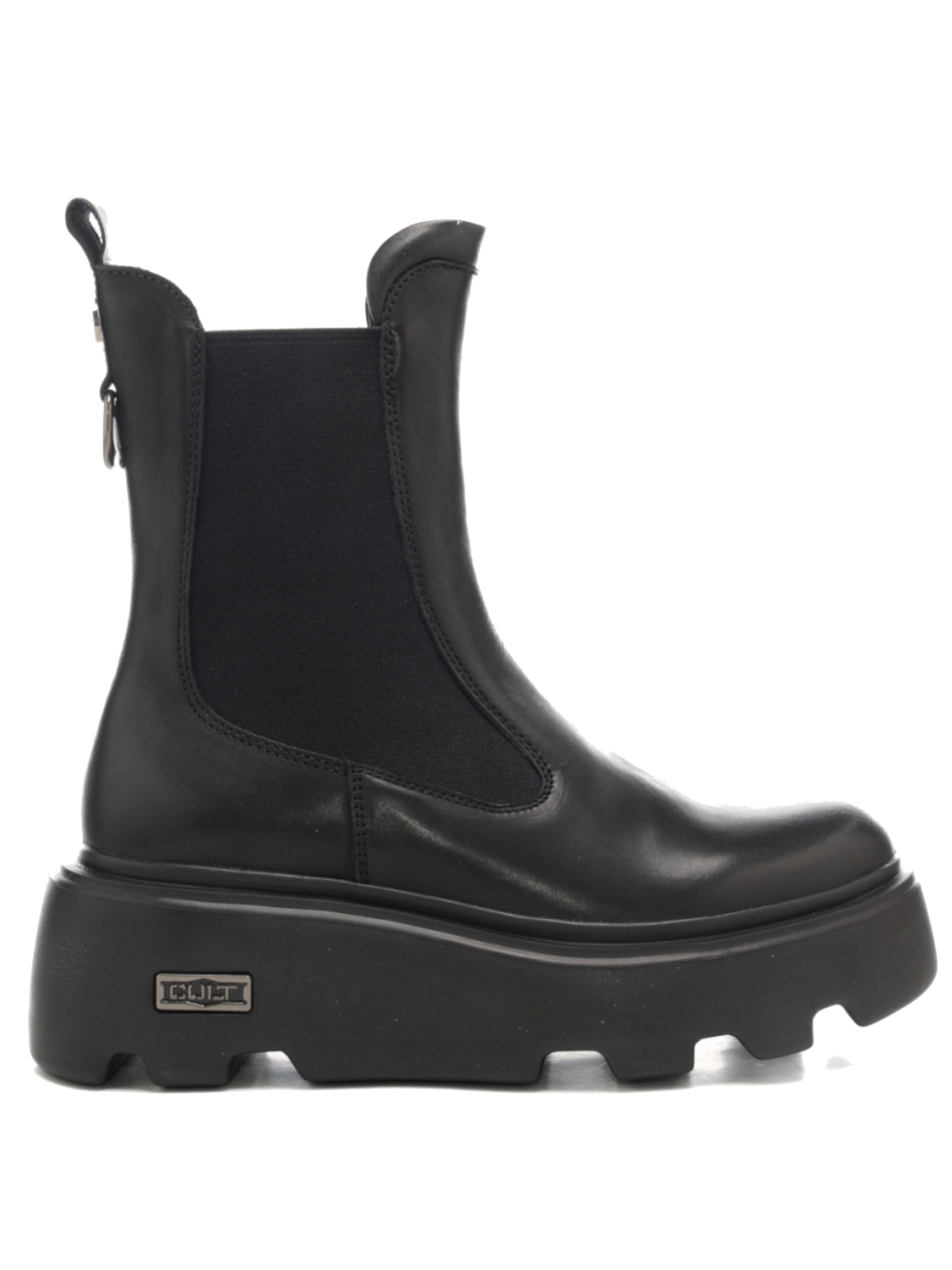 Stivali neri Cult New Rock da donna. Questi stivaletti Cult neri con suola platform in gomma sono realizzati in pelle, con il logo laterale. Questi anfibi Cult da donna sono ideali per ogni occasionee si abbinano facilmente ai tuoi outfit.