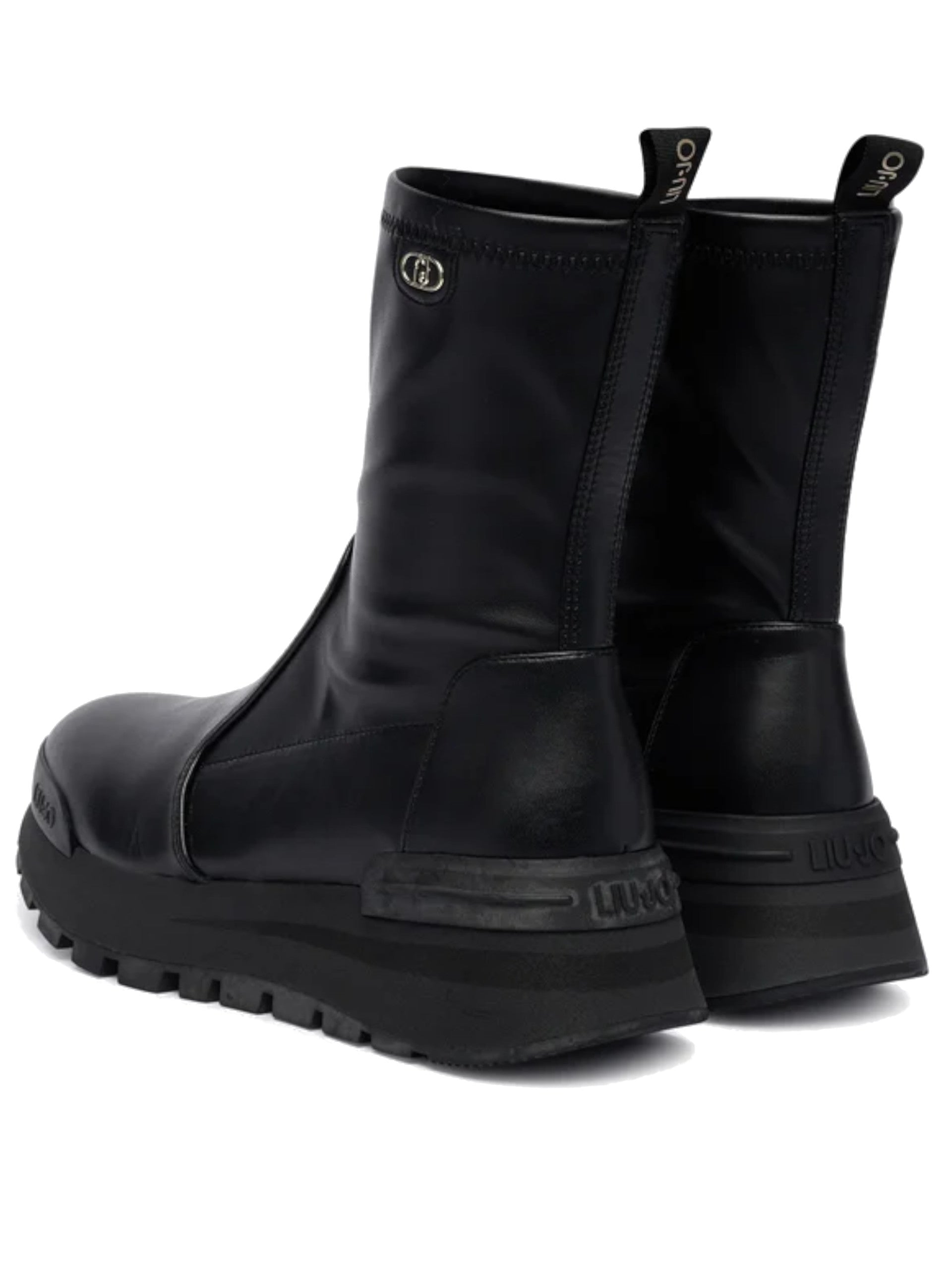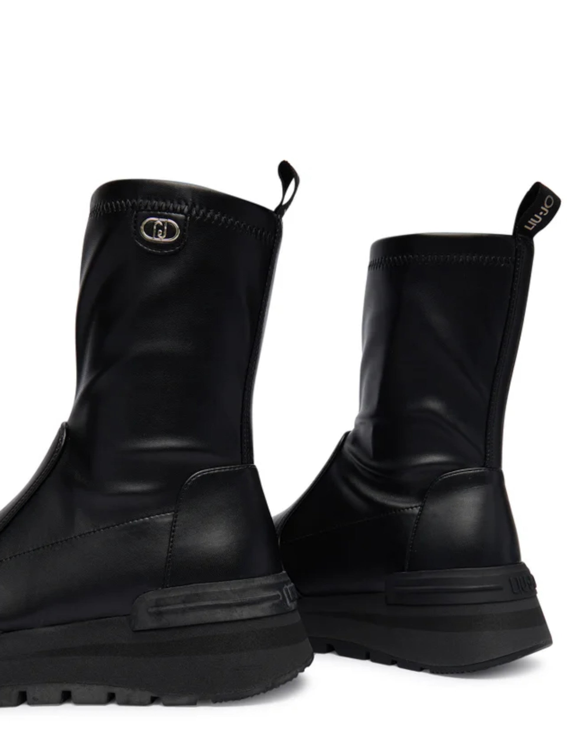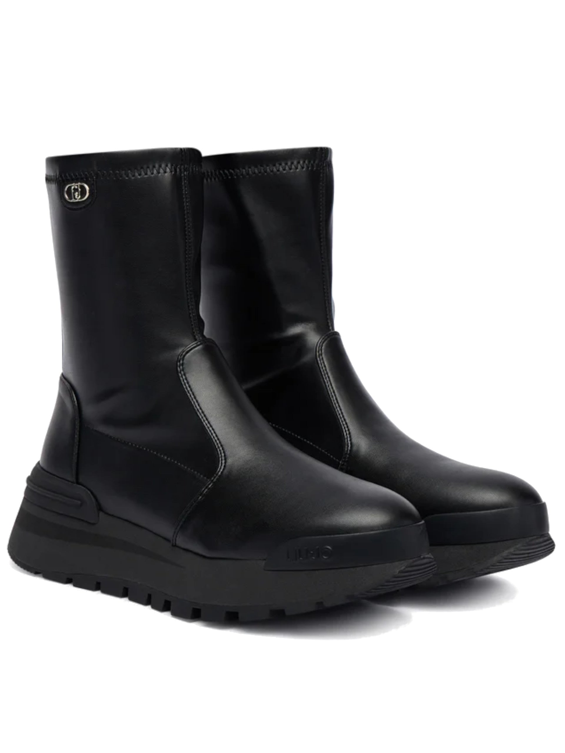 Stivali Liu Jo neri da donna Amazing 22 Mid Sneaker BF5051EX046. Queste scarpe Liu Jo nere hanno la tomaia in pelle e la suola alta con gomma rinforzata. Sul davanti di queste Liu Jo nere troviamo lalinguetta posteriore che agevola l'entrata del piede e il patch del brand applicato a contrasto colore.