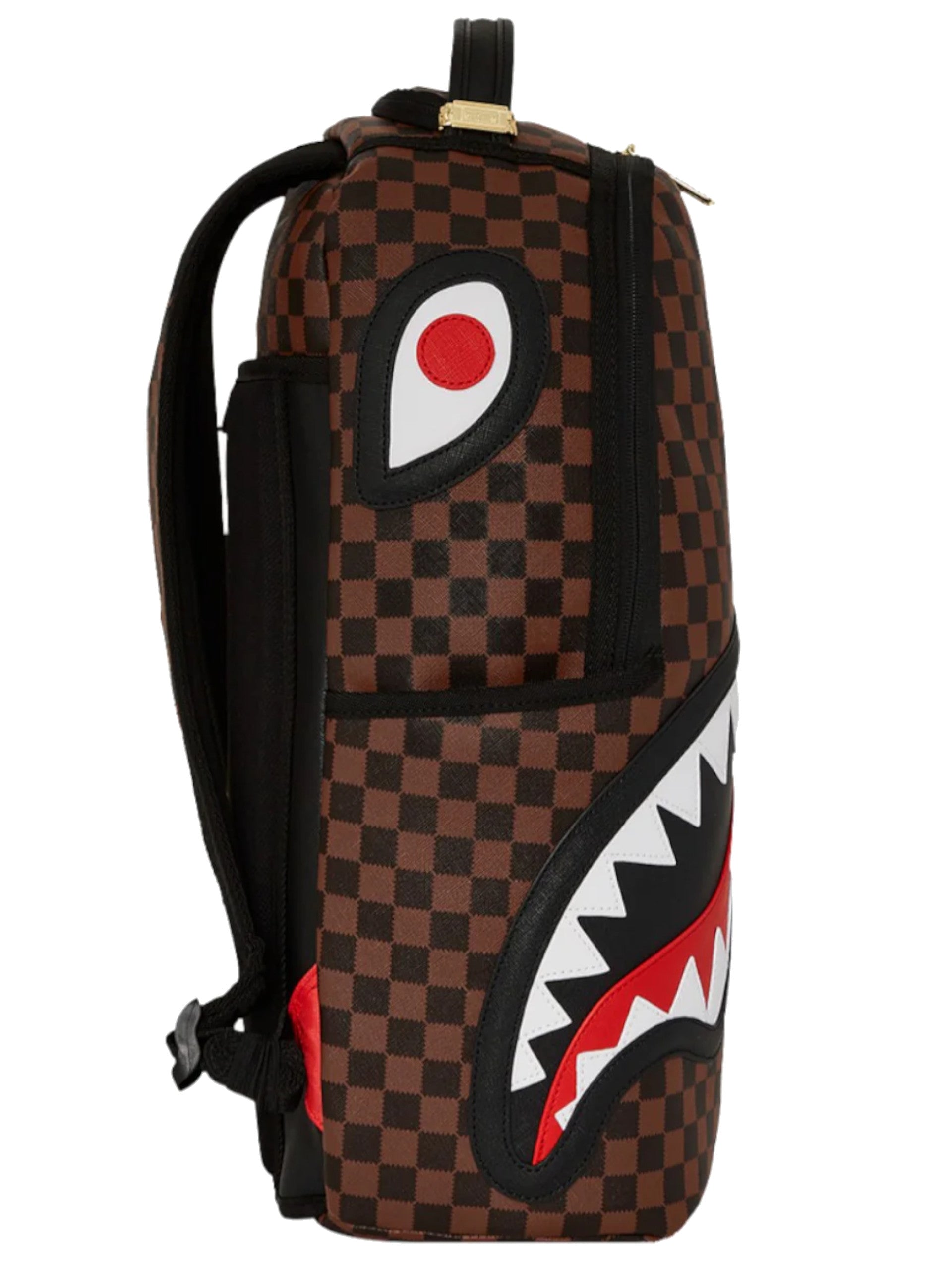 Zaino sprayground Sawthoot Sharks Paris. Zaino Sprayground Shark In Paris Sawtooth arriva direttamente dalla capsule più iconica e raffinata del noto brand Americano. PARIS DLXSV BACKPACK: una fusione letale di stile metropolitano, dettagli di design taglienti e atmosfera da passerella.Eleganza tagliente in edizione limitata La grafica “Shark in Paris” ritorna con il classico check marrone e nero, ma si rinnova con un tocco ancora più aggressivo: i riquadri della scacchiera sono “sawtooth”, ovvero con bordi a rilievo. In primo piano, l’intramontabile shark mouth nei colori originali Sprayground: bianco, nero e rosso. Un dettaglio che urla “luxury con carattere”.