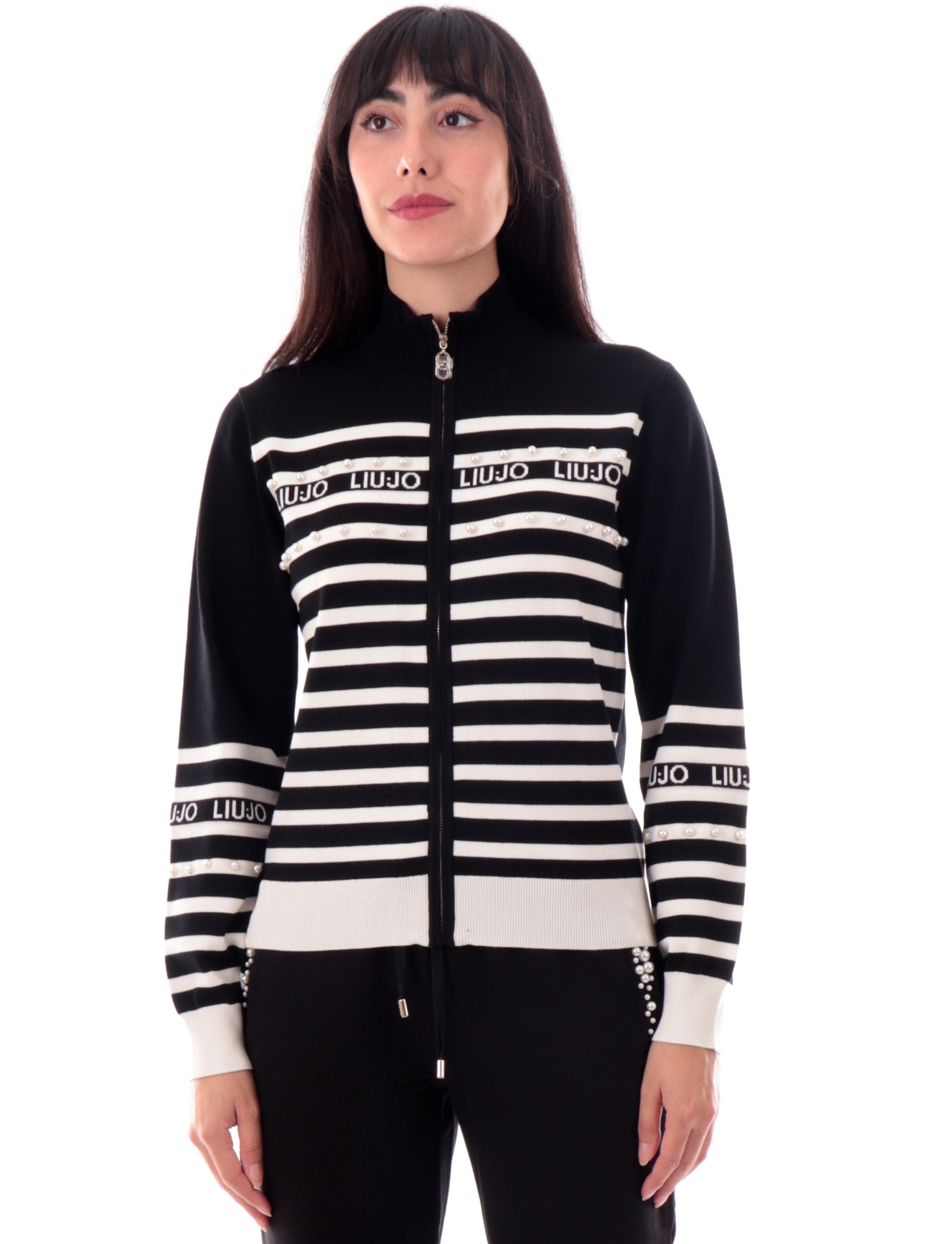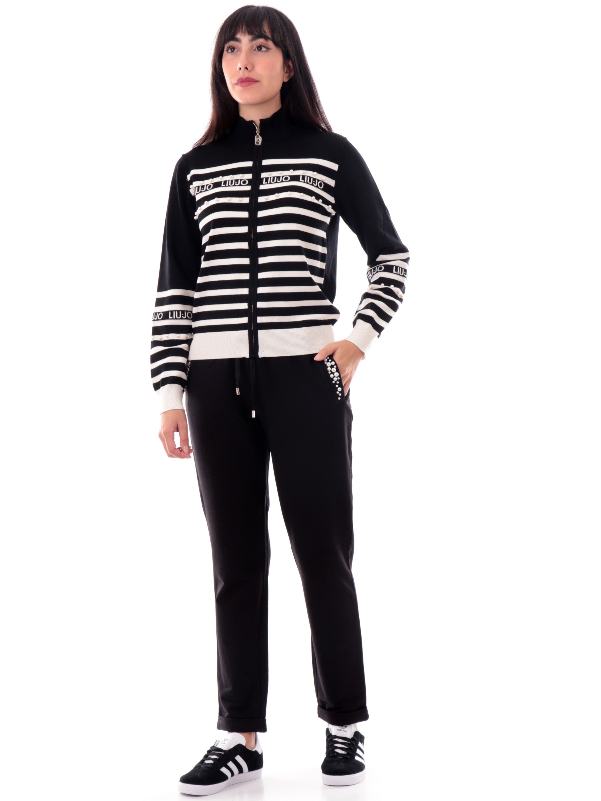 Maglioncino Liu Jo Nero da donna con righe loghi e perle TF5214MS63L03N66