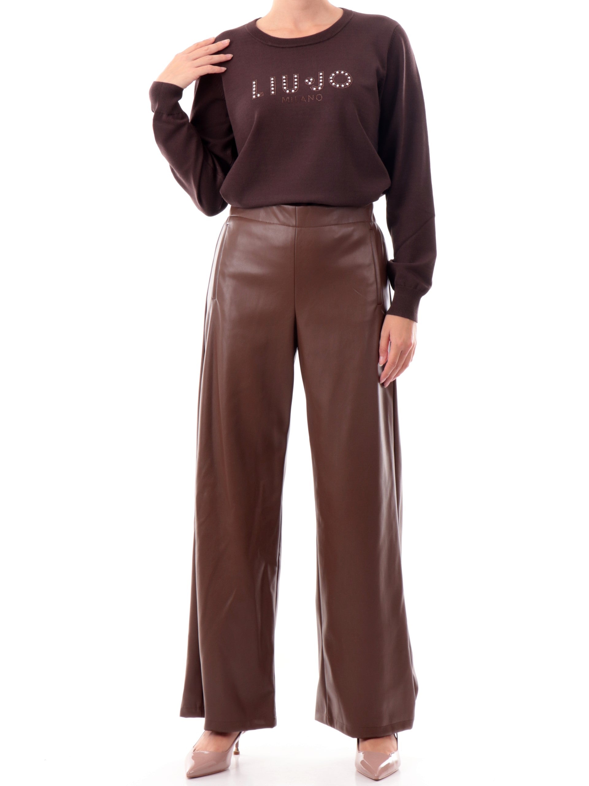 Maglione Liu Jo Marrone logo strass e perle TF5248MS63L90915