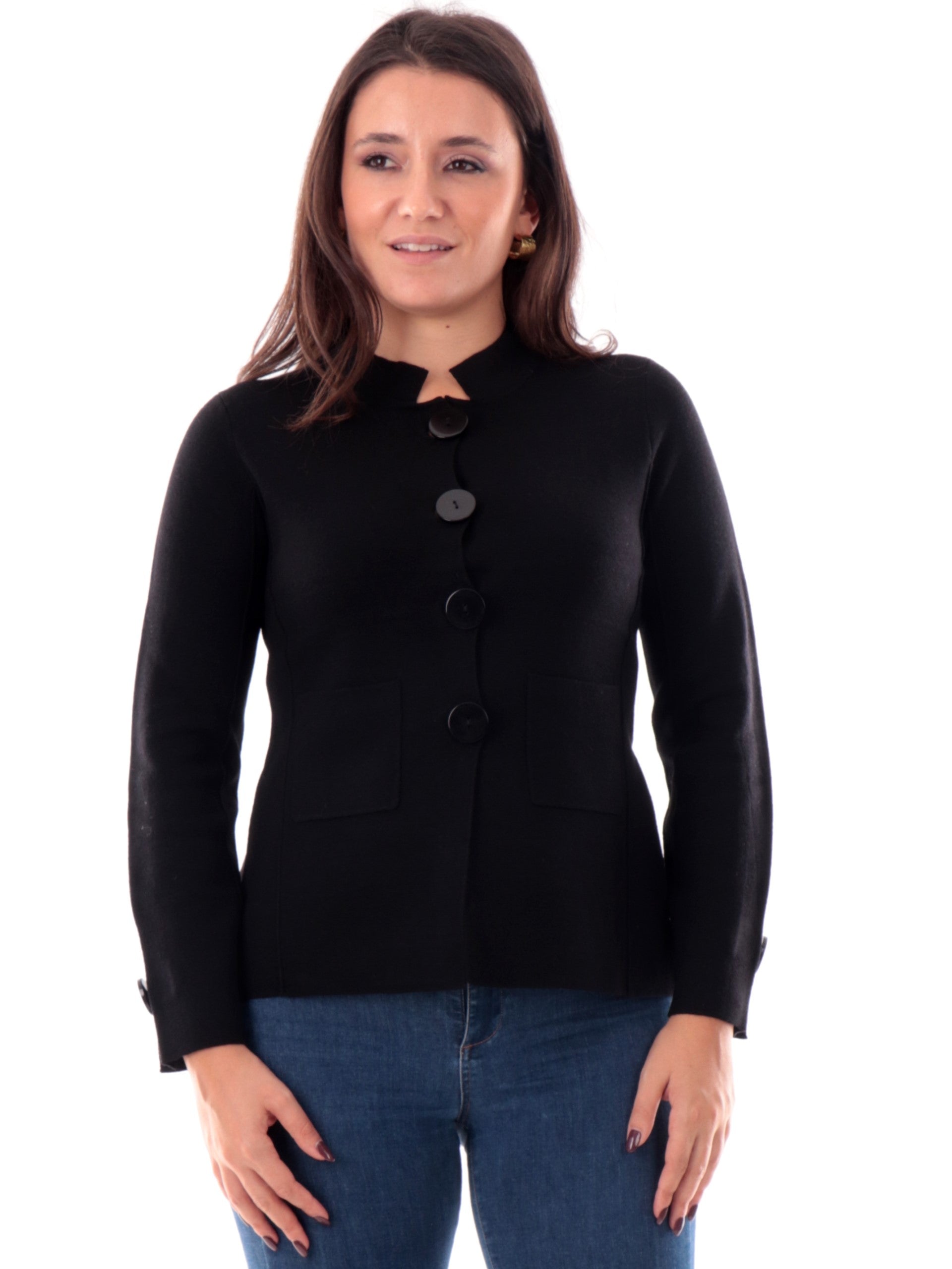 Giacca Anis White nera in filo misto lana collo coreana 255W1280-029