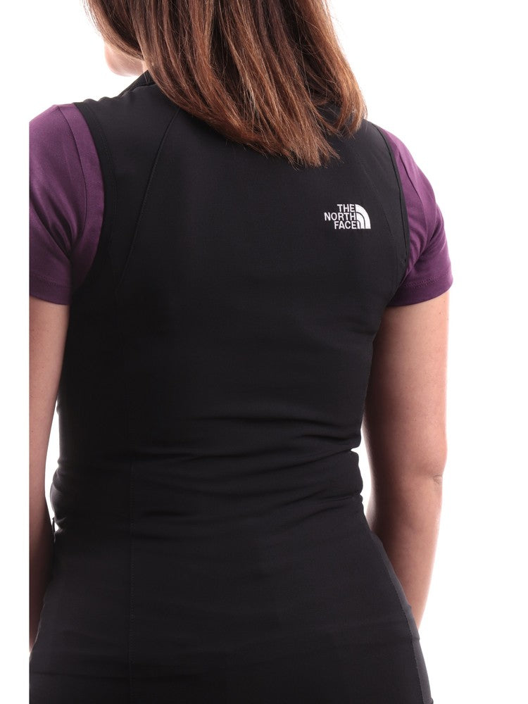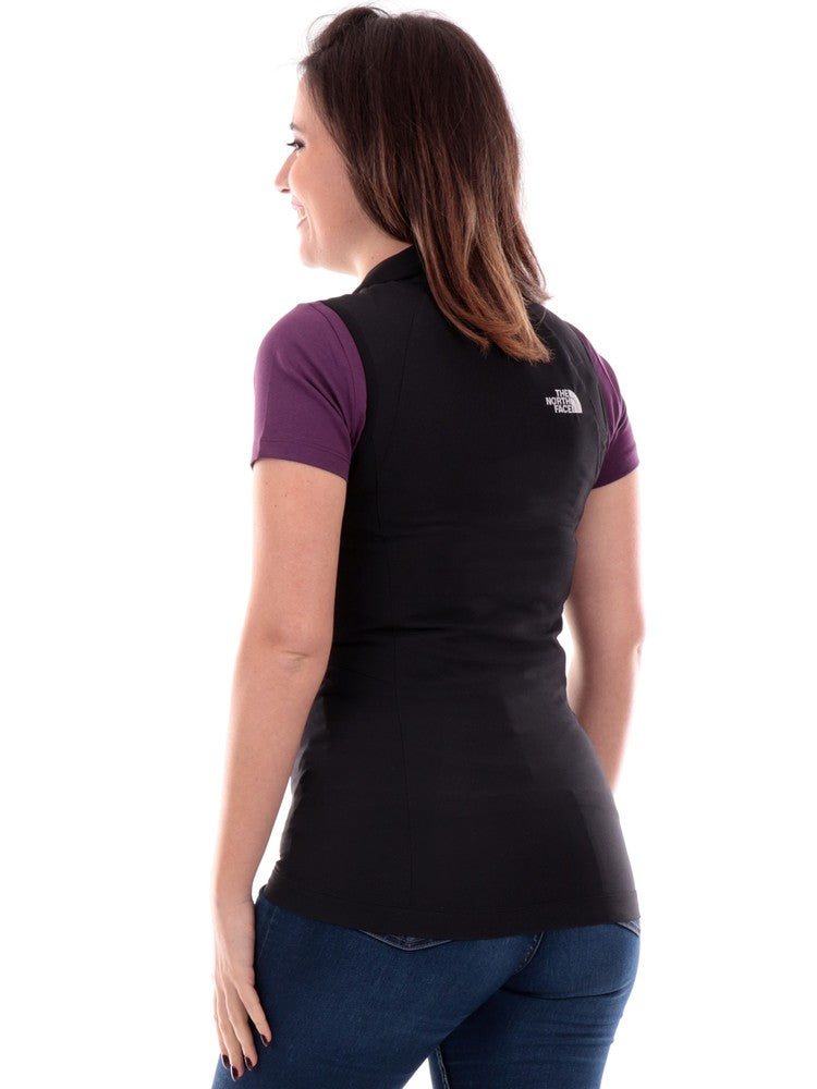 Gilet The North Face nero da donna Nimble NF0A7R2S, realizzato in tessuto tecnico impermeabile. Questo gilet North Face nero ha la chiusura full zip centrale, due tasche laterali con zip, il fondo elasticizzato e il logo del brand sul cuore a contrasto colore.