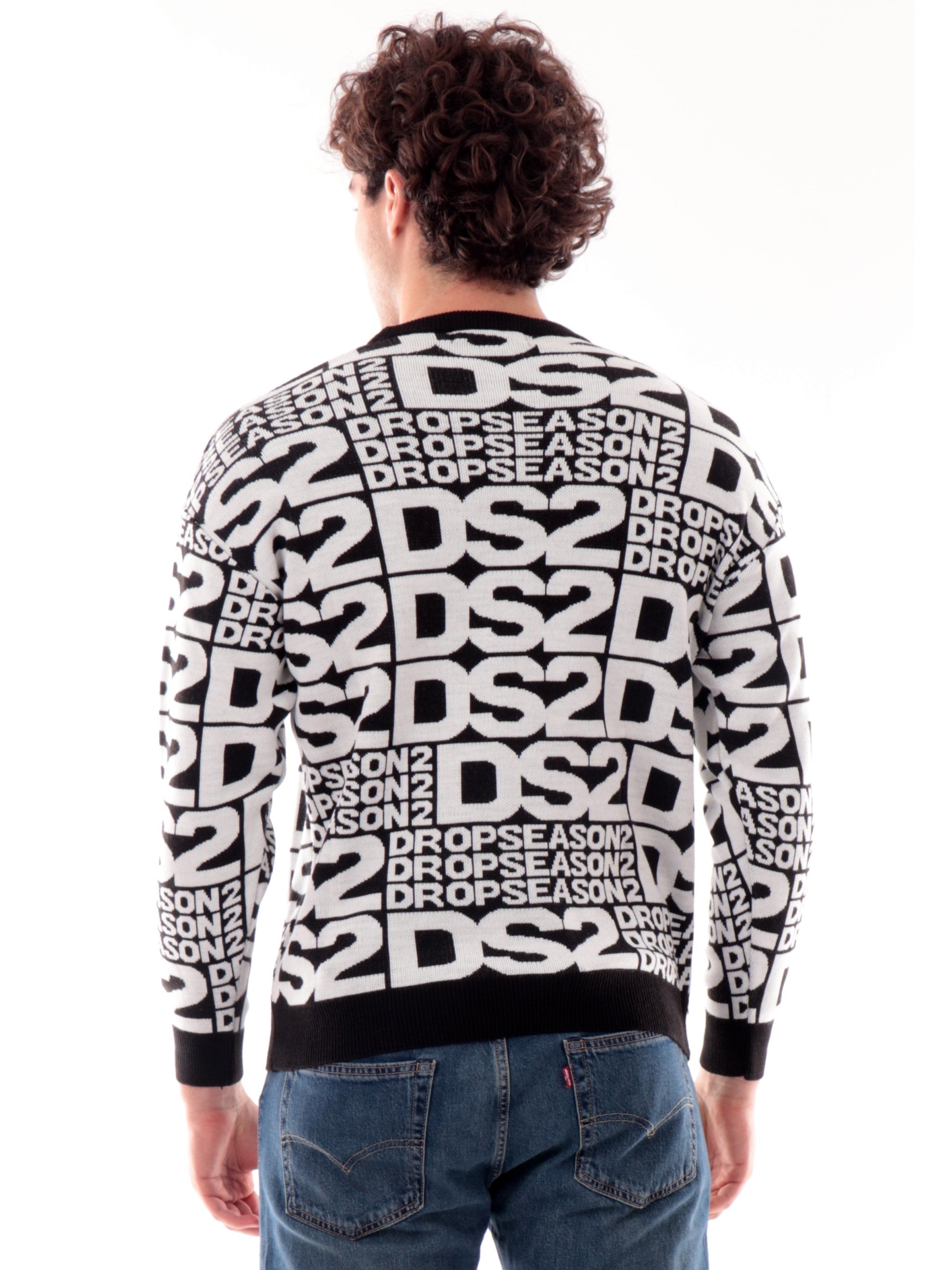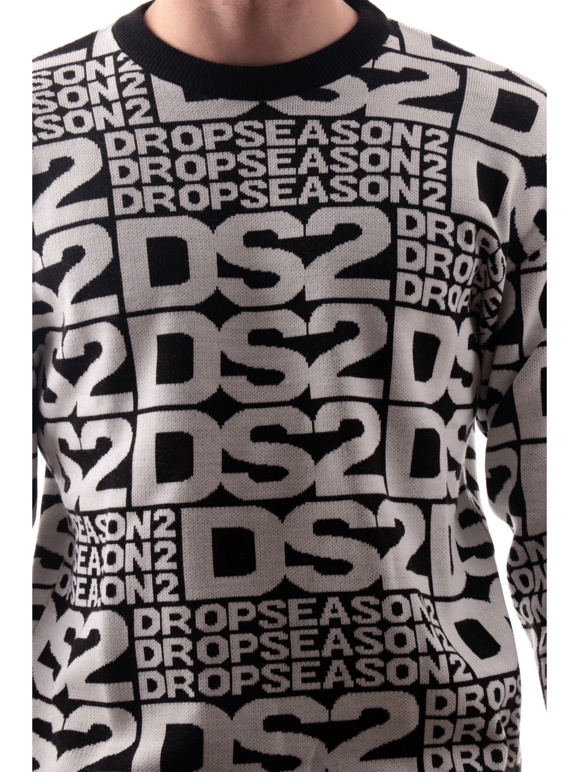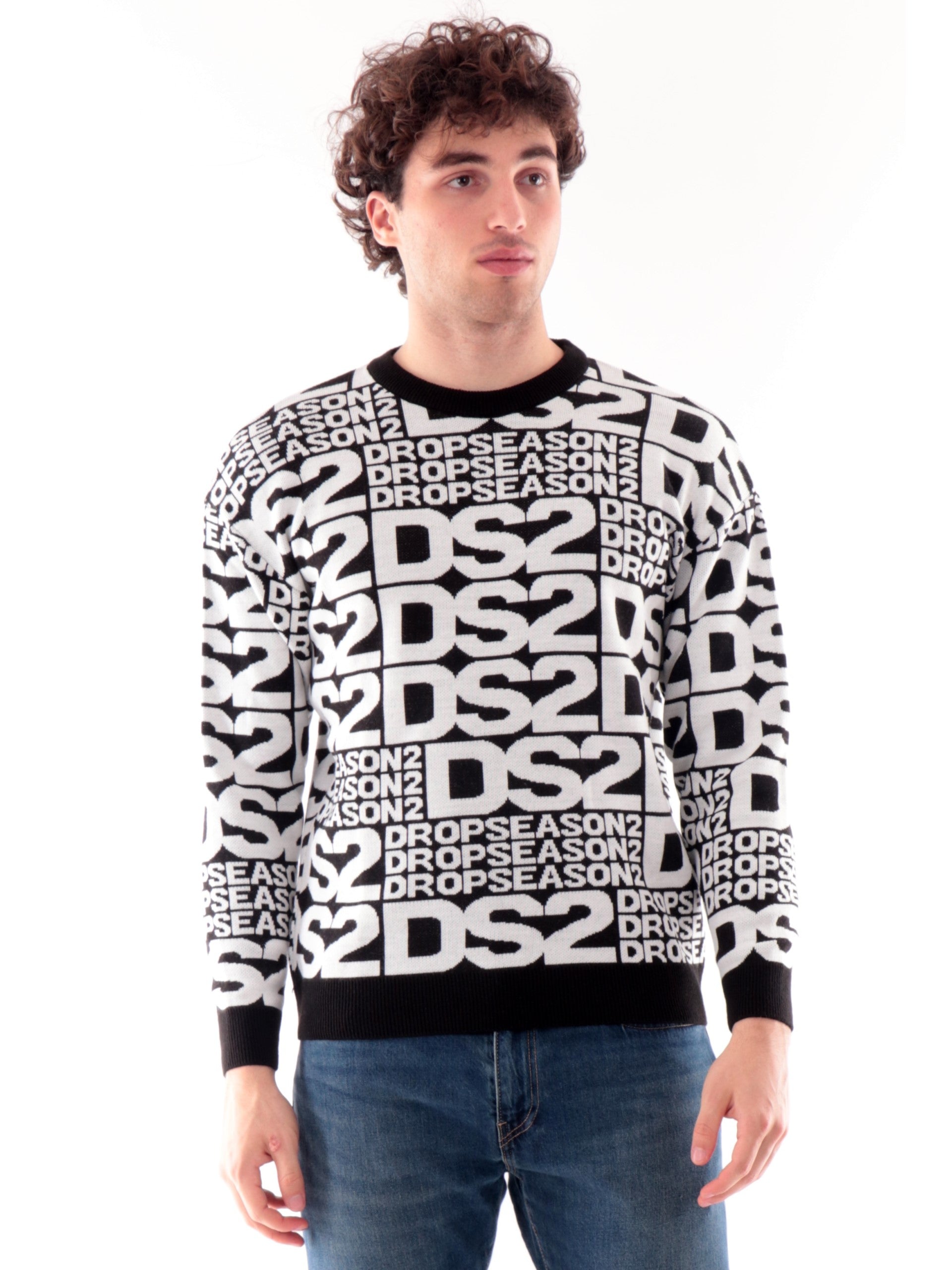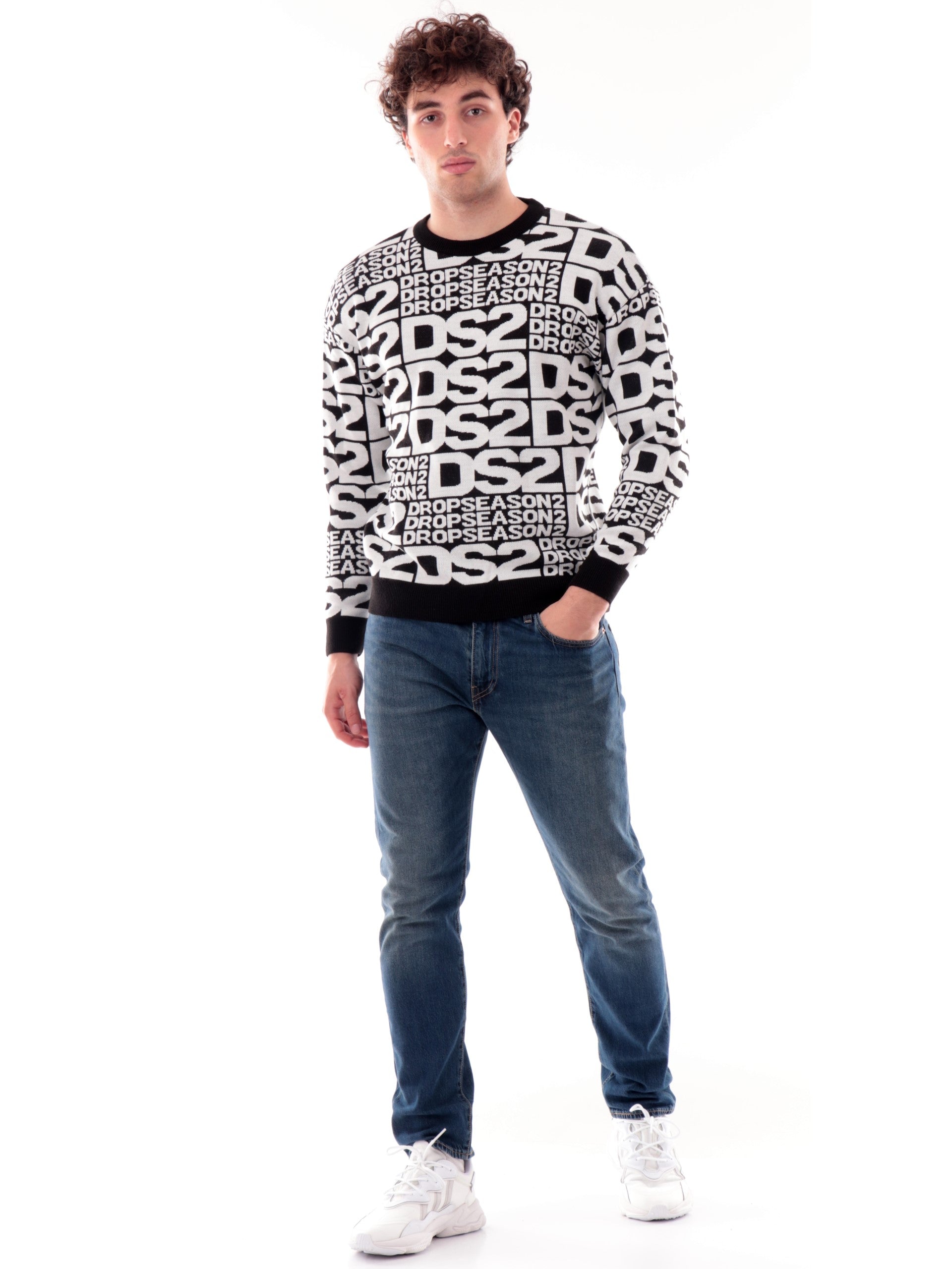 Maglione DS2 bianco da uomo girocollo stampa logo DS2 all over FW25246. Questo maglione DS2 bianco girocollo ha le maniche lunghe e la stampa logo DS2 all over.