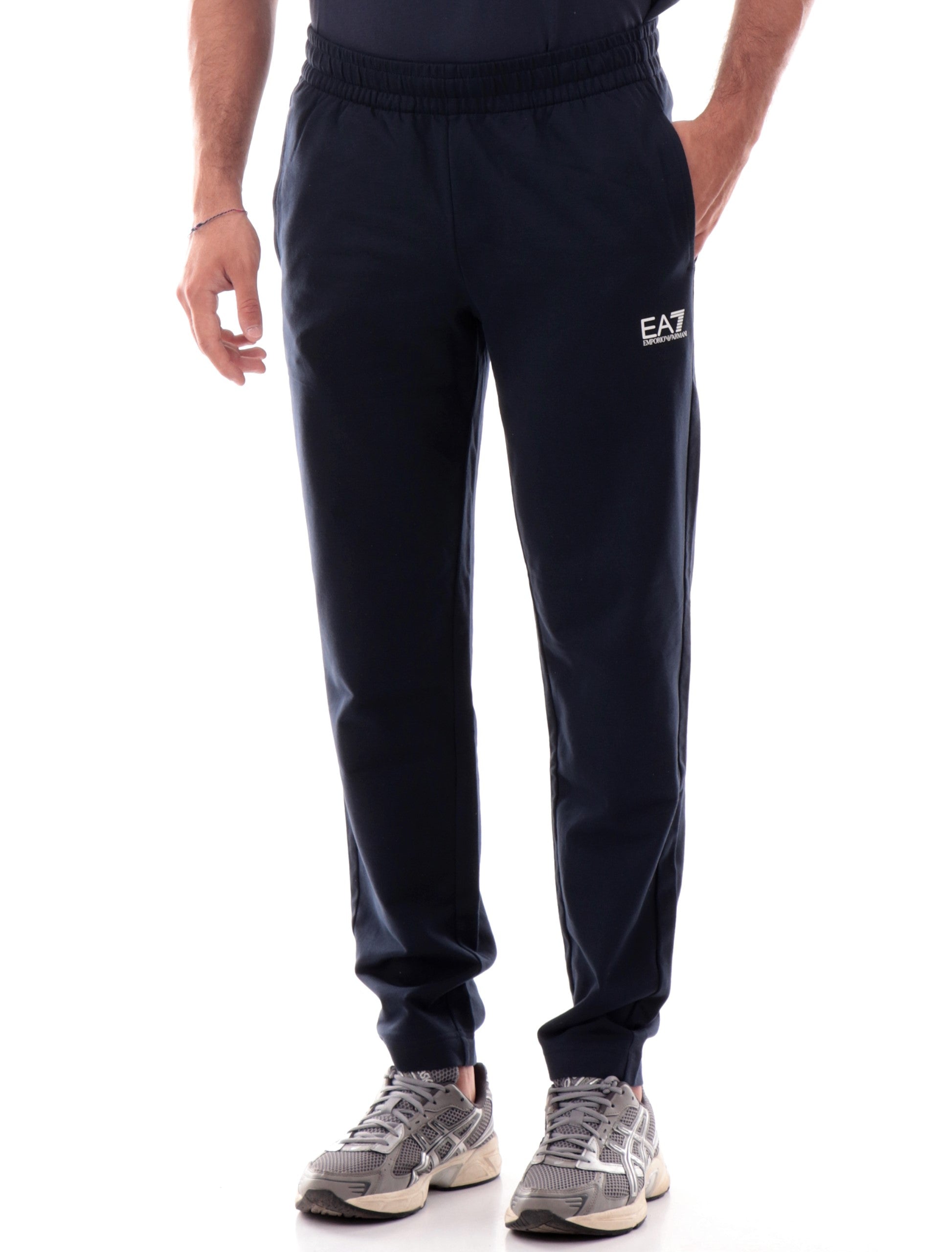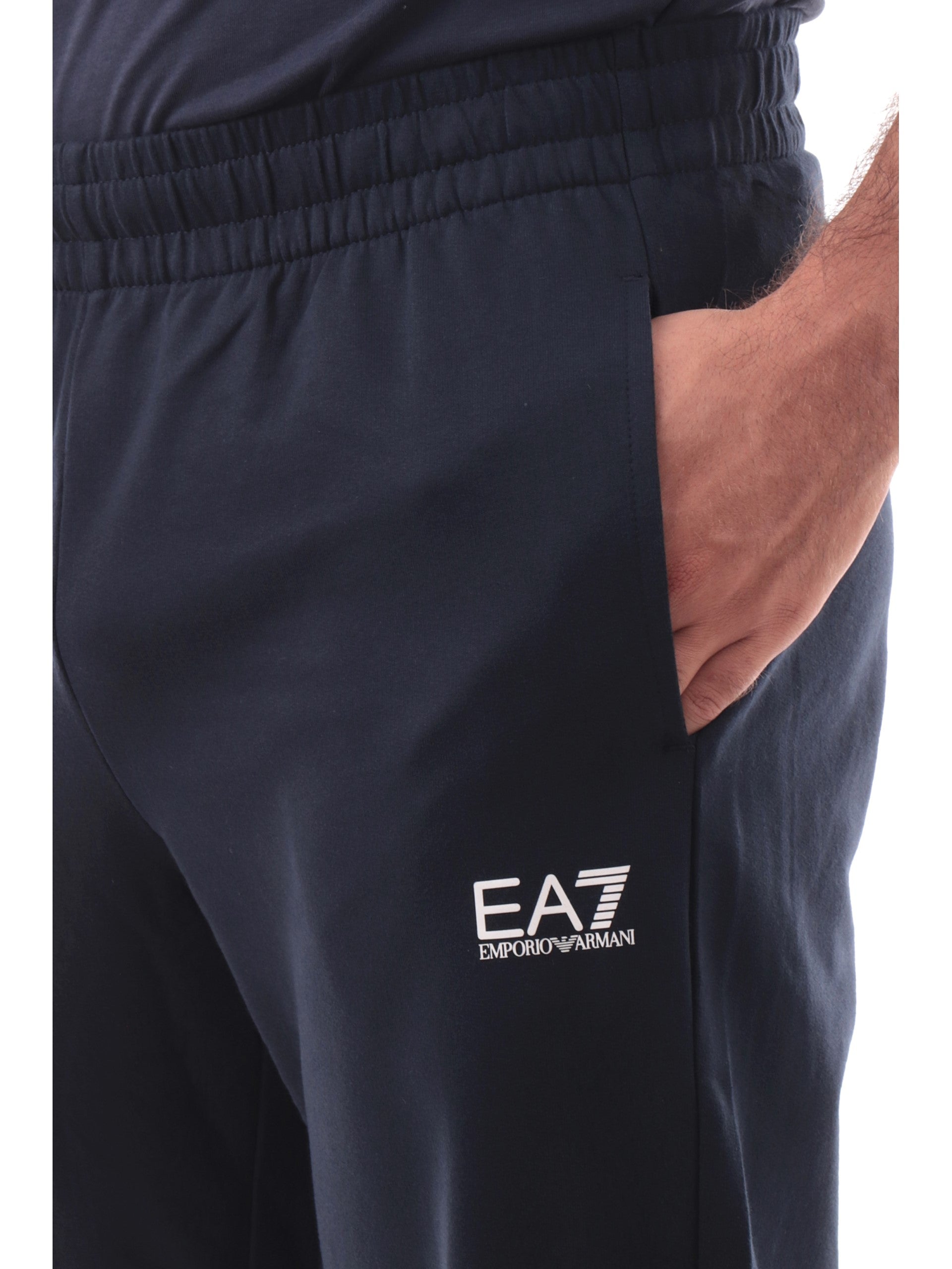 Pantaloni tuta Emporio Armani EA7 blu da uomo in jersey di cotone 8NPP65PJVRZ