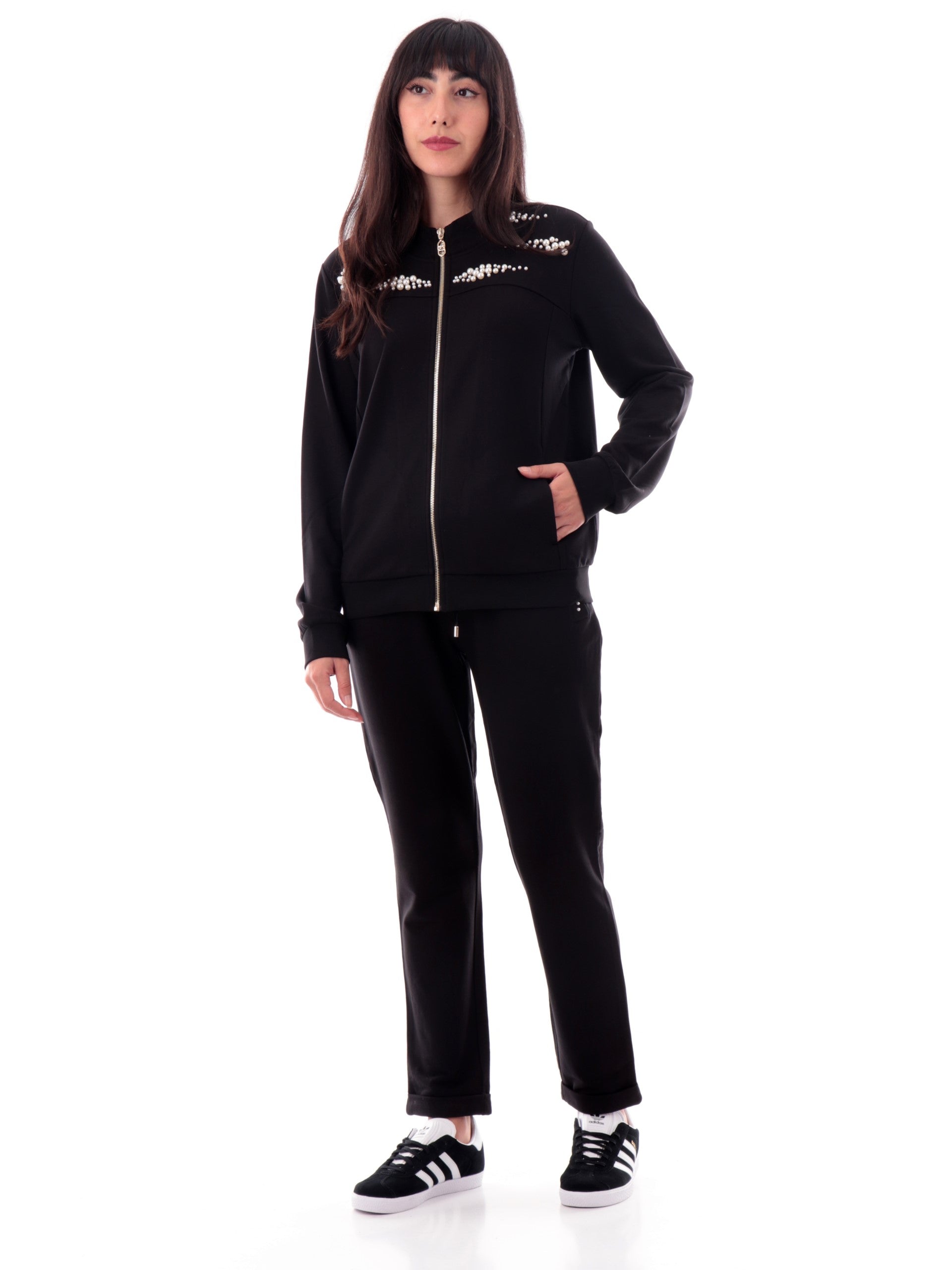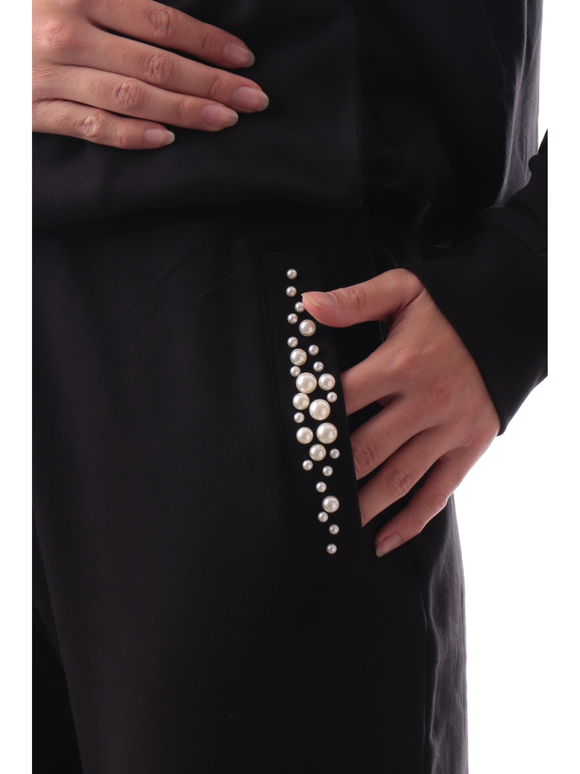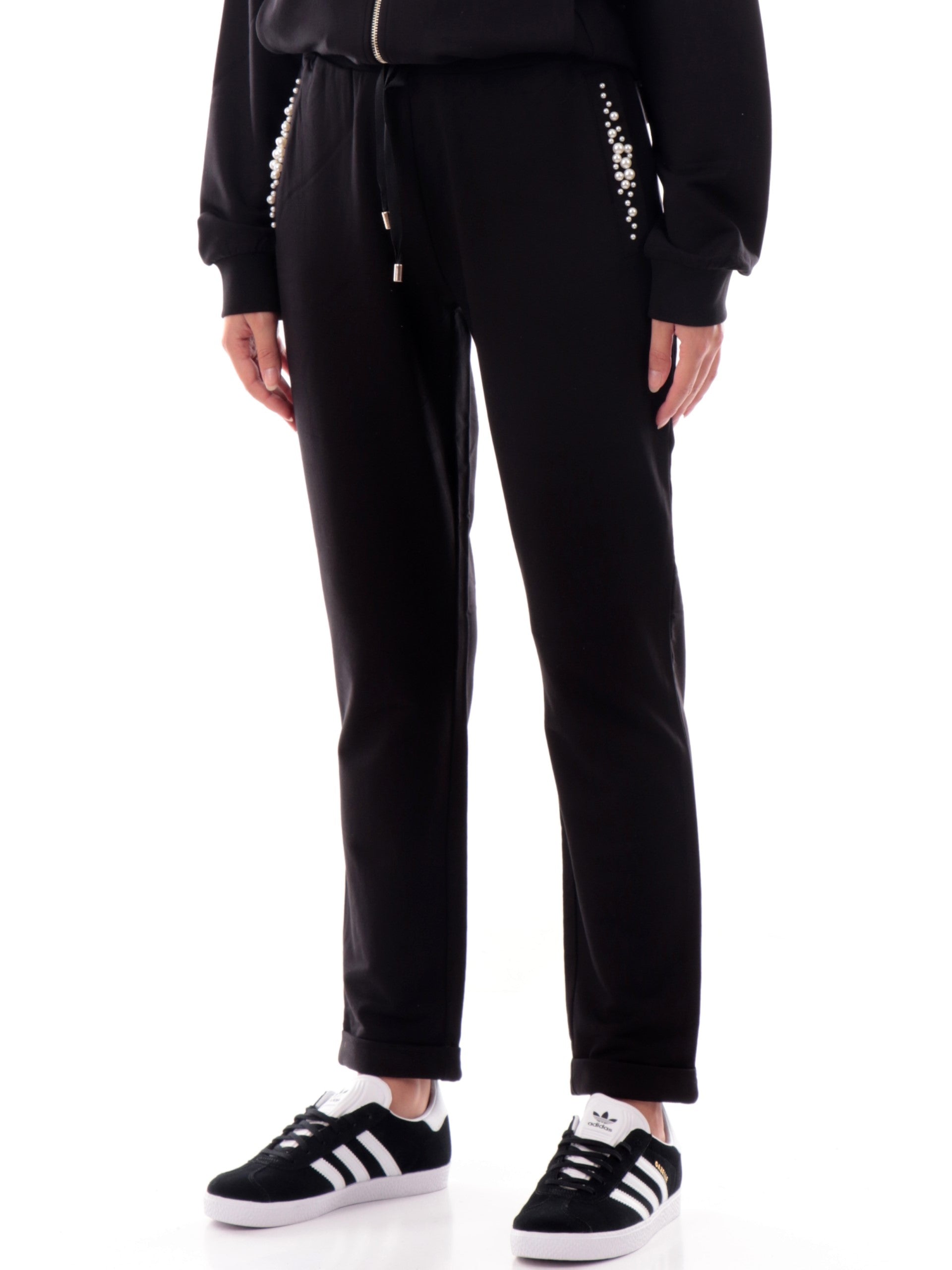Pantaloni tuta Liu Jo Neri da donna con perle bianche TF5155FS576M9932