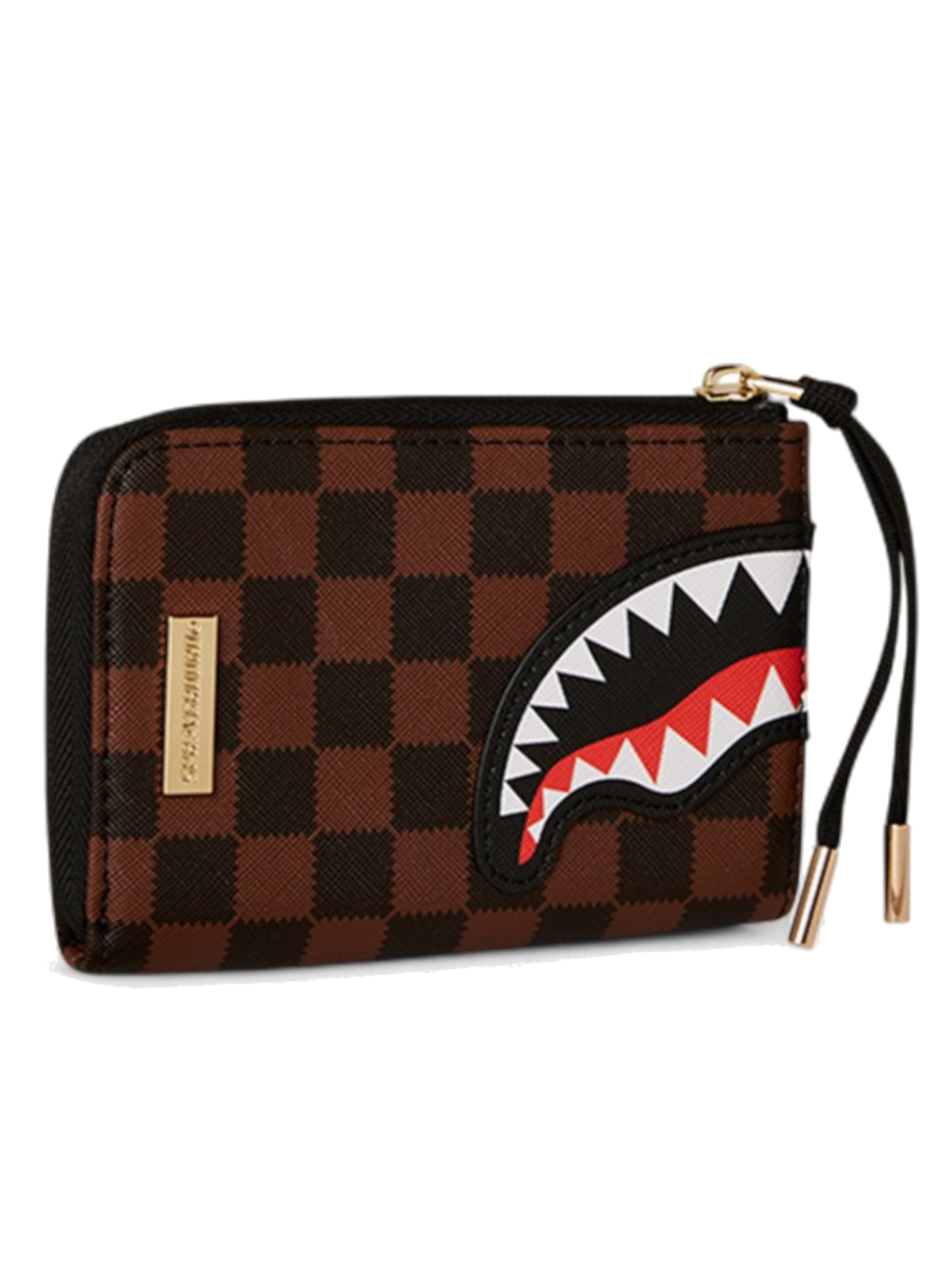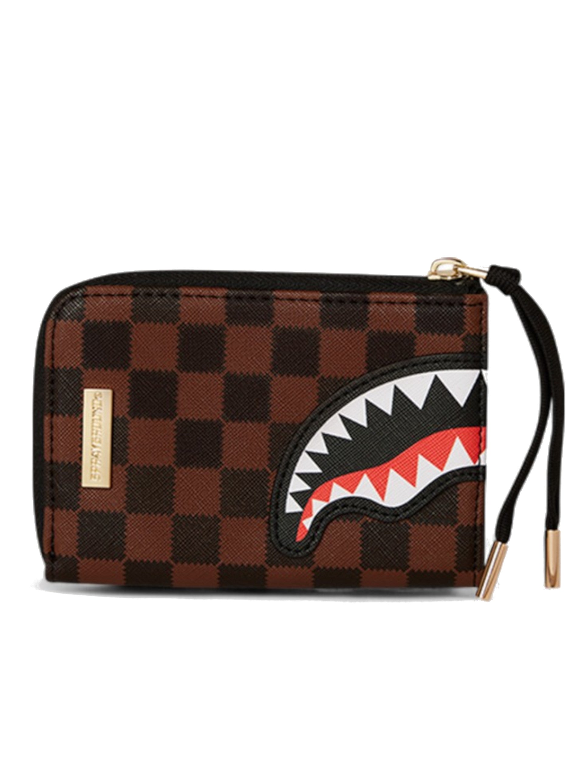 Portafoglio Sprayground Sawtooth Sharks Paris marrone 910W7843. Questo portafogli Sprayground marrone ha la chiusura zip around ed è caratterizzato dalla fantasia a quadri con bocca dello squalo. All'interno di questo wallet Sprayground troviamo quattro scomparti per portare con te: monete, banconote e tessere.