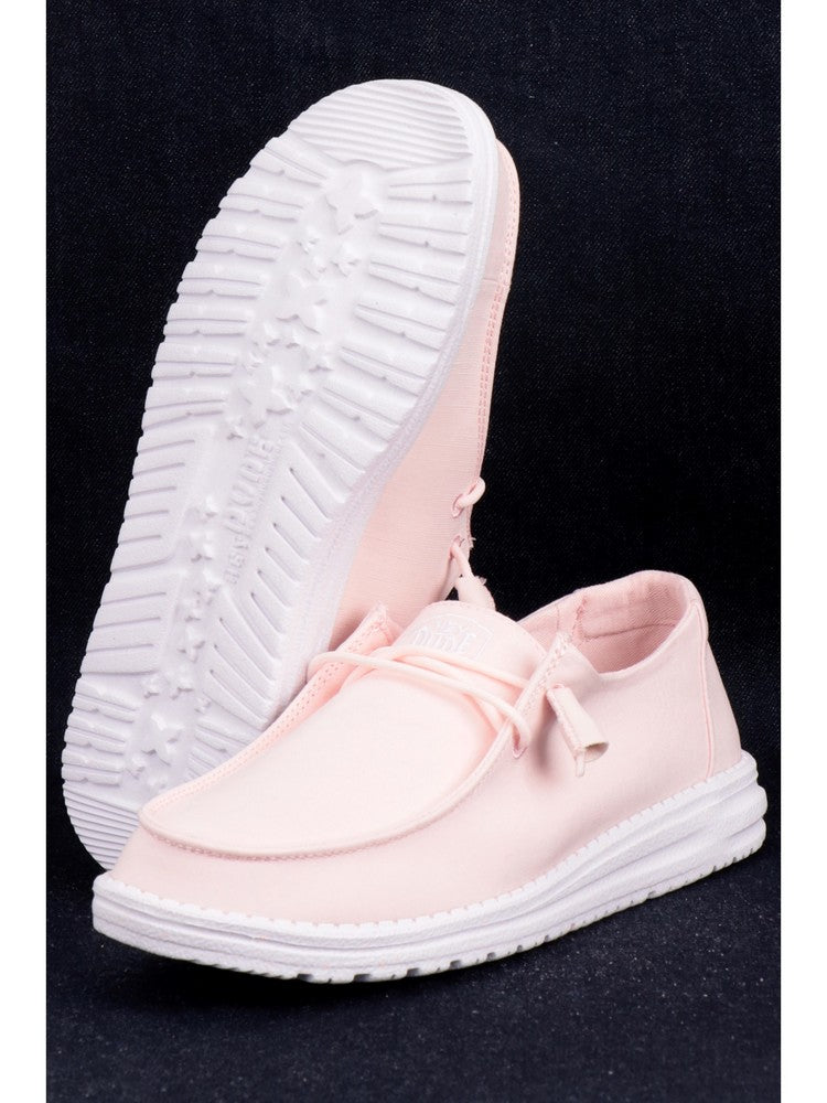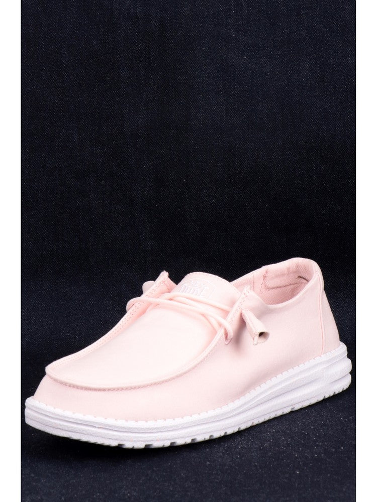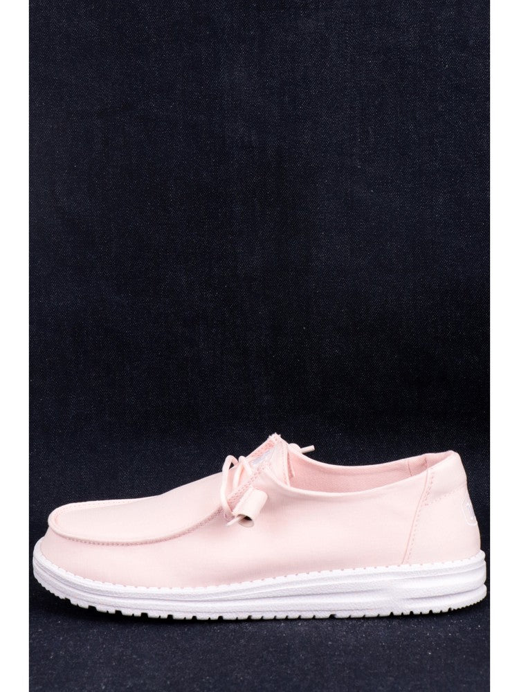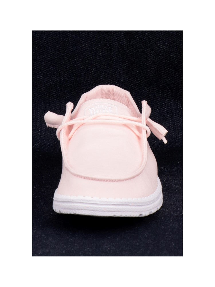 Scarpe Hey Dude rosa da donna Wendy Slub Canvas. Queste scarpe Hey Dude rosa hanno la tomaia realizzata in morbido tessuto a tinta unita, la suola in gomma rinforzata con graffiti e la tecnologia Flex&Fold che garantisce il massimo comfort. Sul davanti di questi mocassini Hey Dude troviamo la chiusura a lacci e il logo del brand ricamato a contrasto colore.