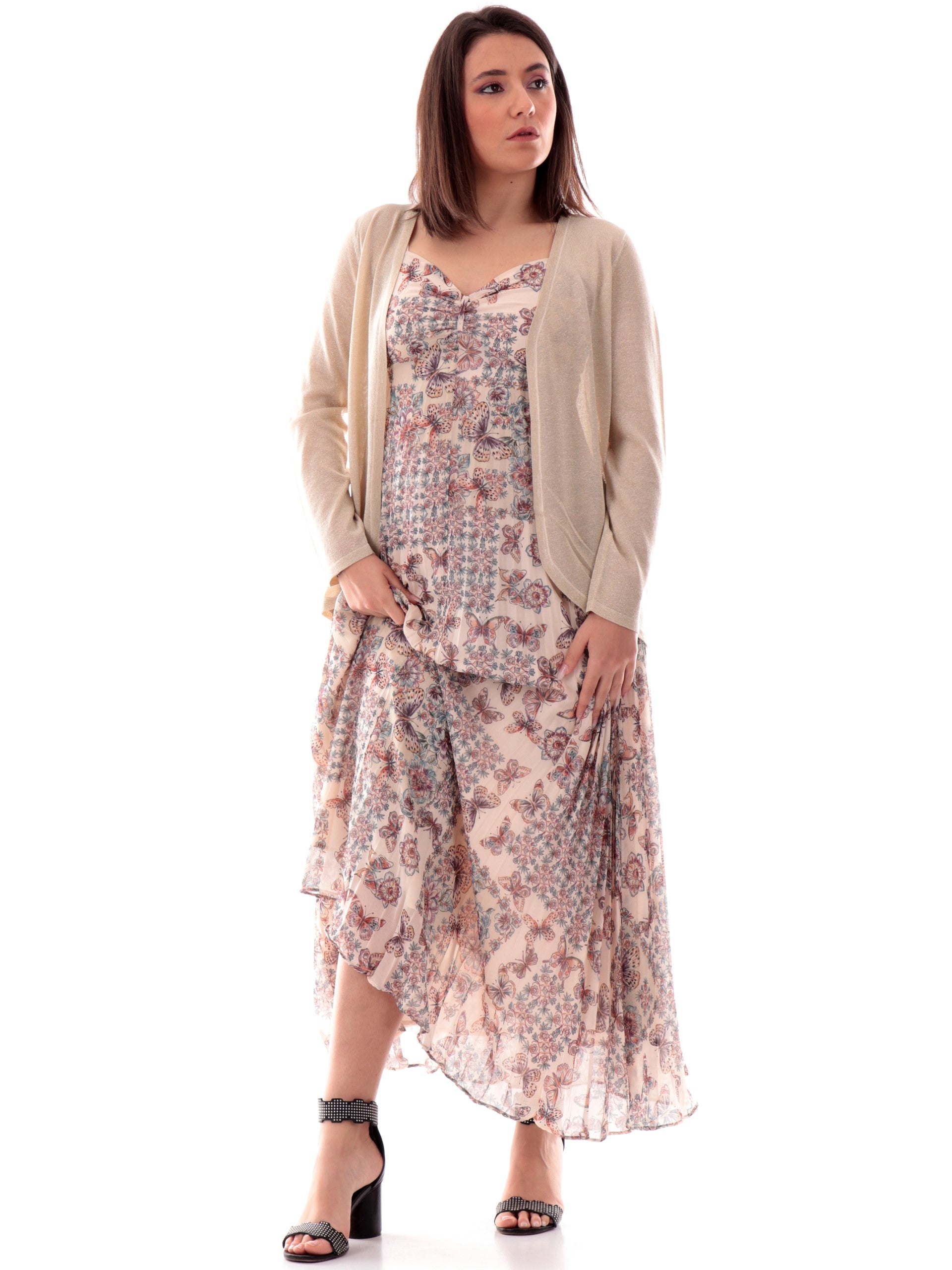 Abito floreale Molly Bracken beige da donna spalle scoperte P1787DE