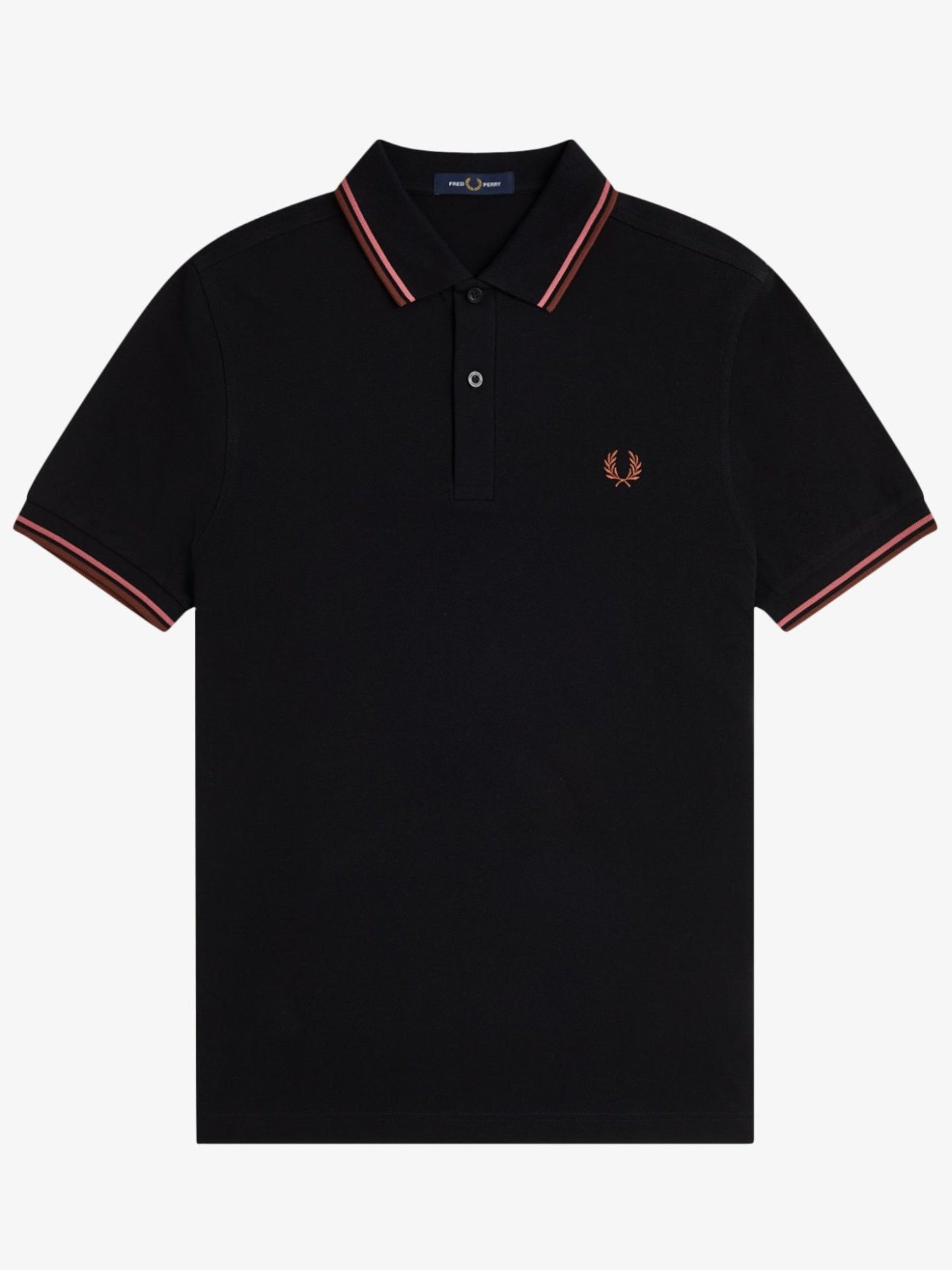 Polo Fred Perry blu da uomo bande bronzo Twin Tipped M3600