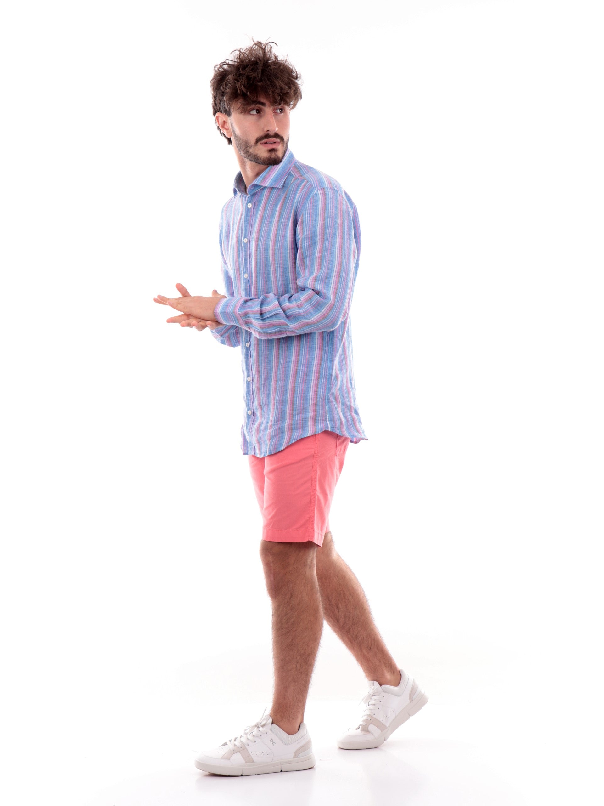 Bermuda Murphy & Nye rosa da uomo, modello New Coastal P50202, realizzati in morbido cotone. Questi shorts Murphy & Nye rosa hanno la chiusura con bottone logato e zip, due tasche laterali aperte, lapredisposizione per indossare la cintura, il fondo regolare e due tasche posteriori con patta a bottone.