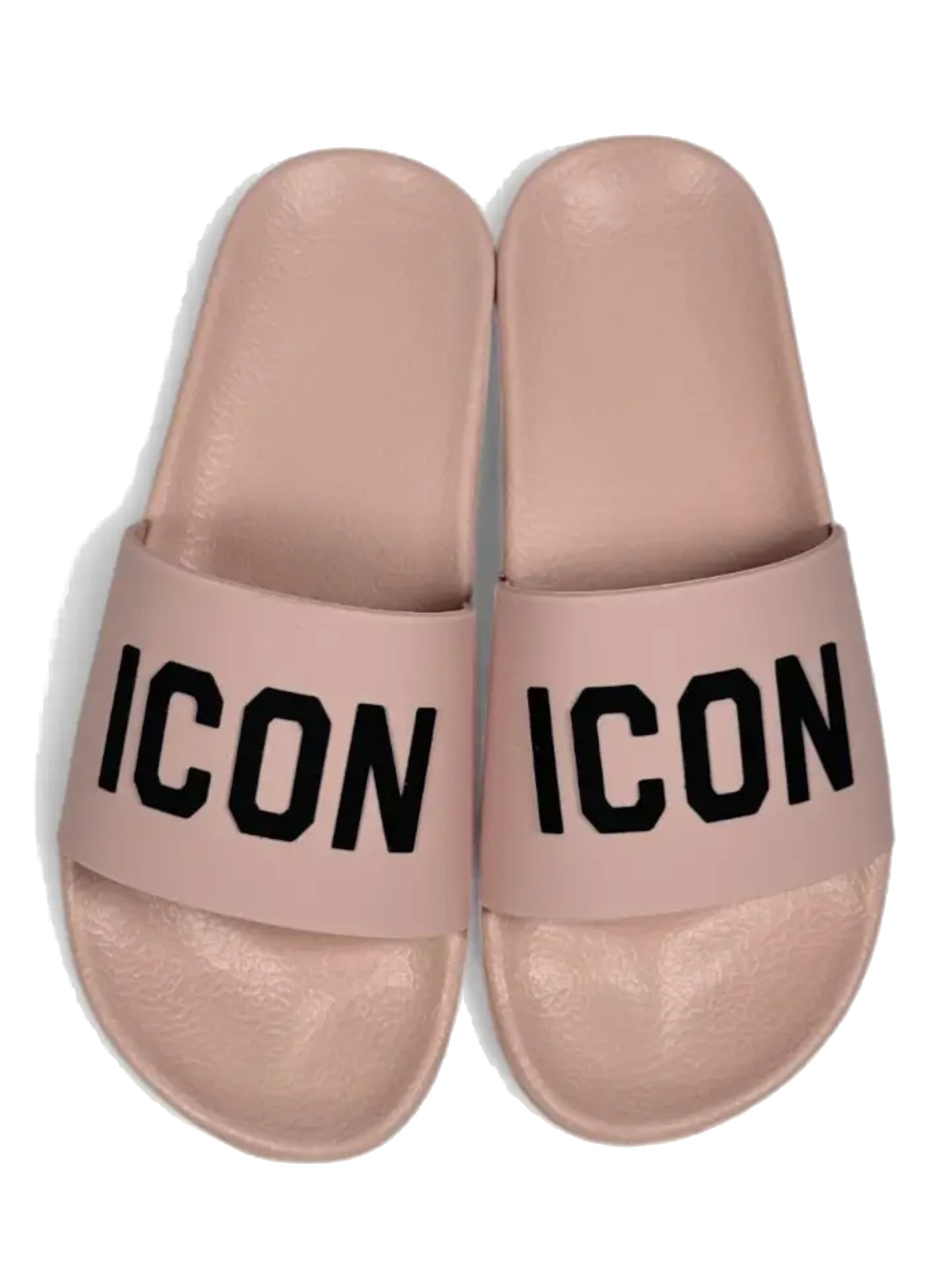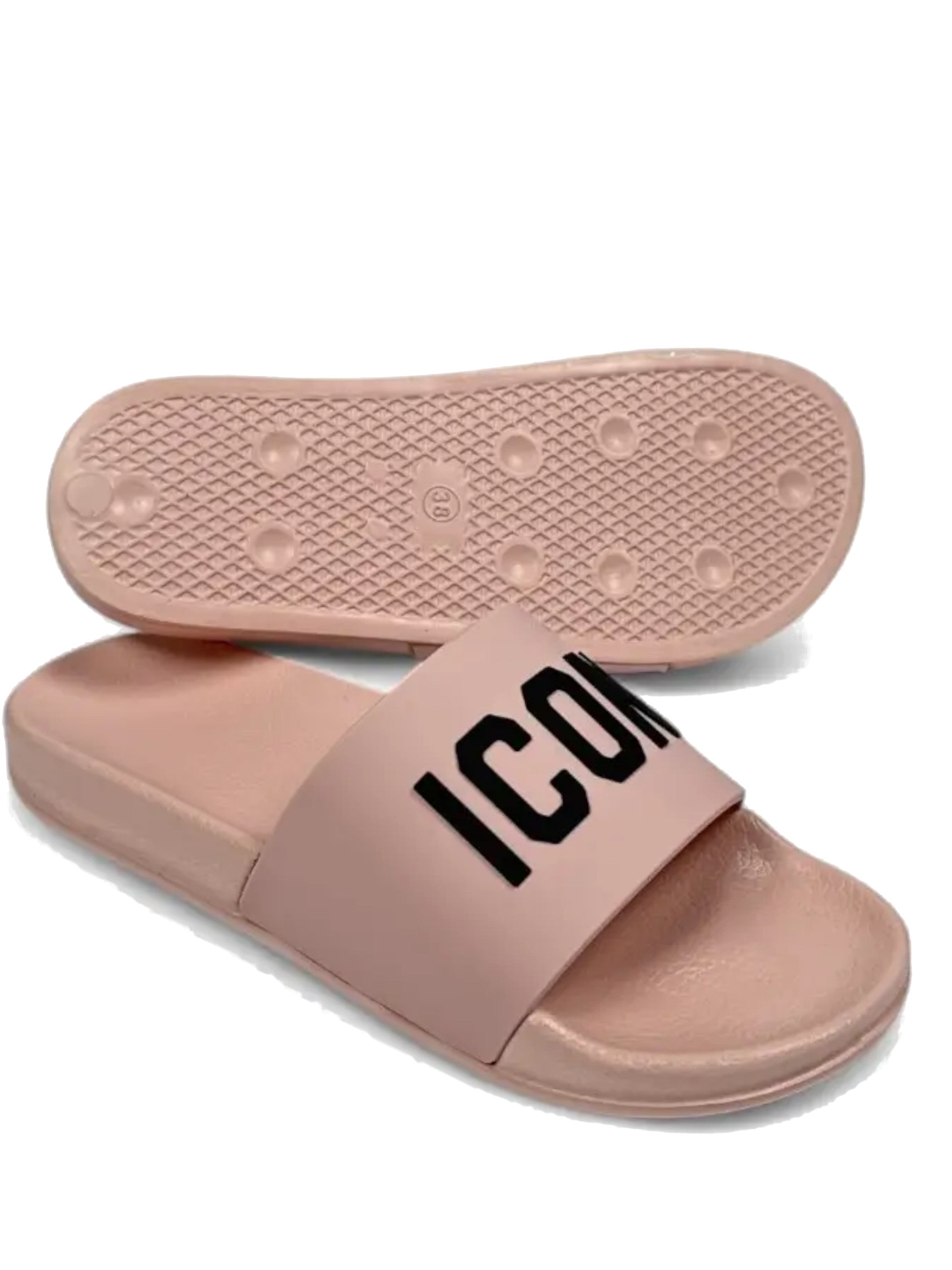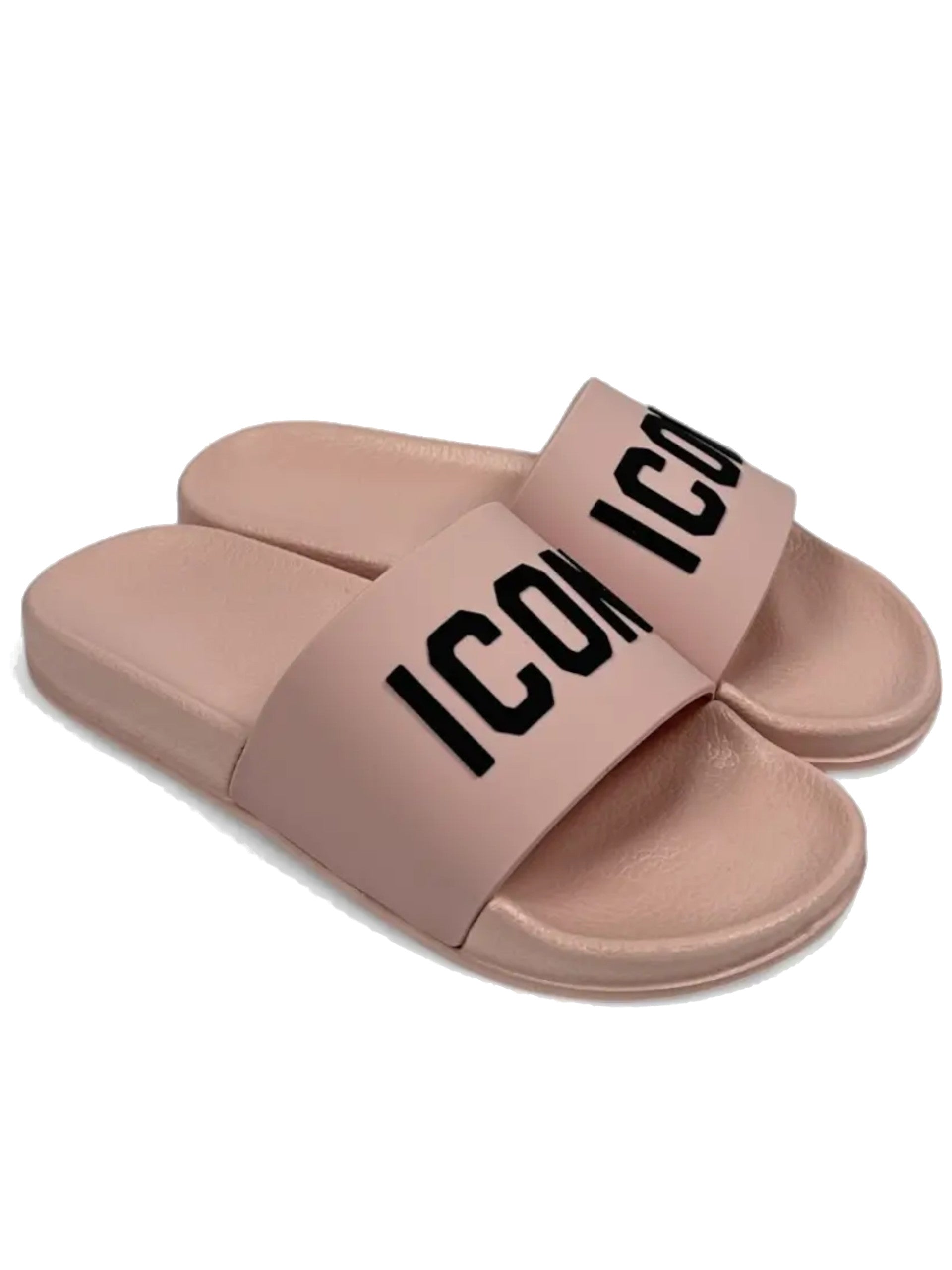 Ciabatte Icon Rosa con fascia rosa gommata e scritta nera. Queste ciabatte rosa Icon sono realizzate in pura gomma anatomica con forma del plantare antiscivolo.