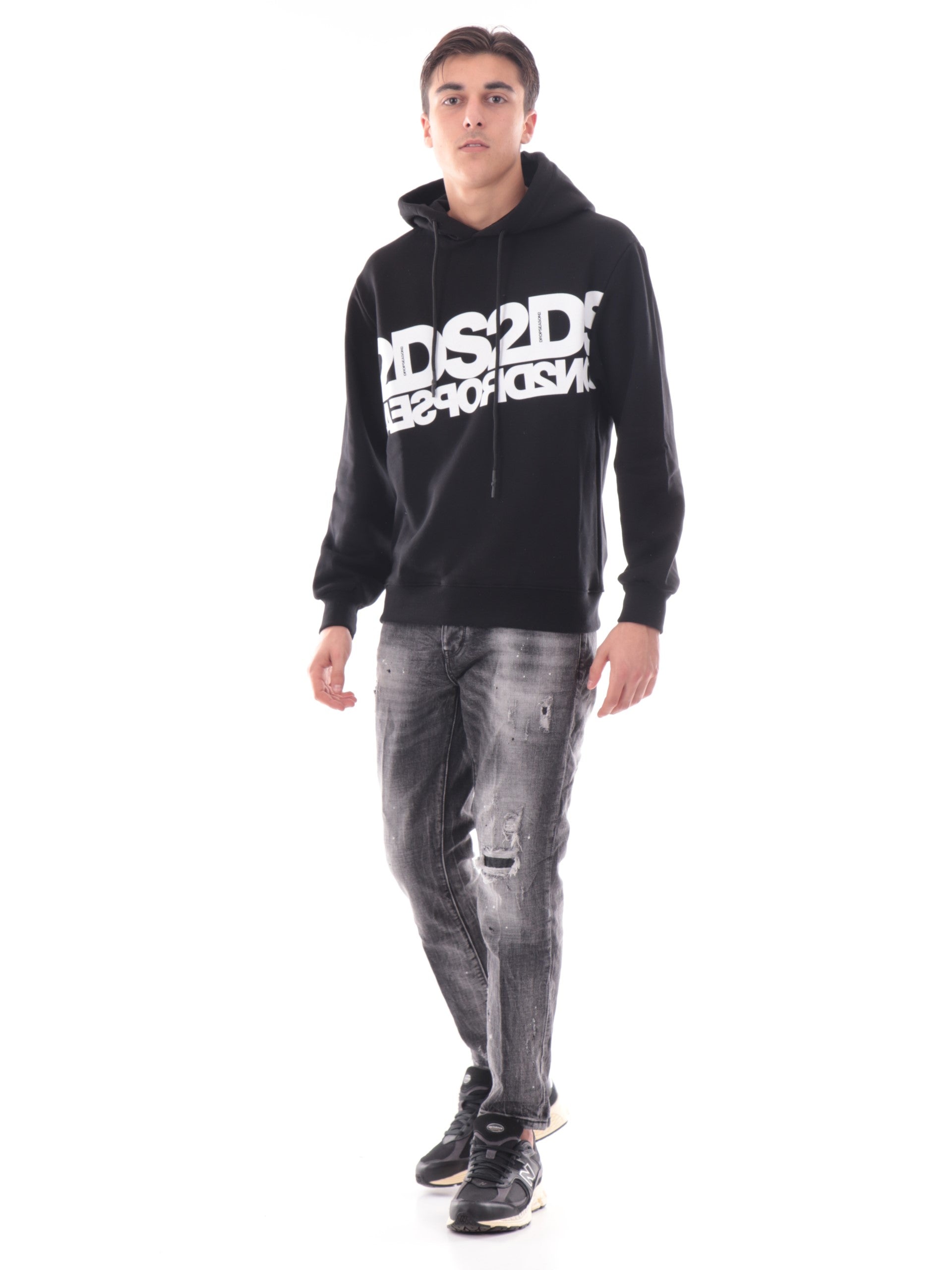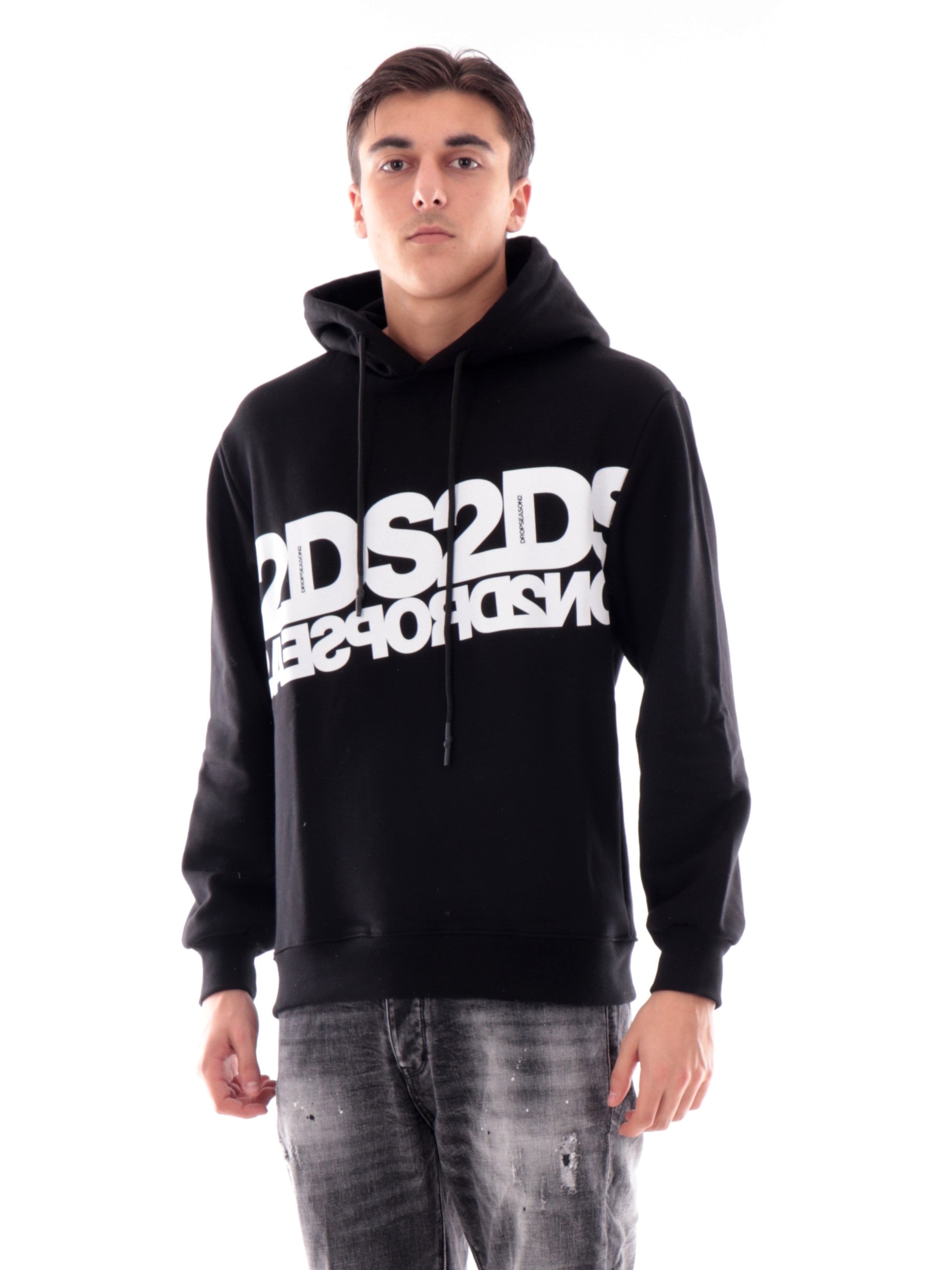 Felpa DS2 nera da uomo girocollo felpata FW252111NERO