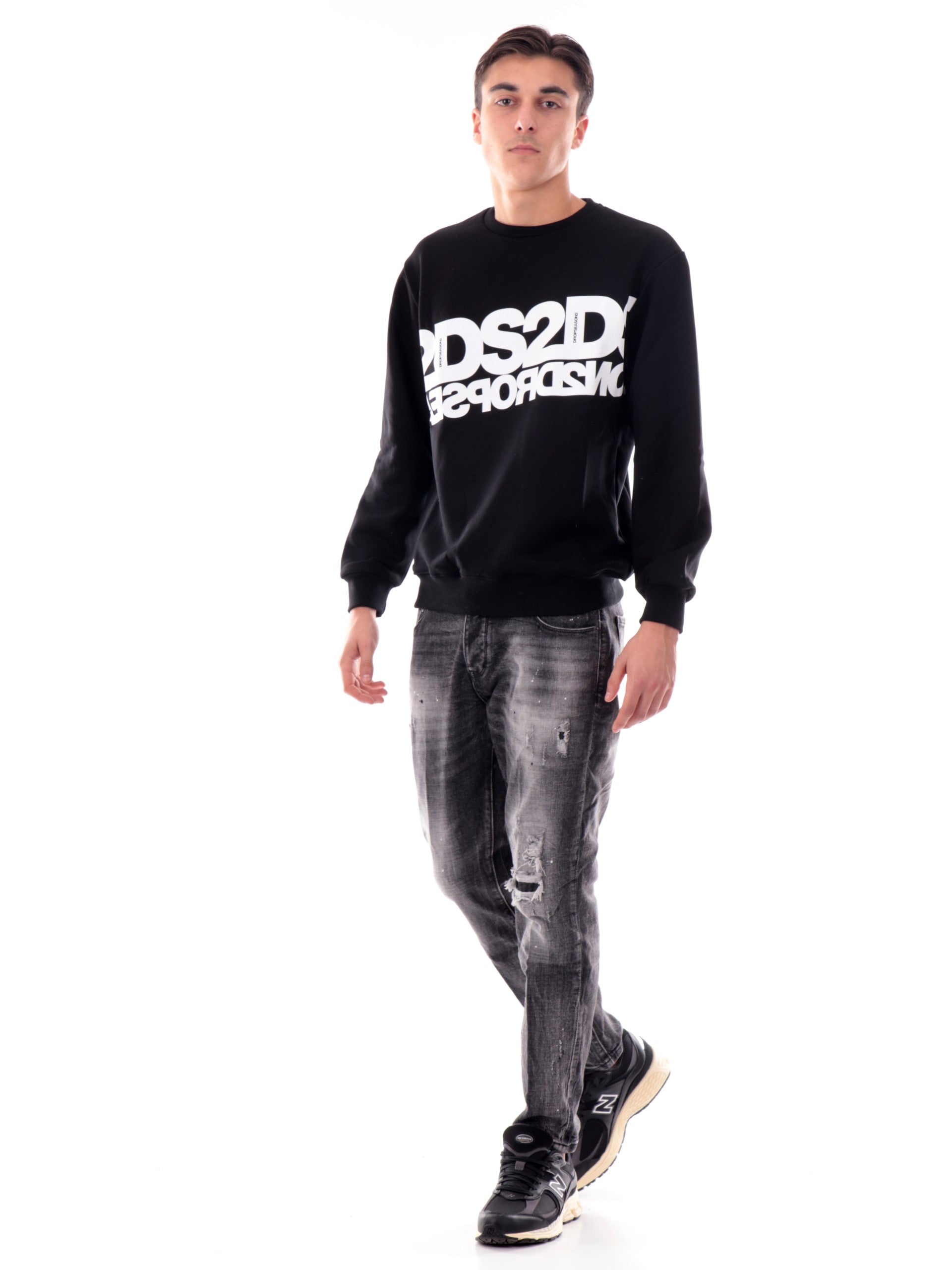 Felpa DS2 nera da uomo girocollo felpata. Questa felpa DS2 da uomo nera realizzata in puro cotone è caratterizata da una maxi scritta del brand centrale in bianco, polisini e fondo elasticizzati a costine. Questa felpa DS2 è realizzata al 100% in cotone, al suo interno troviamo un tessuto felpato, caldo e morbido al tatto perfetto per i primi freddi