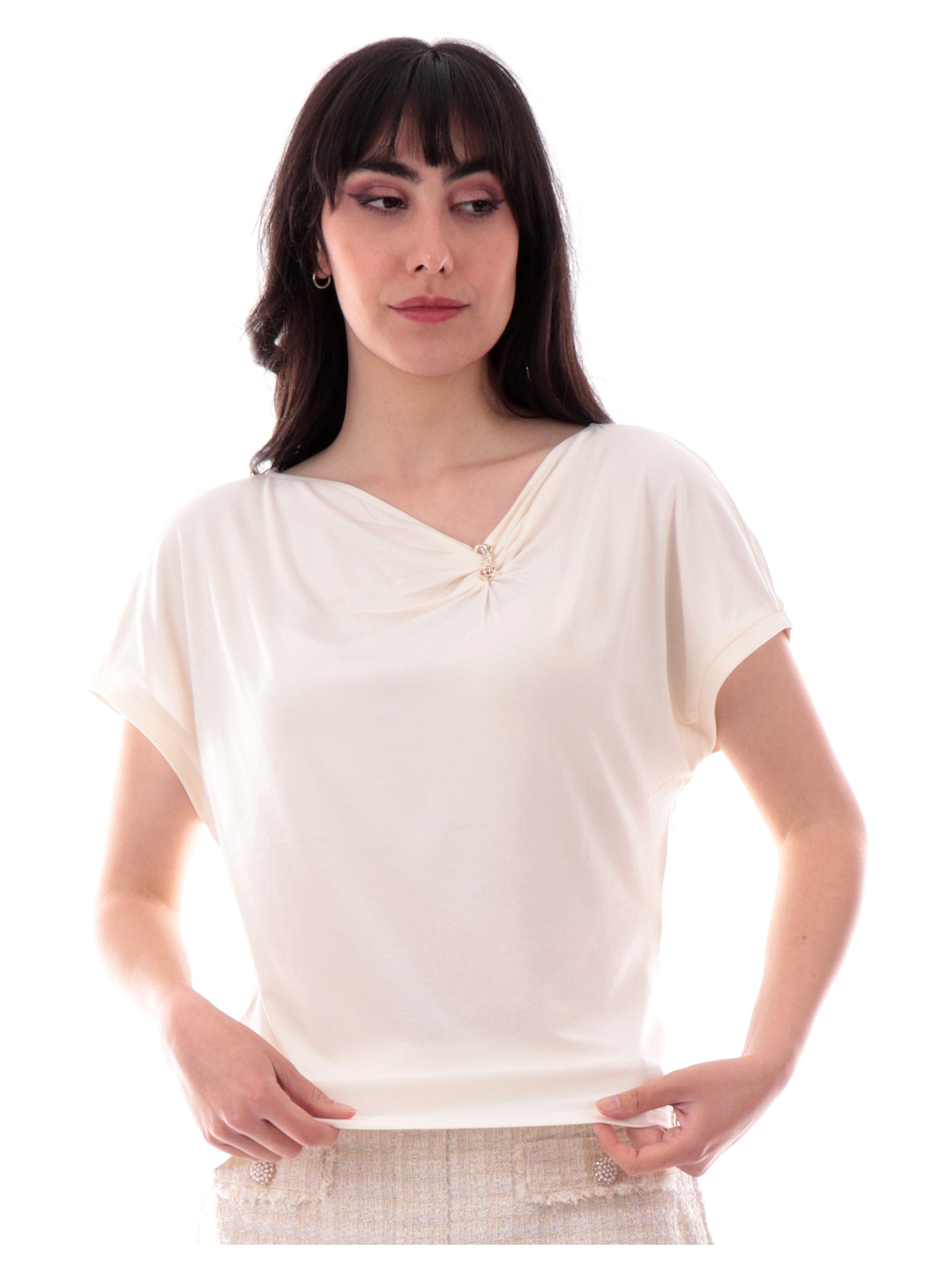 Maglia Liu Jo bianca da donna con dettaglio Strass TA5176JS360