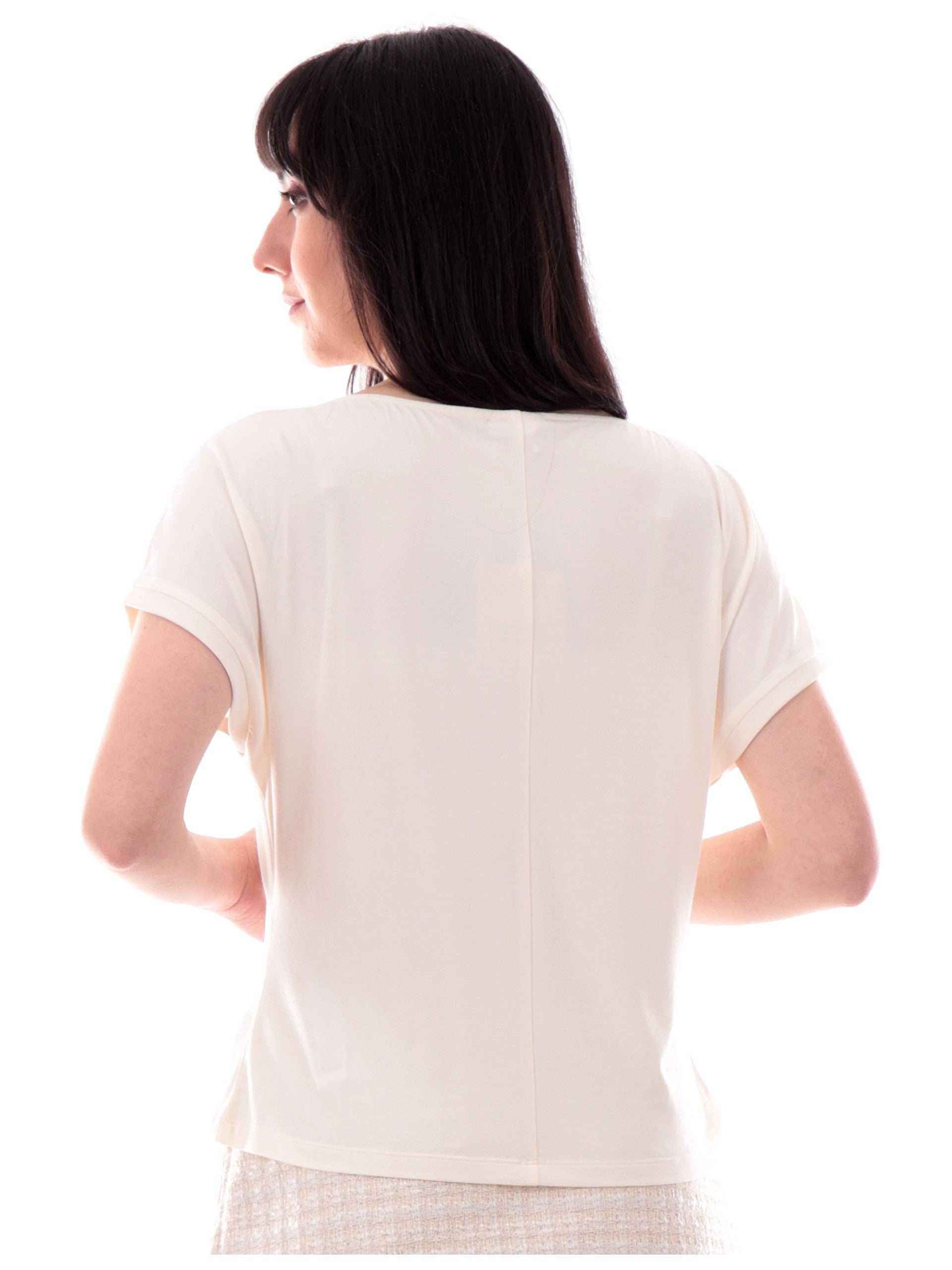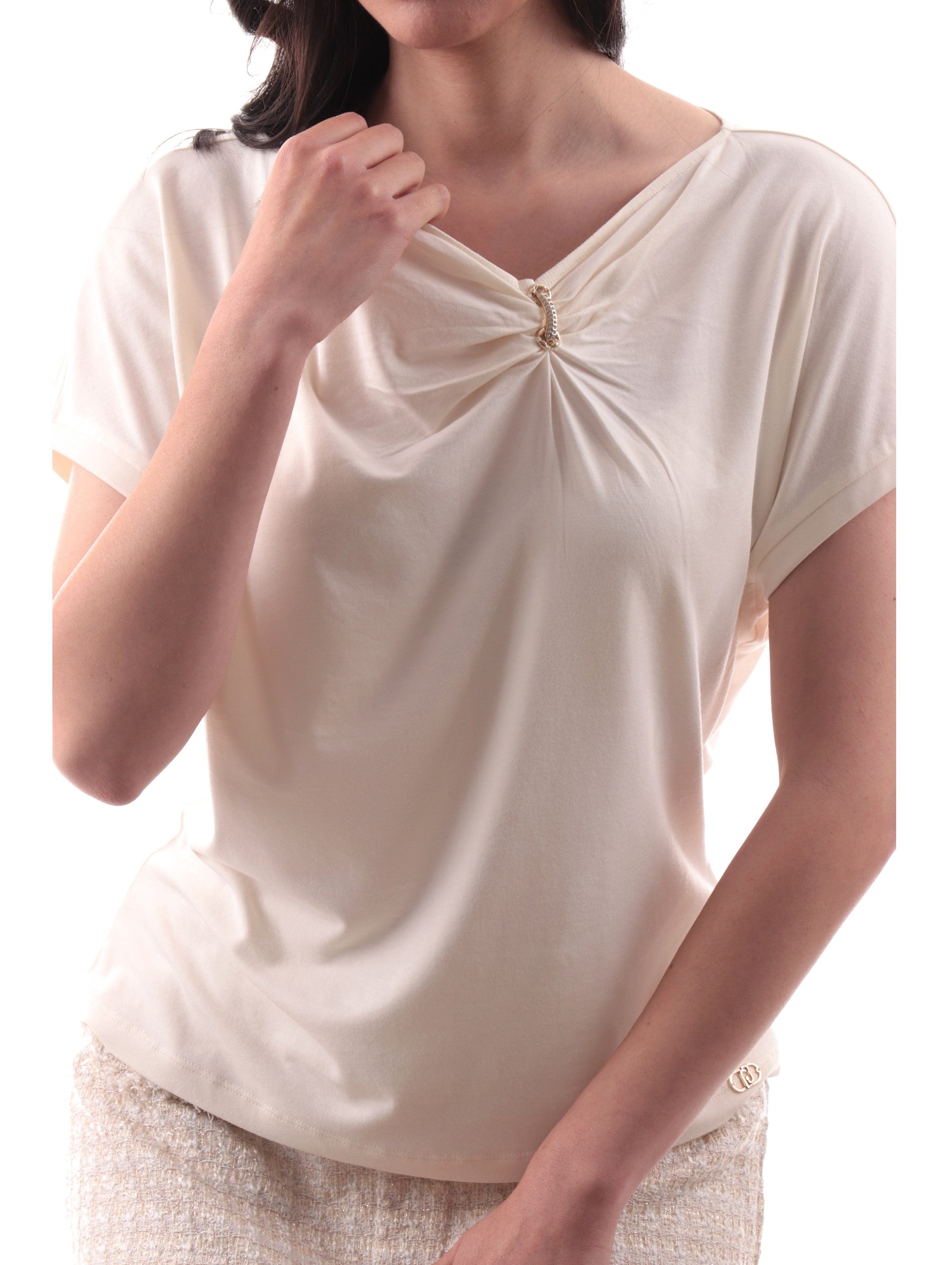 Maglia Liu jo a maniche corte bianca a da donna con gancio strass . Questa maglia Liu jo bianca da donna è caratterizzata da maniche corte, fit morbido e medaglietta logo oro sul fondo.