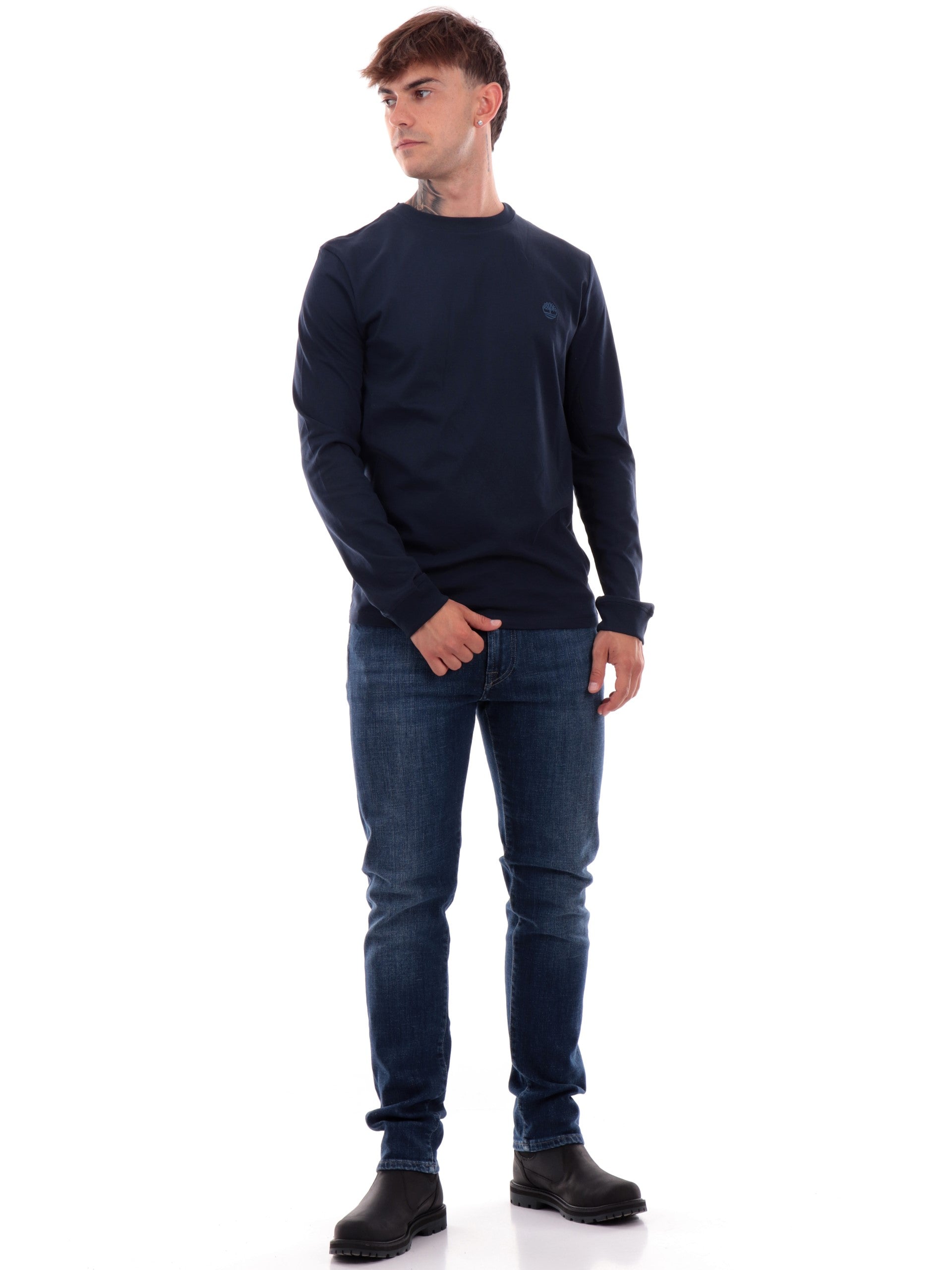 T-shirt Timberland blu da uomo a maniche lunghe TB0A2BQ3