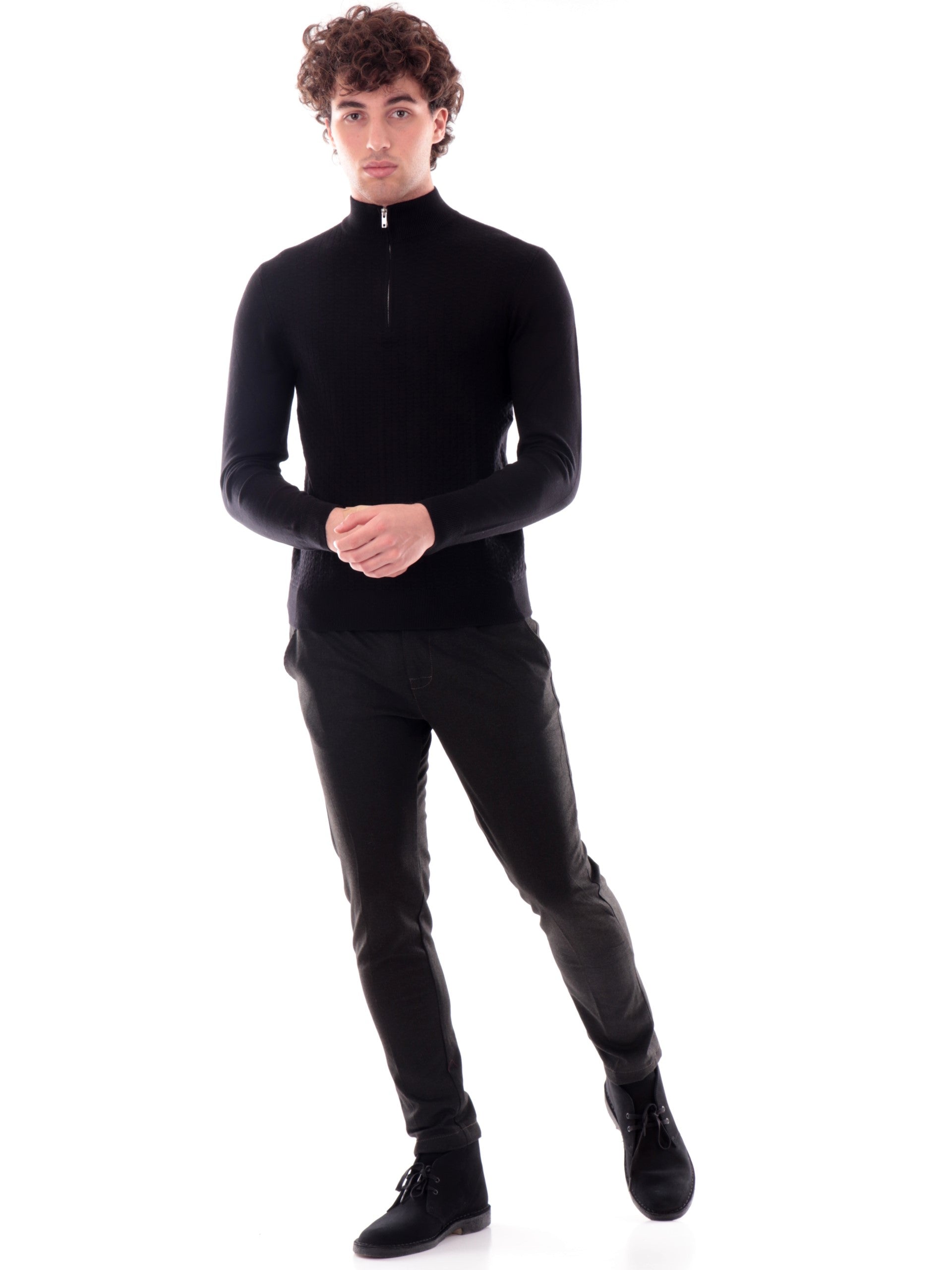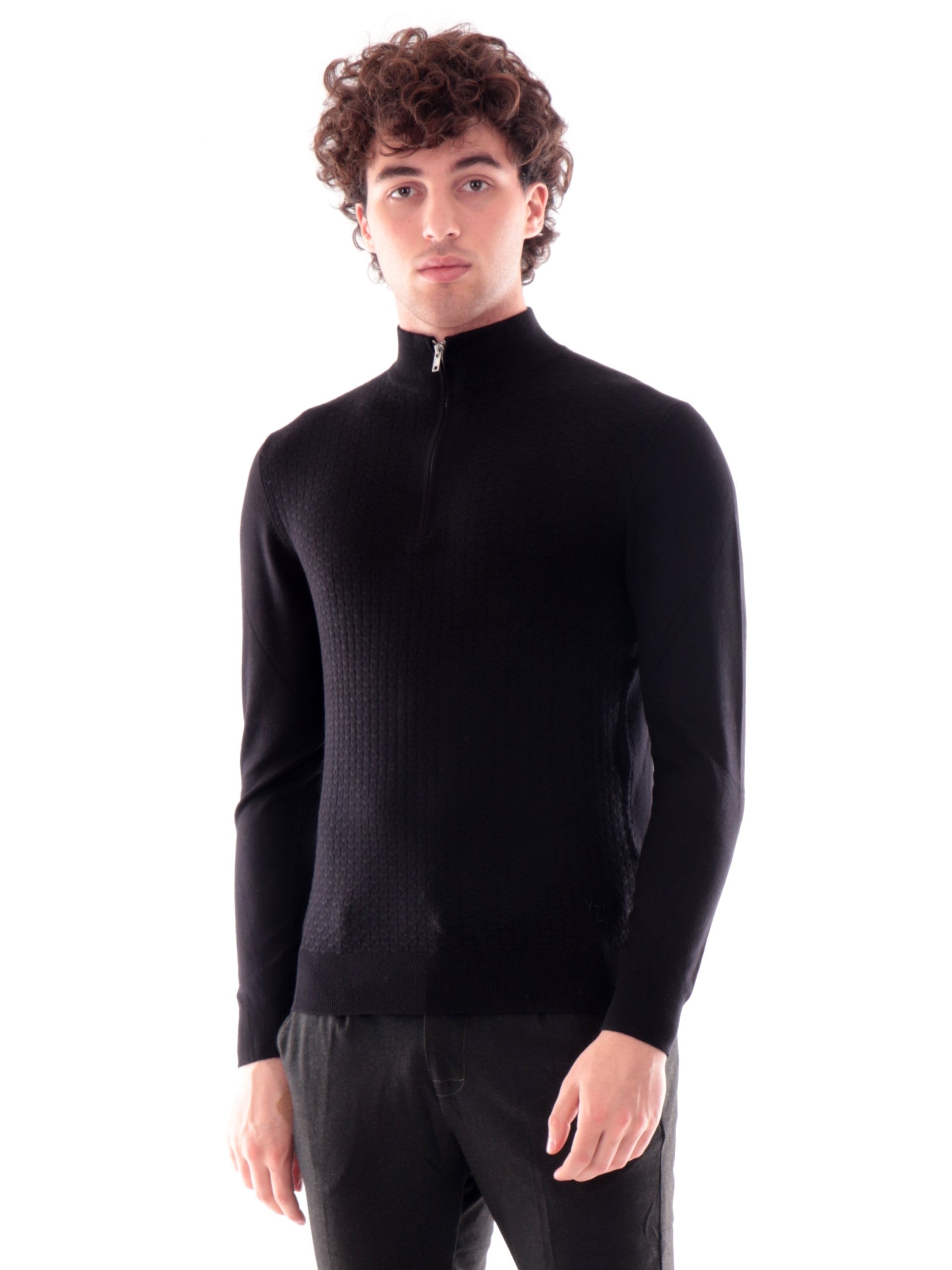 Maglione Yes Zee nero mezza zip da uomo collo alto M826MF000801