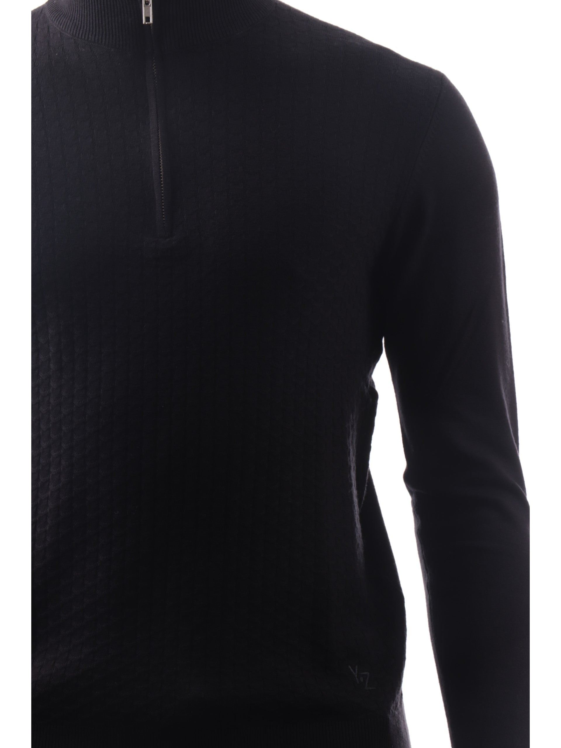 Maglione Yes Zee nero mezza zip da uomo collo alto. Questo maglione a fantasia Yes Zee da uomo è realizzato un tessuto in viscosa che lo rende calda e morbida al tatto. Questa maglia a fantasia a collo alto Yes Zee nera è caratterizzata da una mezza zip, polsini e fondo a costime elasticizzati e il logo del brand in basso a sinistra