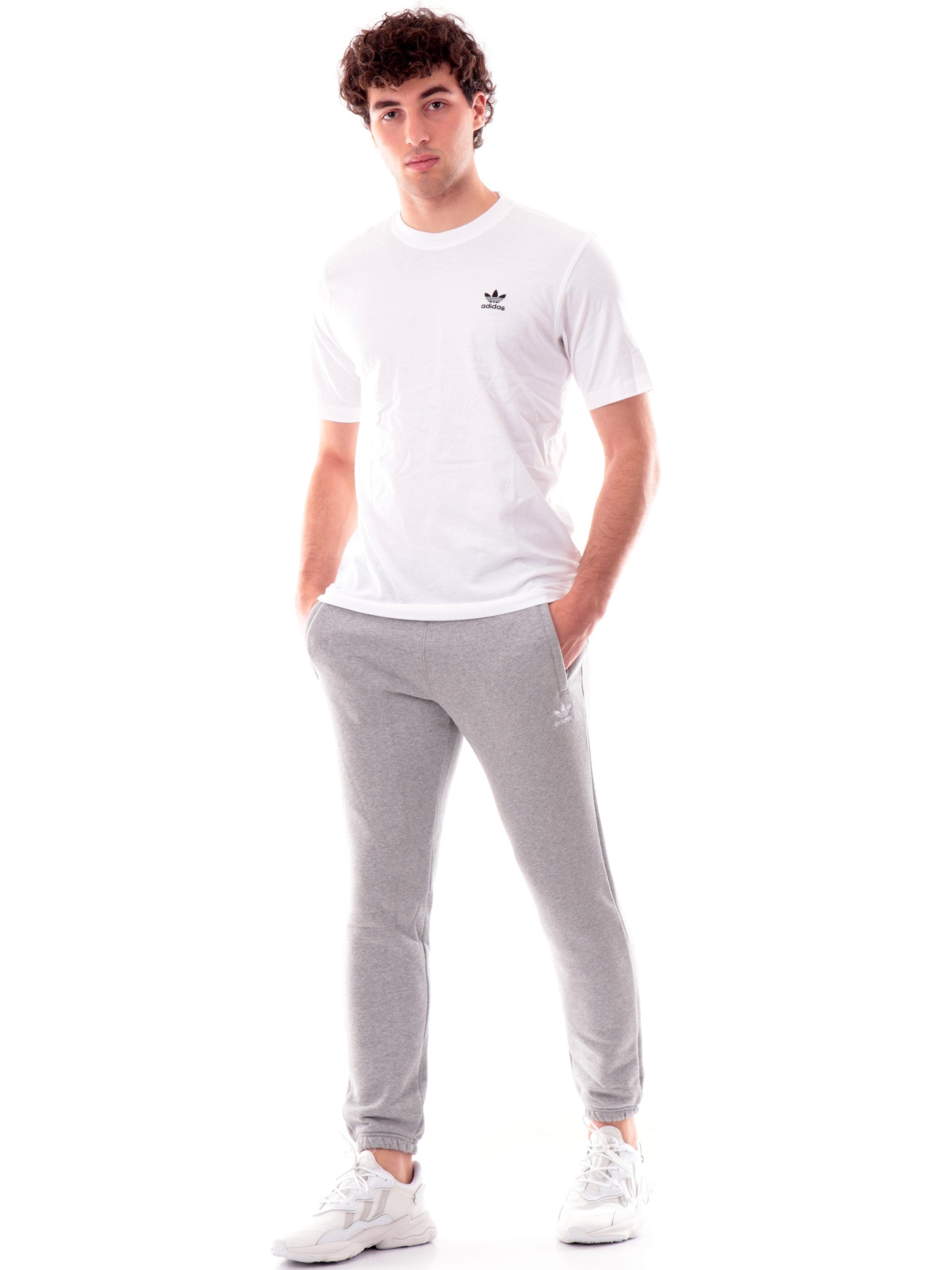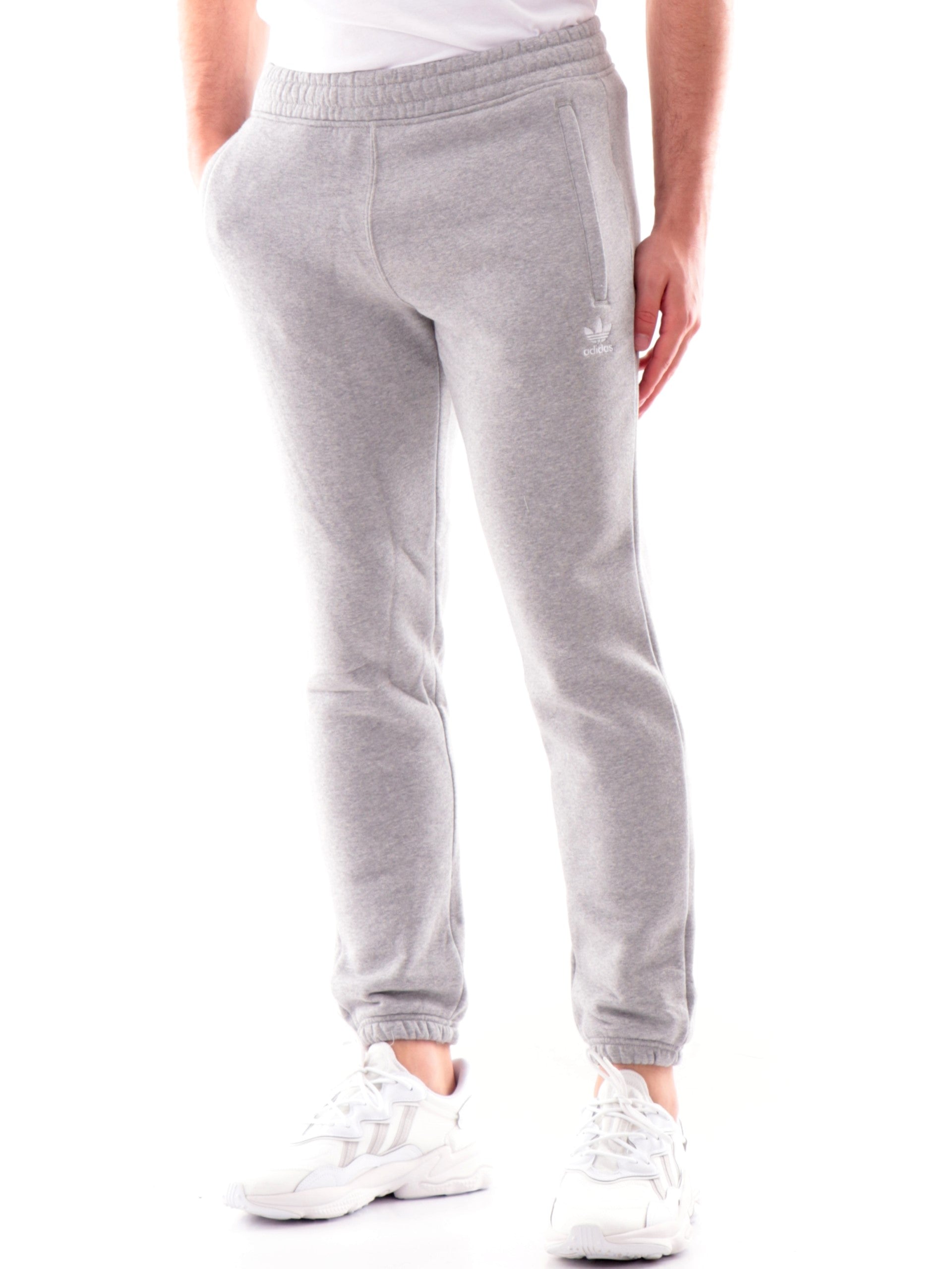 Pantaloni tuta Adidas grigi felpati da uomo logo Adidas ricamato JY6194, realizzati in cotone. Questi pantaloni tuta Adidas grigi hanno la banda elastica sul punto vita regolabile con laccetti, due tasche laterali con zip, polsini elasticizzati e il logo Adidas ricamato sul lato sinistro.