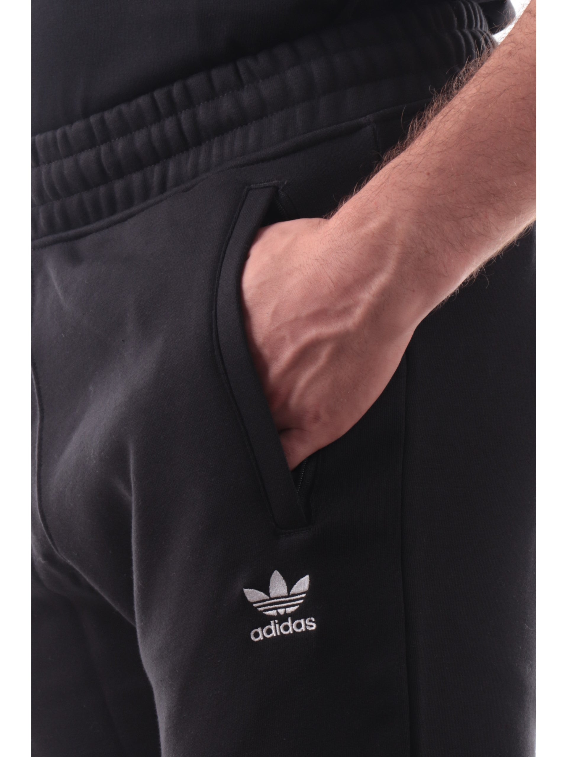 Pantaloni tuta Adidas neri felpati da uomo logo Adidas ricamato IY7361, realizzati in cotone. Questi pantaloni tuta Adidas neri hanno la banda elastica sul punto vita regolabile con laccetti, due tasche laterali con zip, polsini elasticizzati e il logo Adidas ricamato sul lato sinistro.