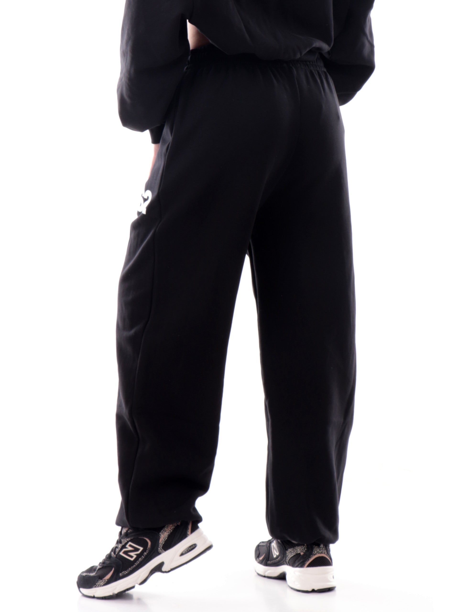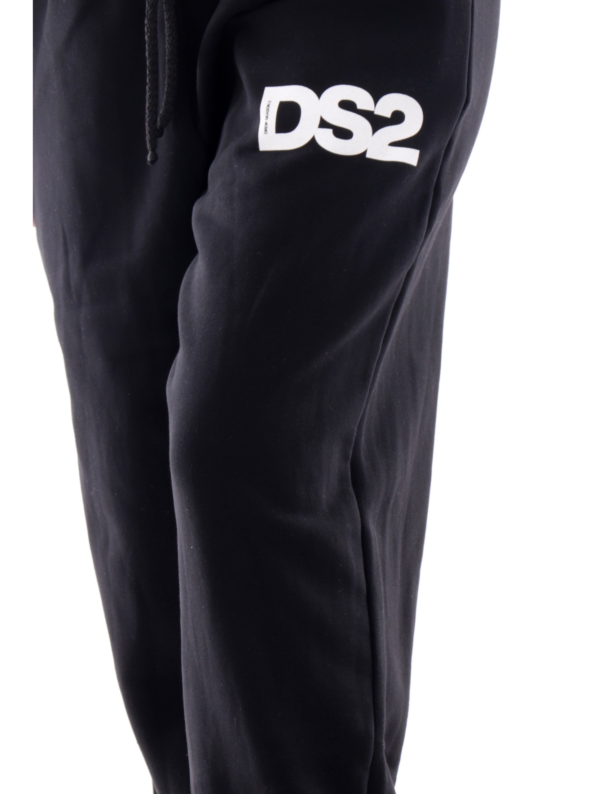 Pantaloni Tuta DS2 neri da donna con polsini sul fondo. Questa tuta DS2 è realizzata in morbido cotone felpato con logo bianco stampato sulla tasca. Una tuta donna semplice ed essenziale dal fit comodo e dal tessuto avvolgente.