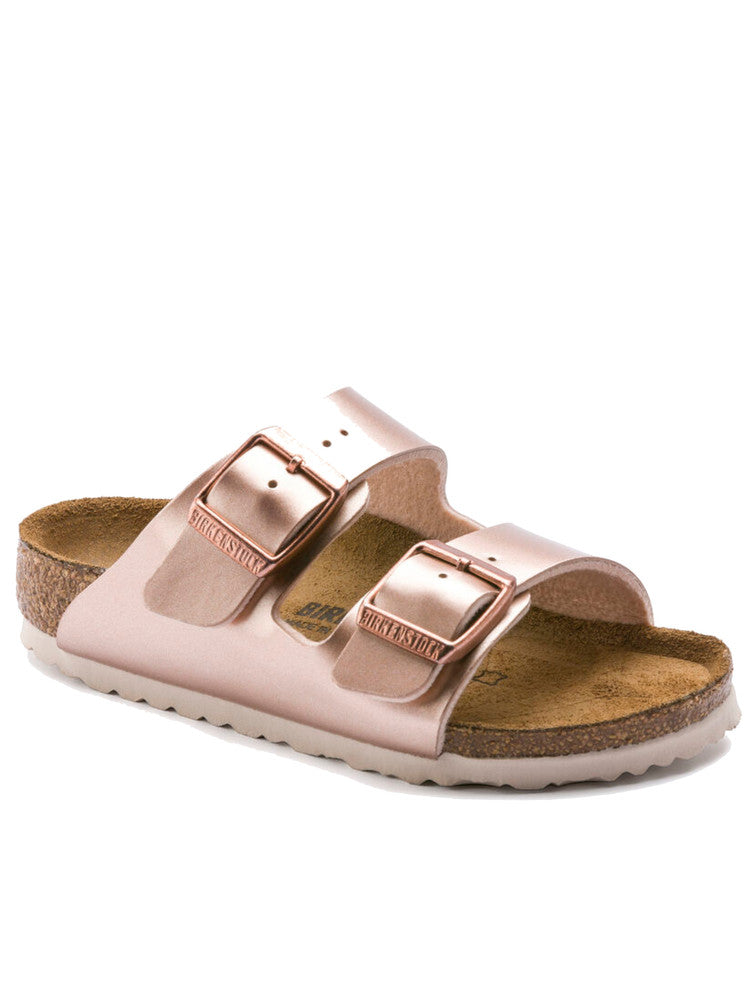 Sandali Birkenstock dalle linee sobrie e minimaliste da donna, proposti in tonalità rosa; classico di casa Birkenstock per il suo design intramontabile, il modello Arizona Kids ha due cinturini con fibbia di metallo regolabile realizzati in Birko-Flor®, rifinito in pelle Nubuk per un comfort ideale. Punto di forza dei sandali Birkenstock è la forma anatomica del plantare, realizzato in sughero che isola dal caldo, mentre la suola in EVA, leggera ed elastica, ammortizza dolcemente i passi durante la camminata.