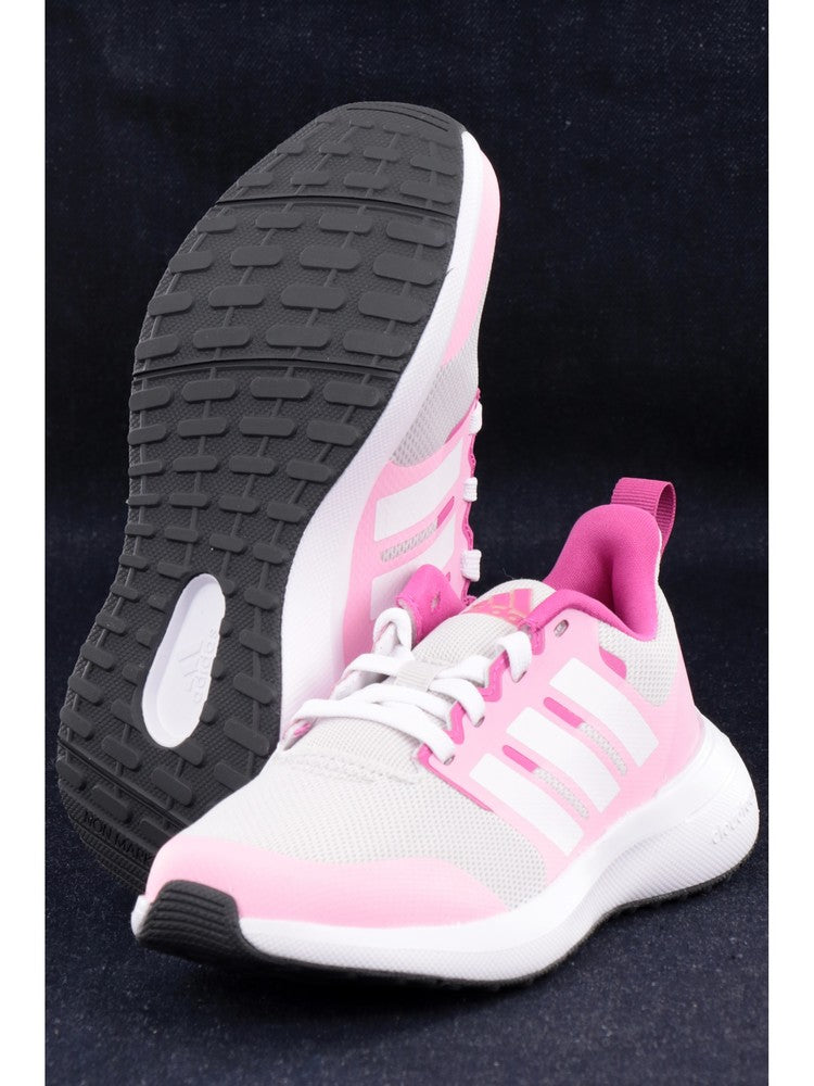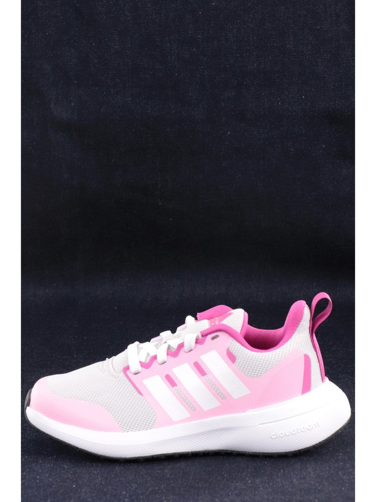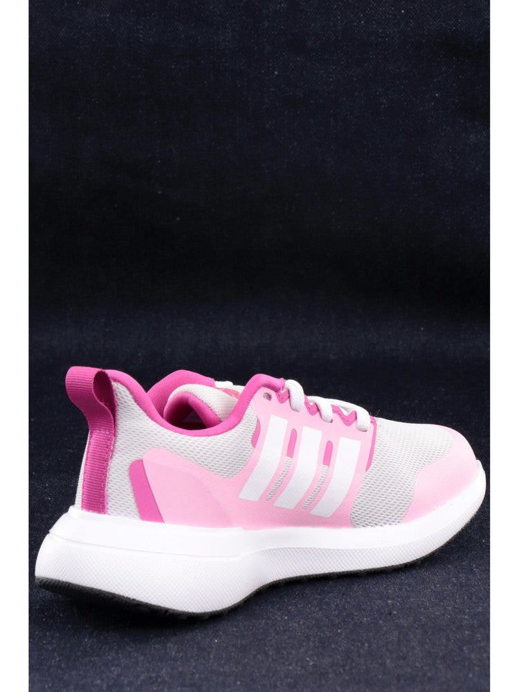 Scarpe Adidas rosa e grigie da bambina, modello FortaRun 2.0. Queste sneakers Adidas rosa e grigie hanno la tomaia in mesh con inserti in tessuto traspirante, la suola in gomma e il battistrada con texture geometrica. Sul davanti di queste Adidas troviamo la classica chiusura a lacci, le iconiche 3Stripes ambo i lati a contrasto colore e la linguetta posteriore che agevola l'entrata del piede.