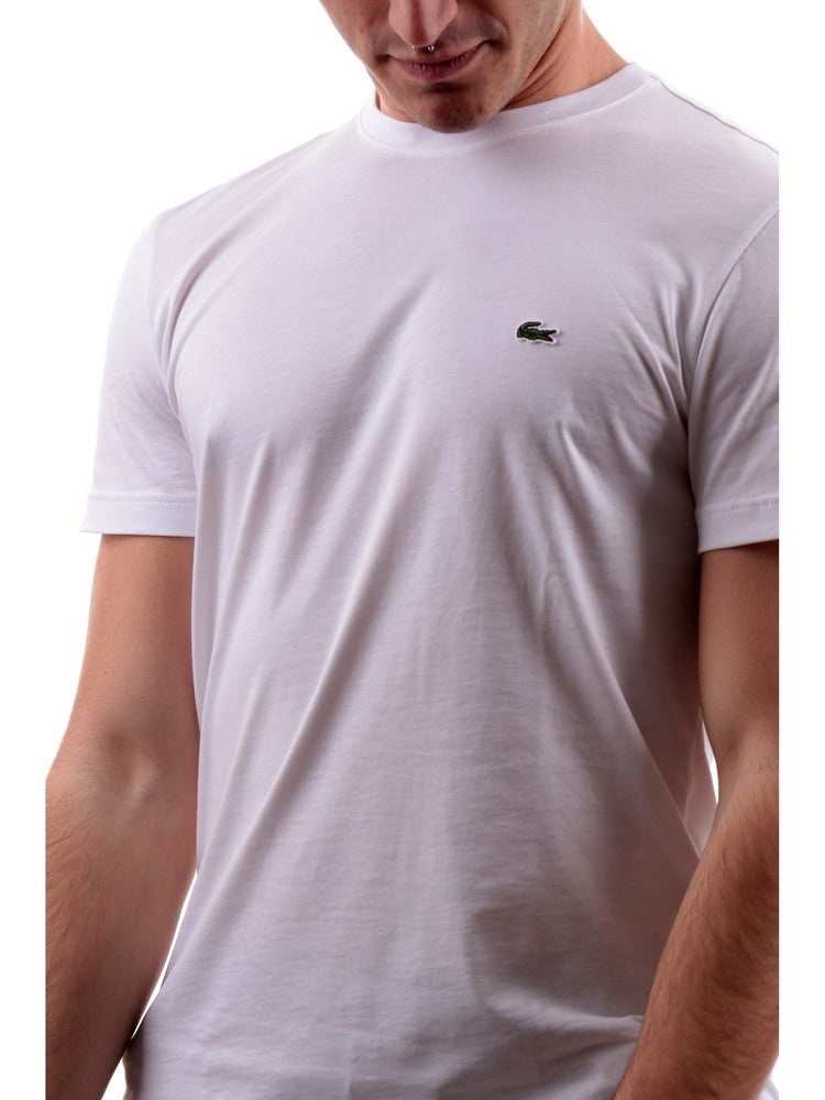 Maglietta da uomo Lacoste bianca a maniche corte. Questa T-Shirt, icona del marchio Lacoste,combina ad un design minimal e tradizionale una vestibilità regular. Questa T-Shirt Lacoste da uomo RegularFit realizzata al 100% in cotone garantisce traspirabilità e morbidezza al contatto con la pelle. La maglietta Lacoste bianca è facilmente riconoscibile grazie all'iconico coccodrillo cucito sul davanti lato sinistro.