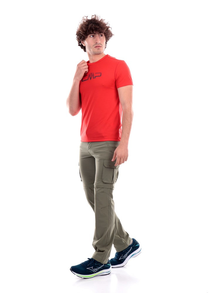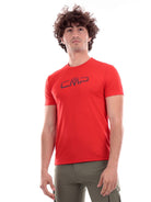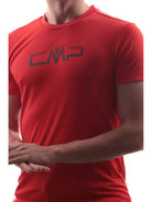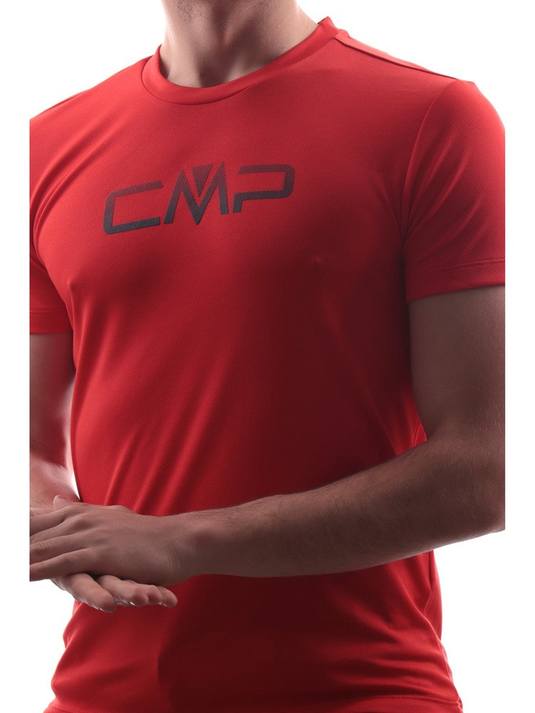 T-shirt trekking CMP rossa da uomo 39T7117P. Questa maglietta CMP rossa girocollo ha la stampa del brand sul davanti, le maniche corte ed il fondo regolare.