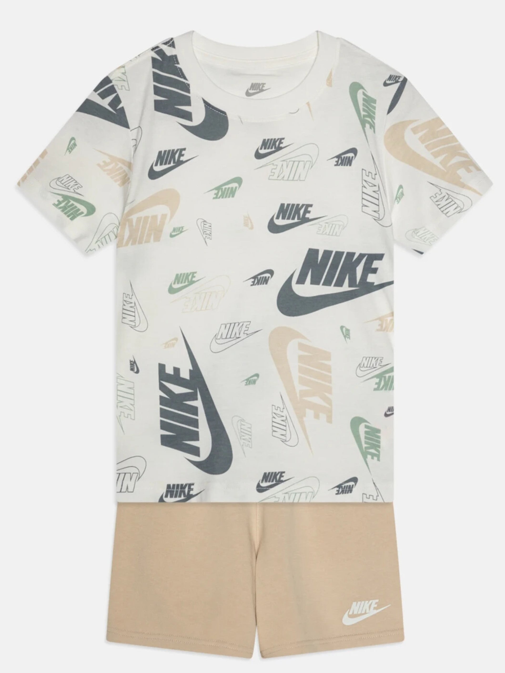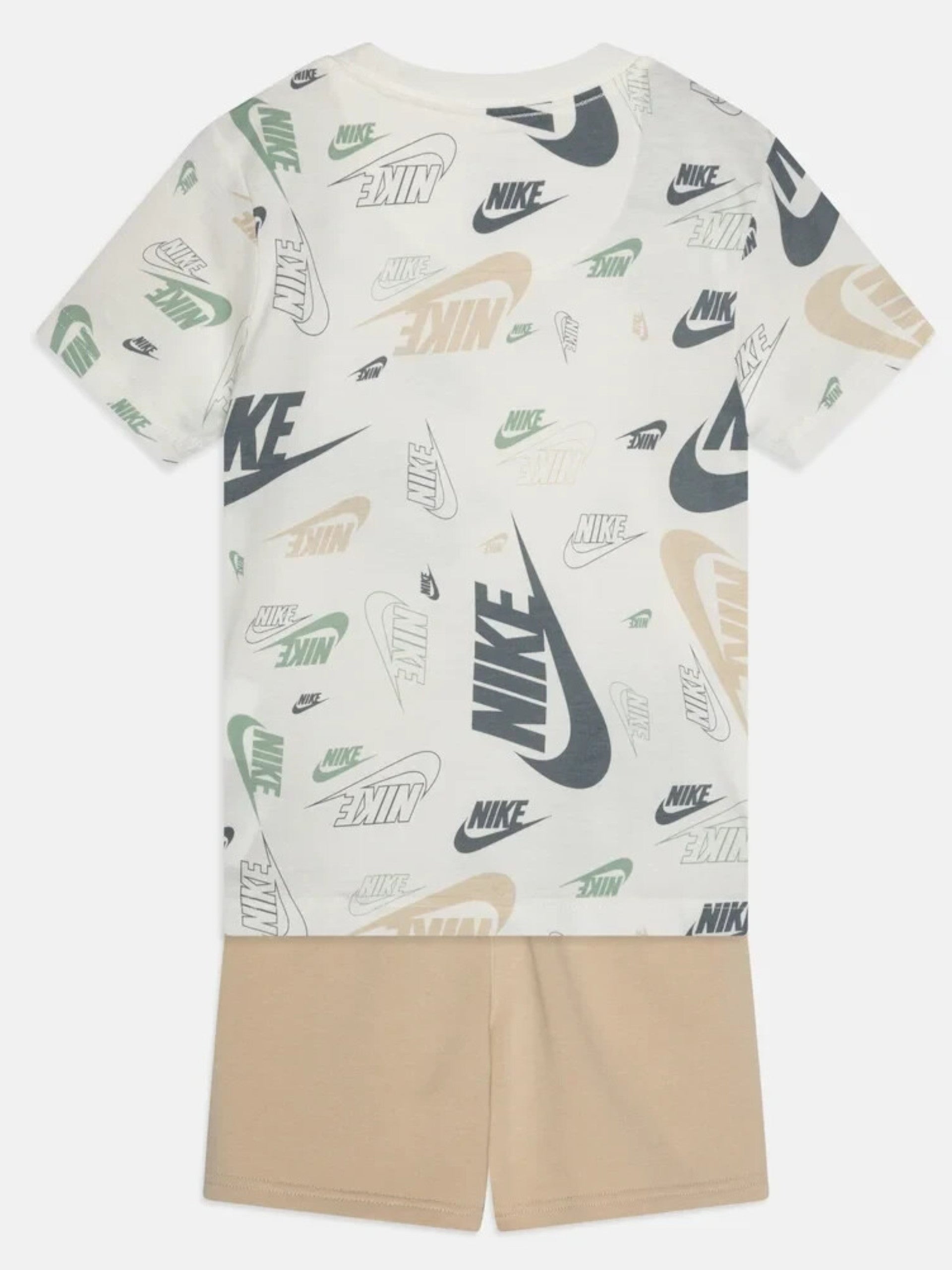Completo Nike bianco e beige da bambino logo all over con bermuda 86N043