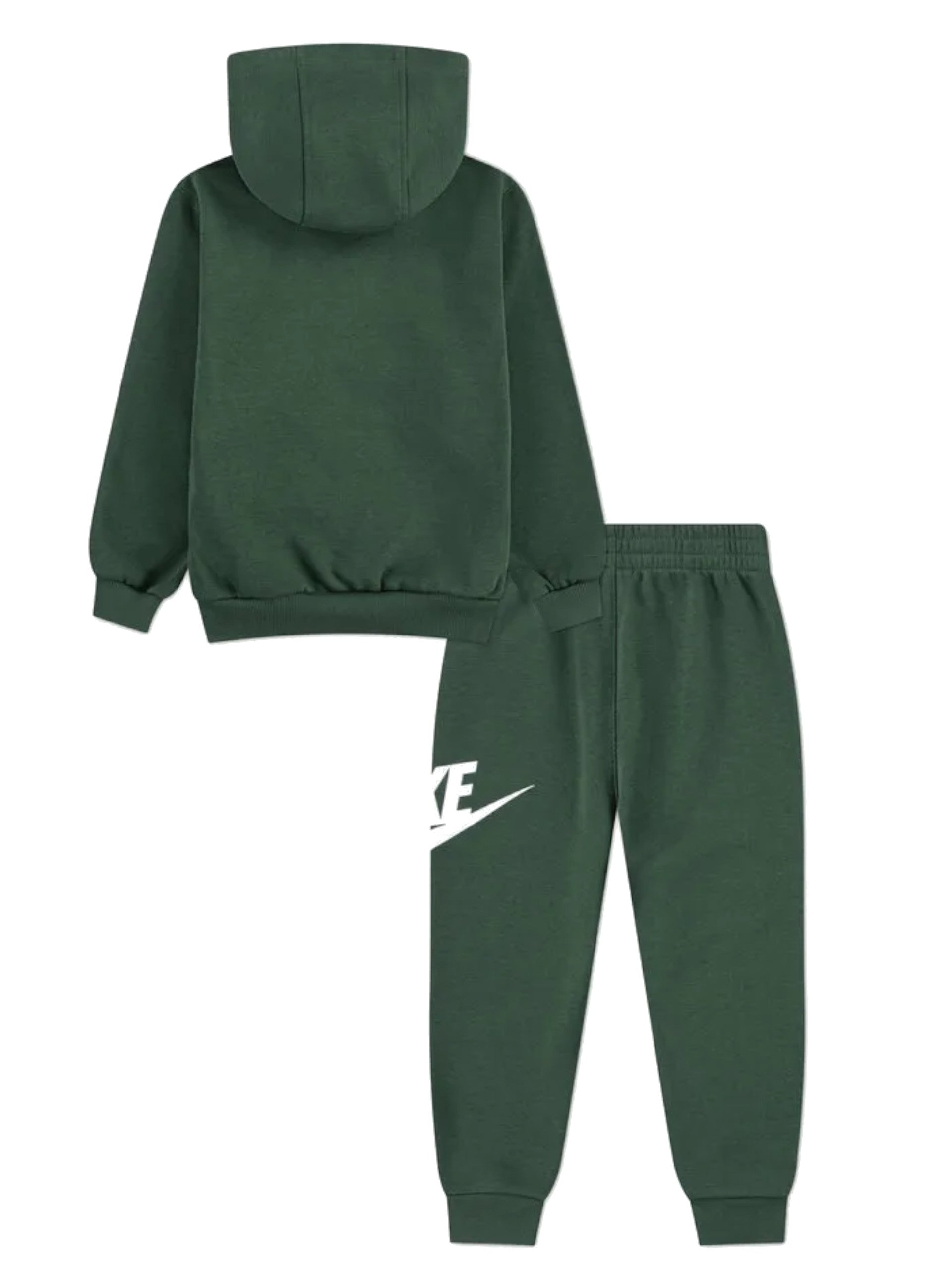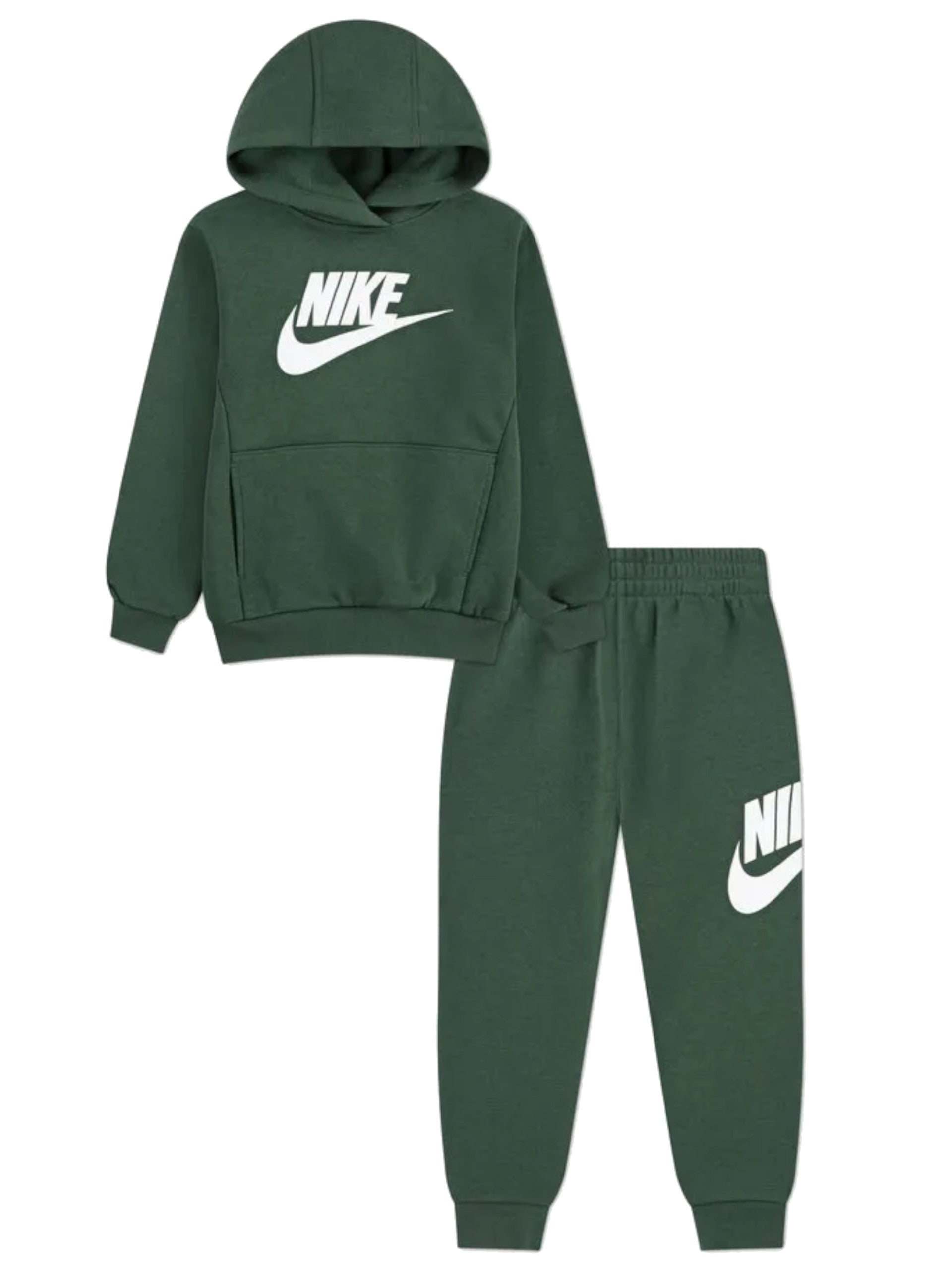 Tuta Nike verde da bambino felpata 86L135. Composta da felpa verde con stampa Nike sul davanti e pantaloni verdi con polsini sul fondo e vita elastica. Questa Tuta Nike bambino con felpa chiusa e pantaloni Nike da bambino è perfetta per conciliare stile e praticità. Il tessuto in cotone felpato dona il massimo confort e calore.