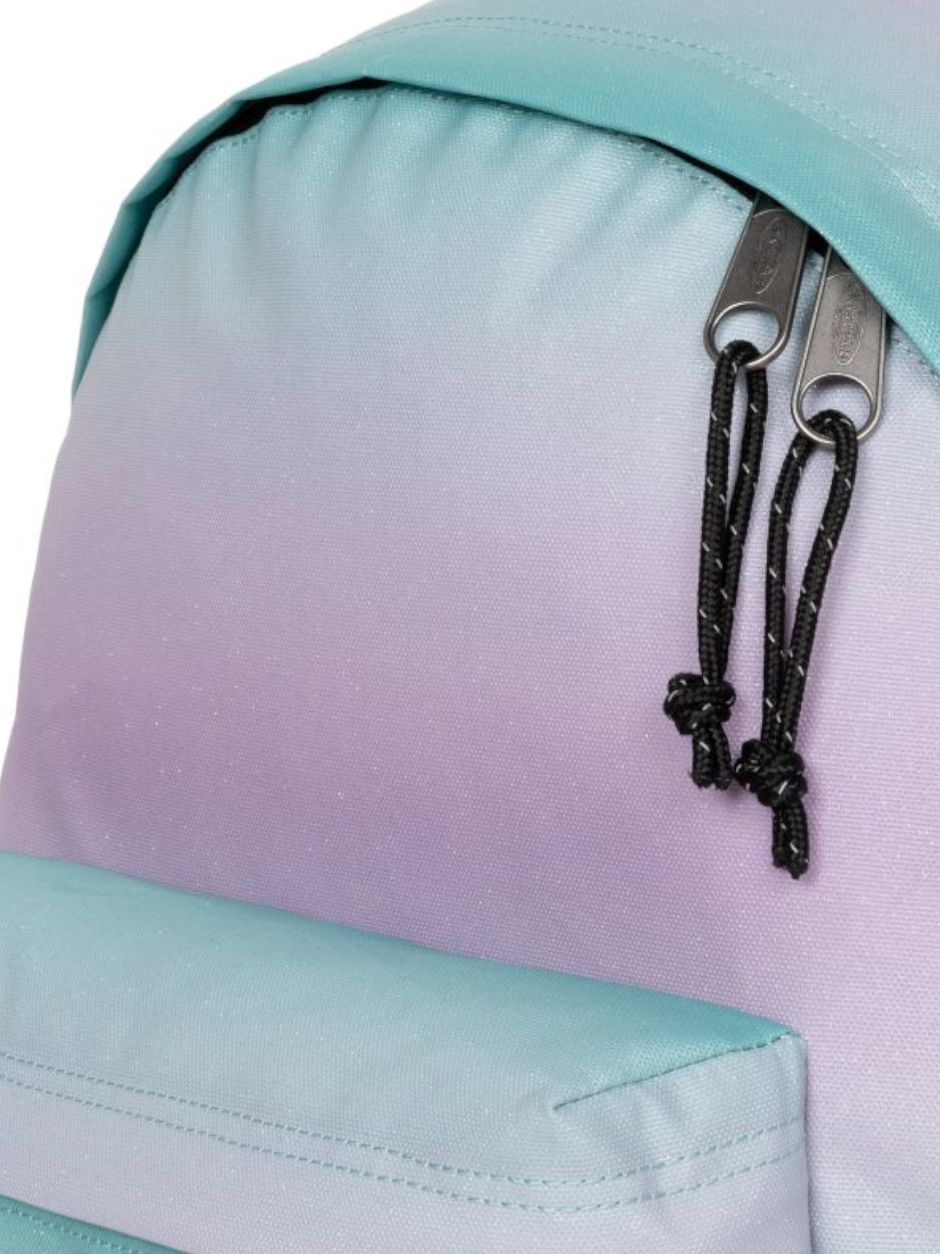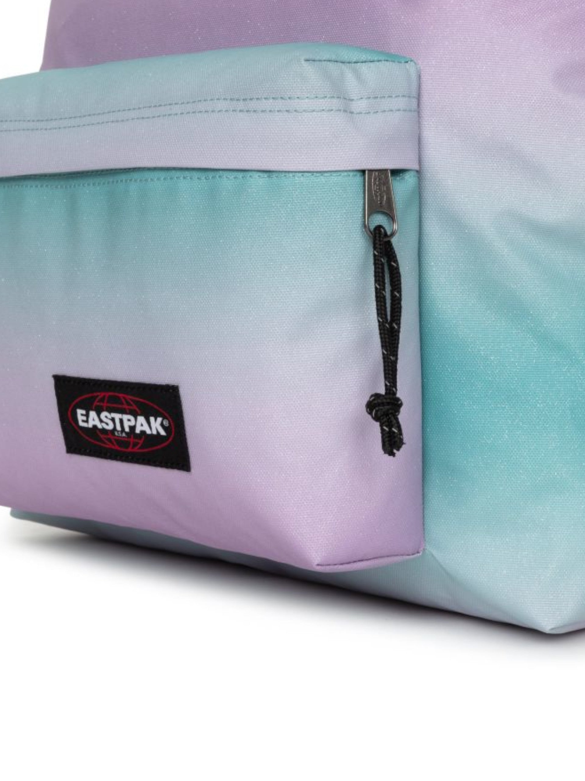 Zaino Eastpak lilla e verde con glitter Padded Pak'r Spark EK000620. Questo zaino Eastpak lilla ha gli spallacci ergonomici che garantiscono un'ottima distribuzione del peso, una tasca sul davanti con il patch cucito del brand con chiusura zip e la tasca principale con chiusura zip around.