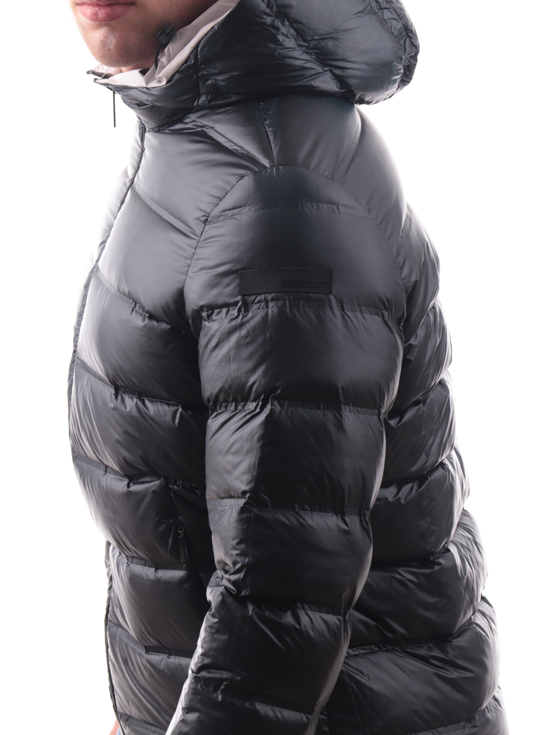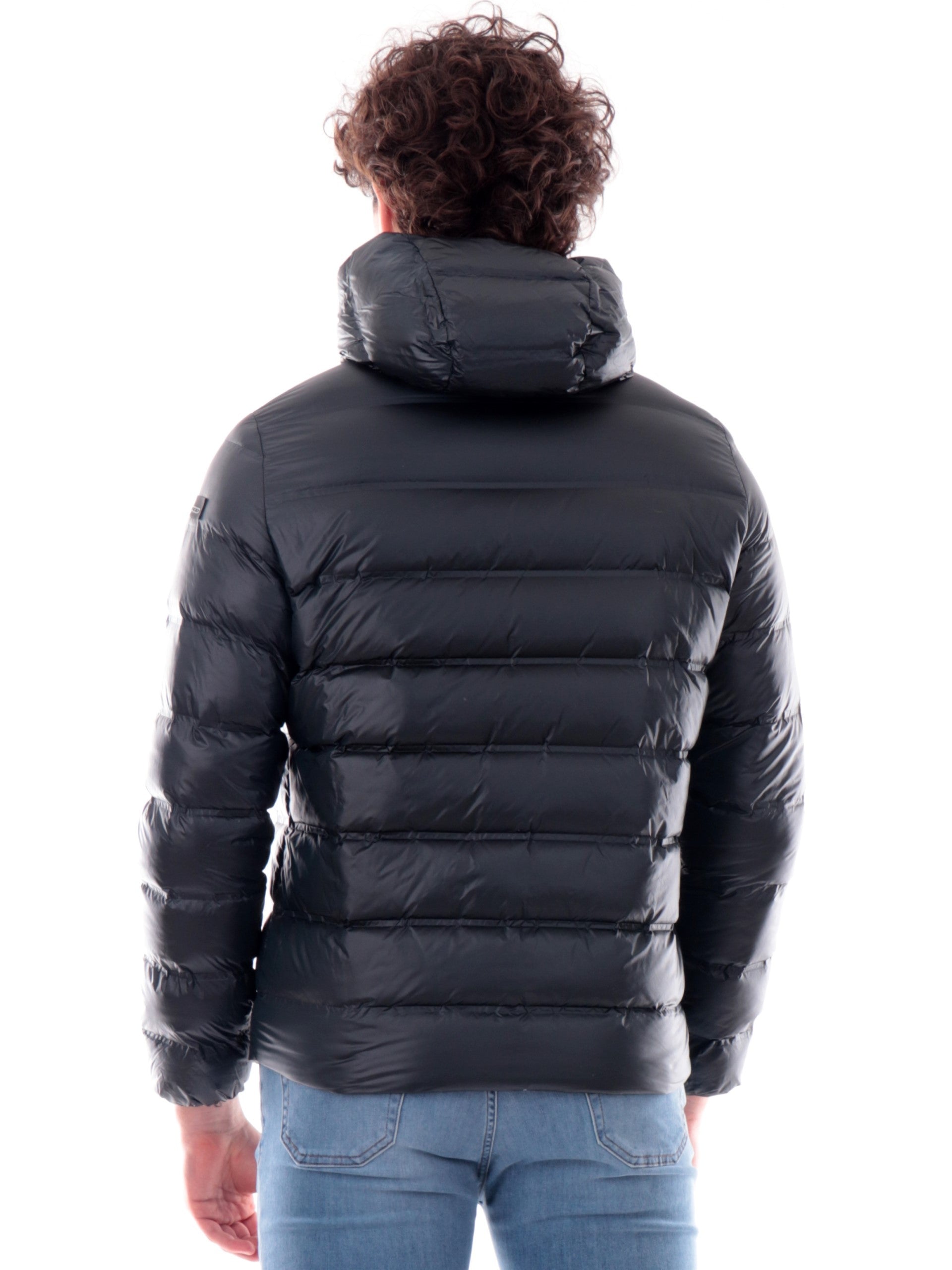 Composizione: tessuto esterno: 86% poliammide, 14% elastan; imbottitura: 90% piumino, 10% piuma
