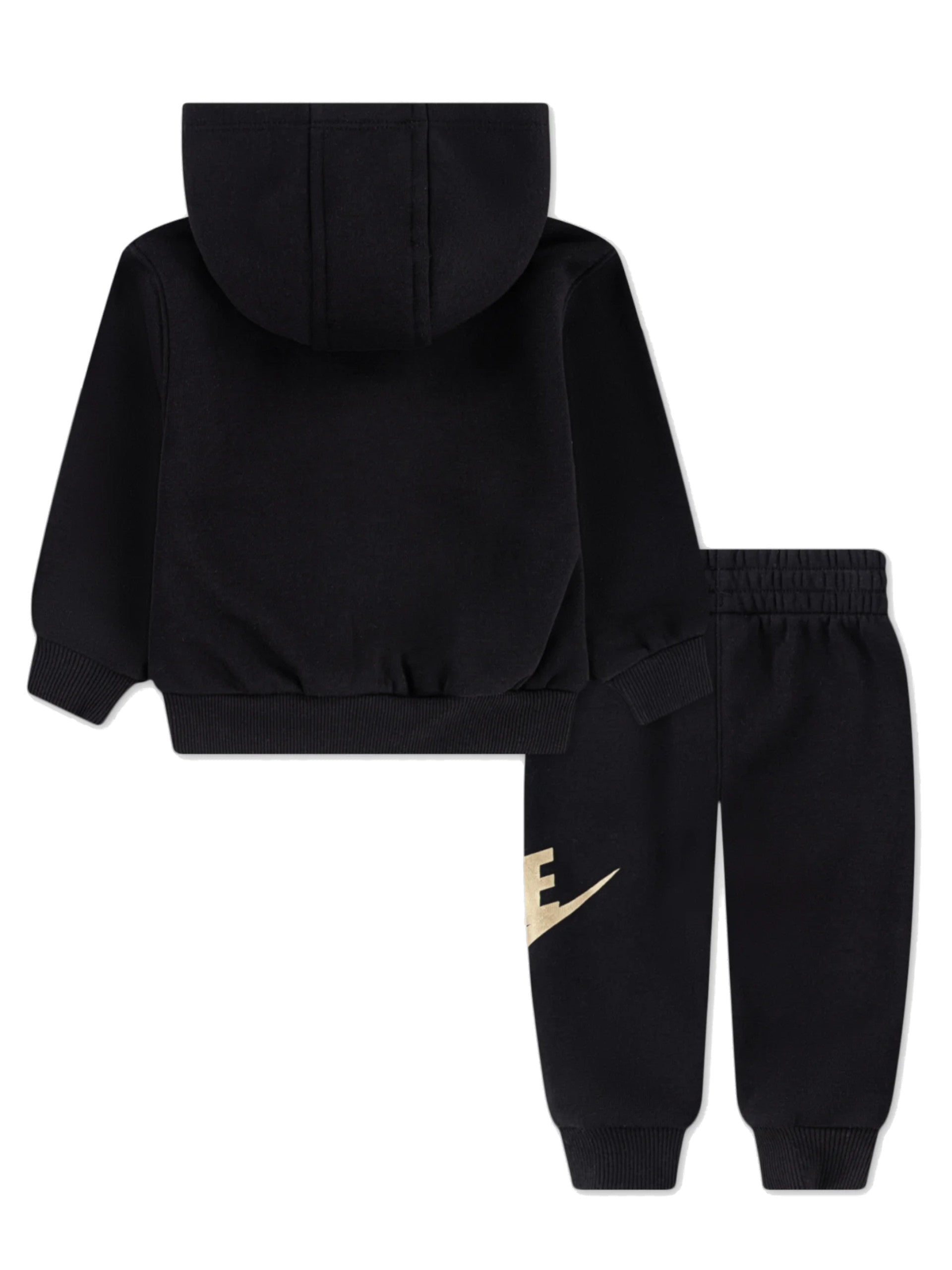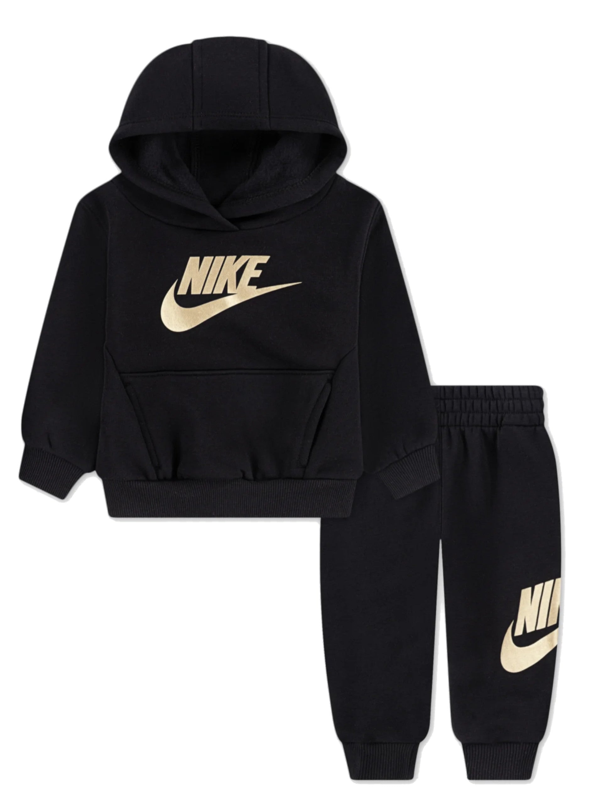 Tuta Nike nera da bambino felpata. Composta da felpa nera con stampa Nike sul davanti e polsini elasticizzati, pantaloni neri con polsini sul fondo, banda elastica sul punto vita e la maxi scritta Nike applicata sulla gamba sinistra. Questa Tuta Nike bambino con felpa chiusa e pantaloni Nike da bambino è perfetta per conciliare stile e praticità. Il tessuto in cotone felpato dona il massimo confort e calore.