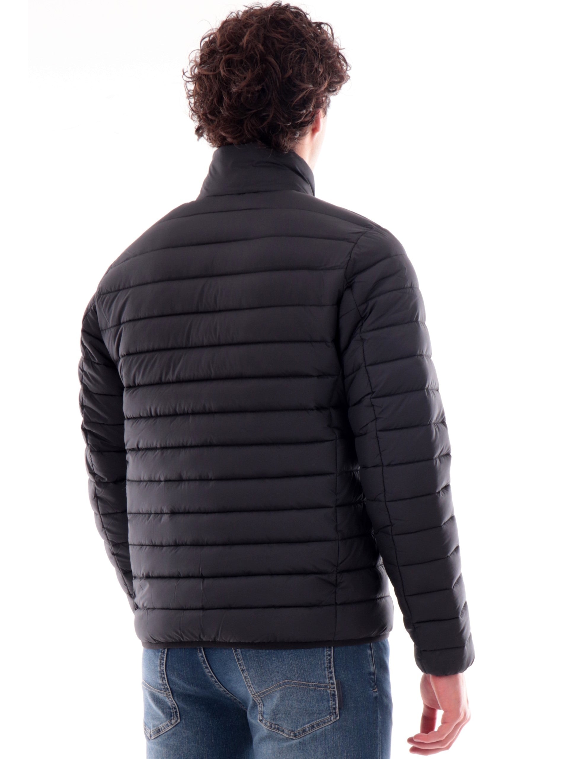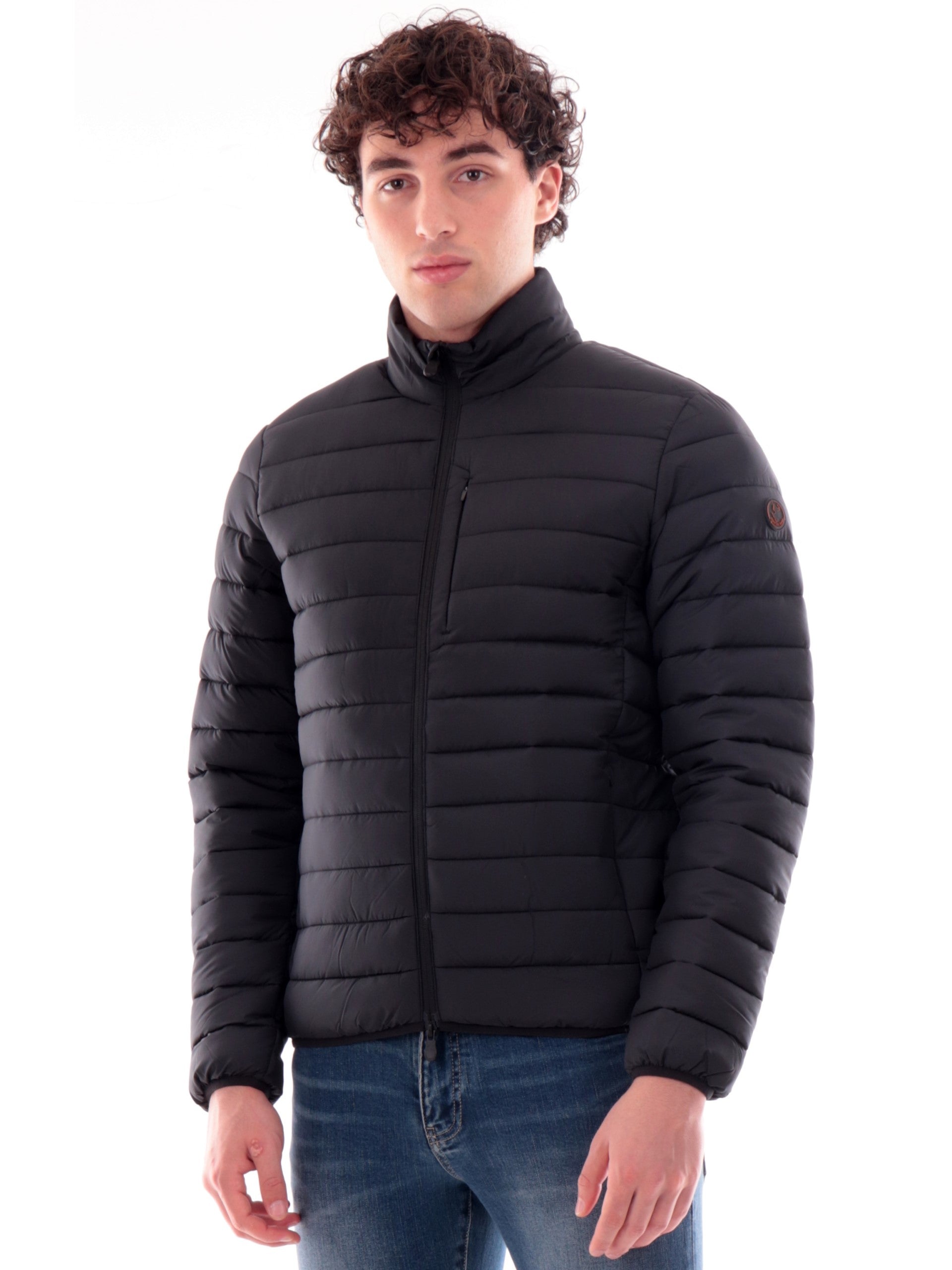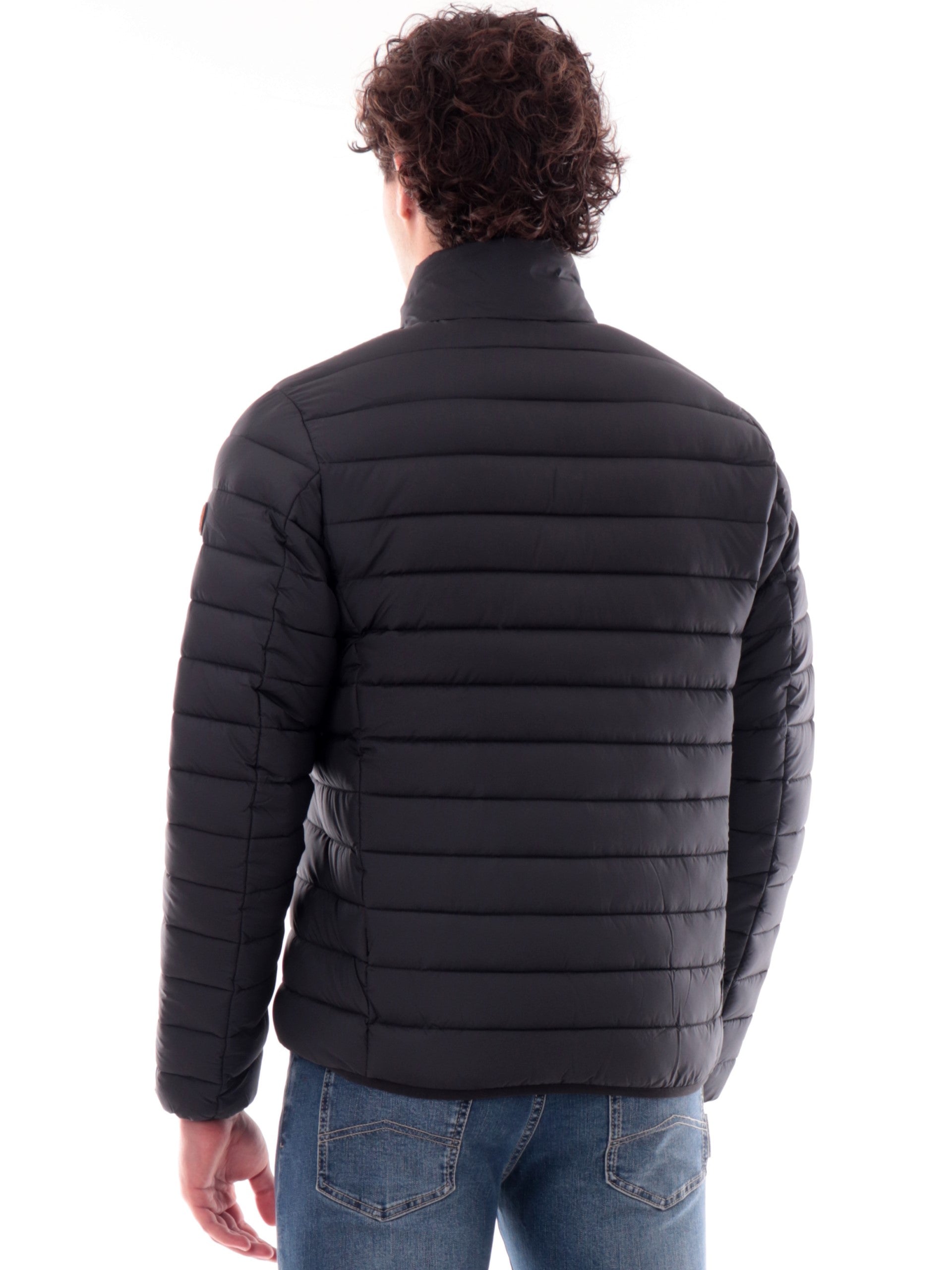 Giacca Save The Duck Erion nera da uomo full zip D31274MMIRO21, realizzata con imbottitura eco-friendly. Questo giubbino Save The Duck nero ha il collo alto, la chiusura full zip centrale, due taschelaterali con zip, un taschino lato cuore, il patch del brand applicato sulla manica sinistra tono su tono, polsini e fondo elasticizzati.