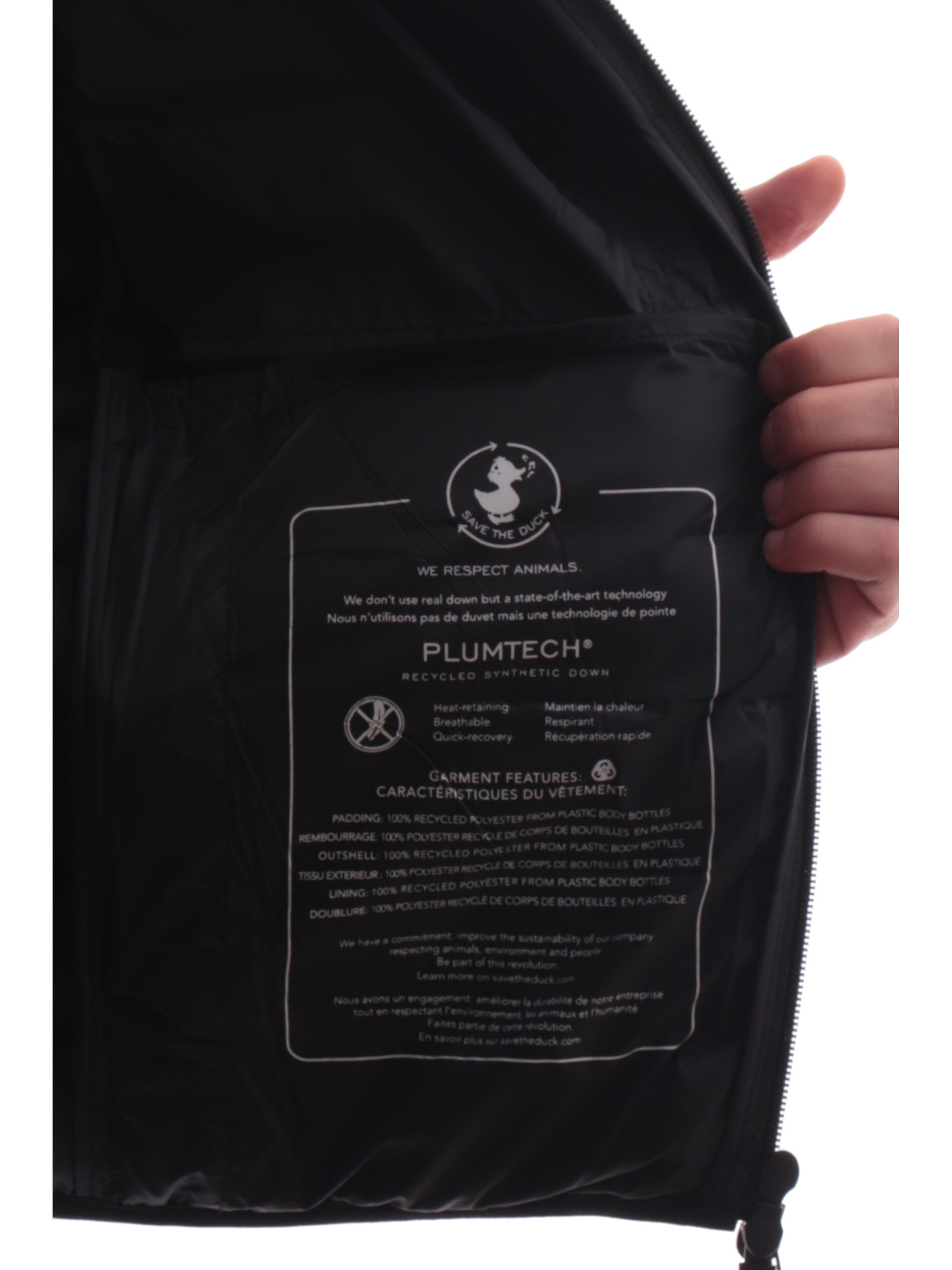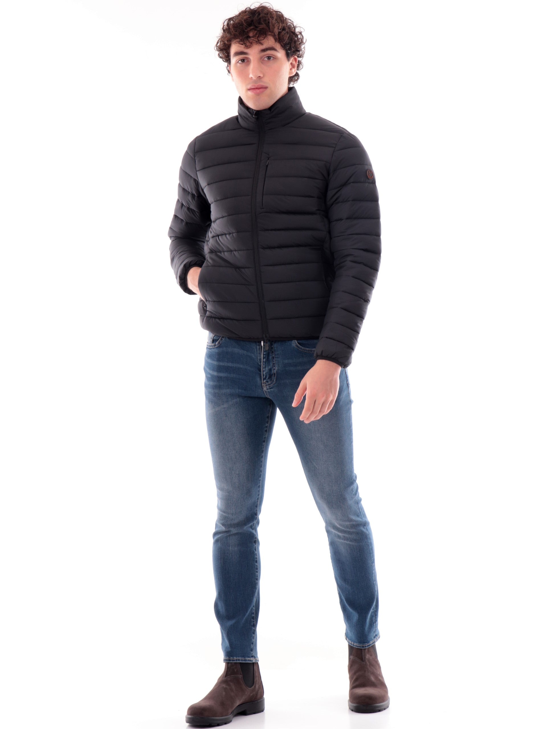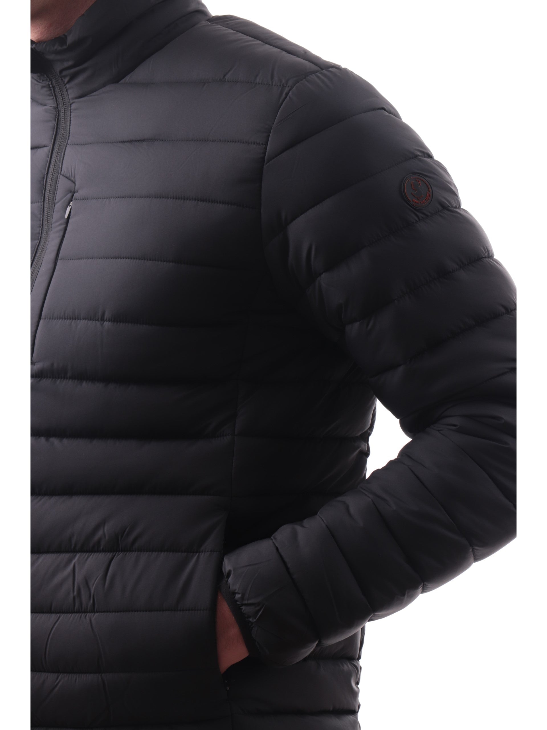 Giacca Save The Duck Erion nera da uomo full zip D31274MMIRO21, realizzata con imbottitura eco-friendly. Questo giubbino Save The Duck nero ha il collo alto, la chiusura full zip centrale, due taschelaterali con zip, un taschino lato cuore, il patch del brand applicato sulla manica sinistra tono su tono, polsini e fondo elasticizzati.