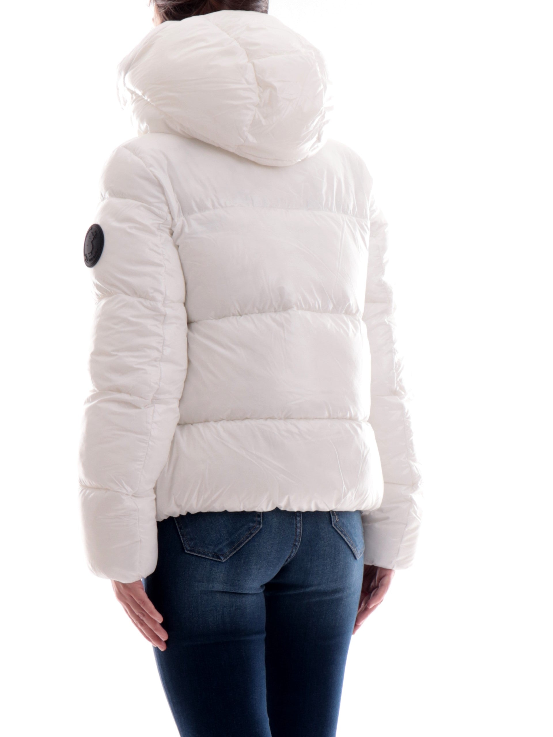 Piumino Save the Duck bianco lucido da donna con cappuccio e tasche D31989WLOVE2100