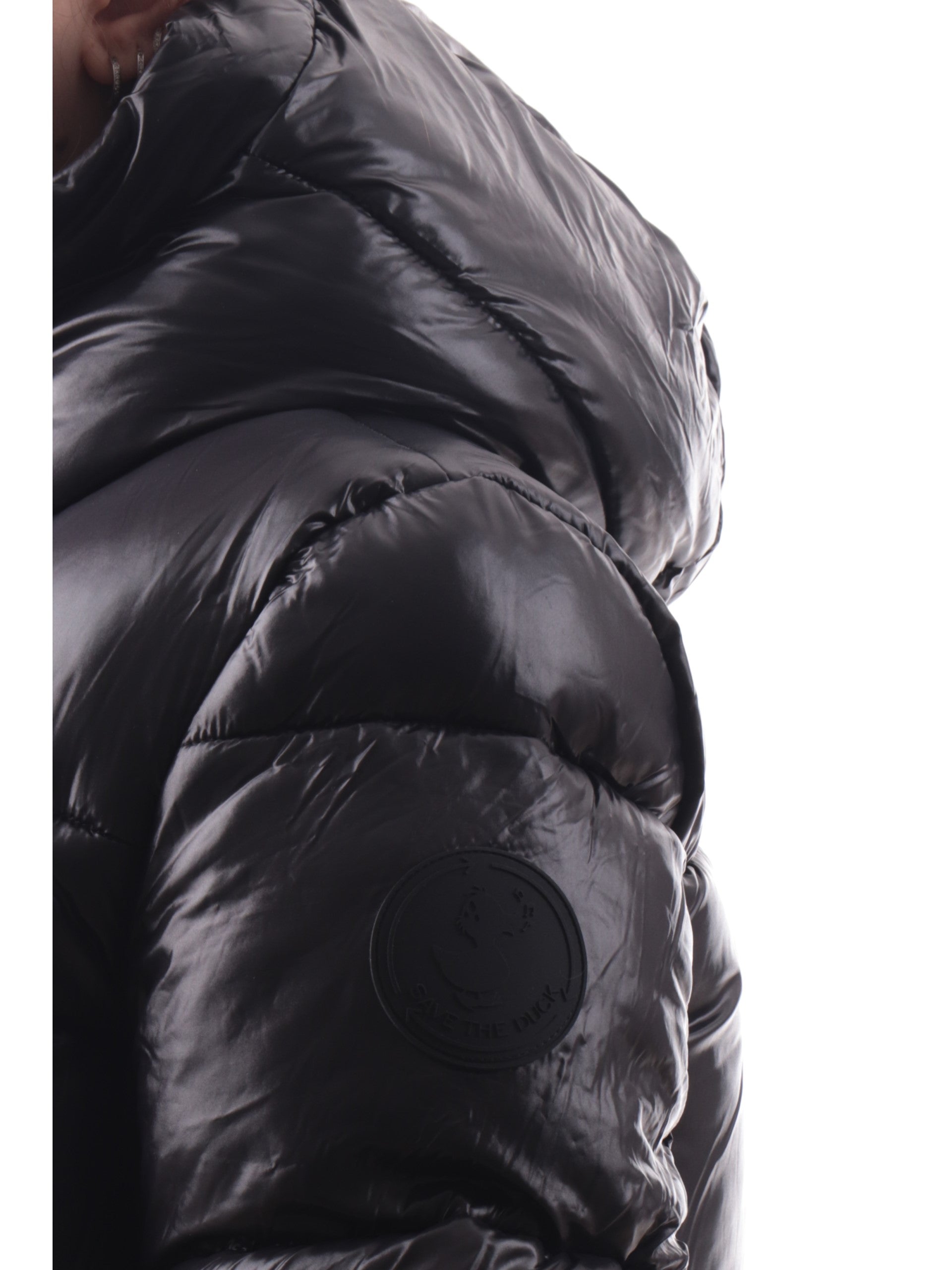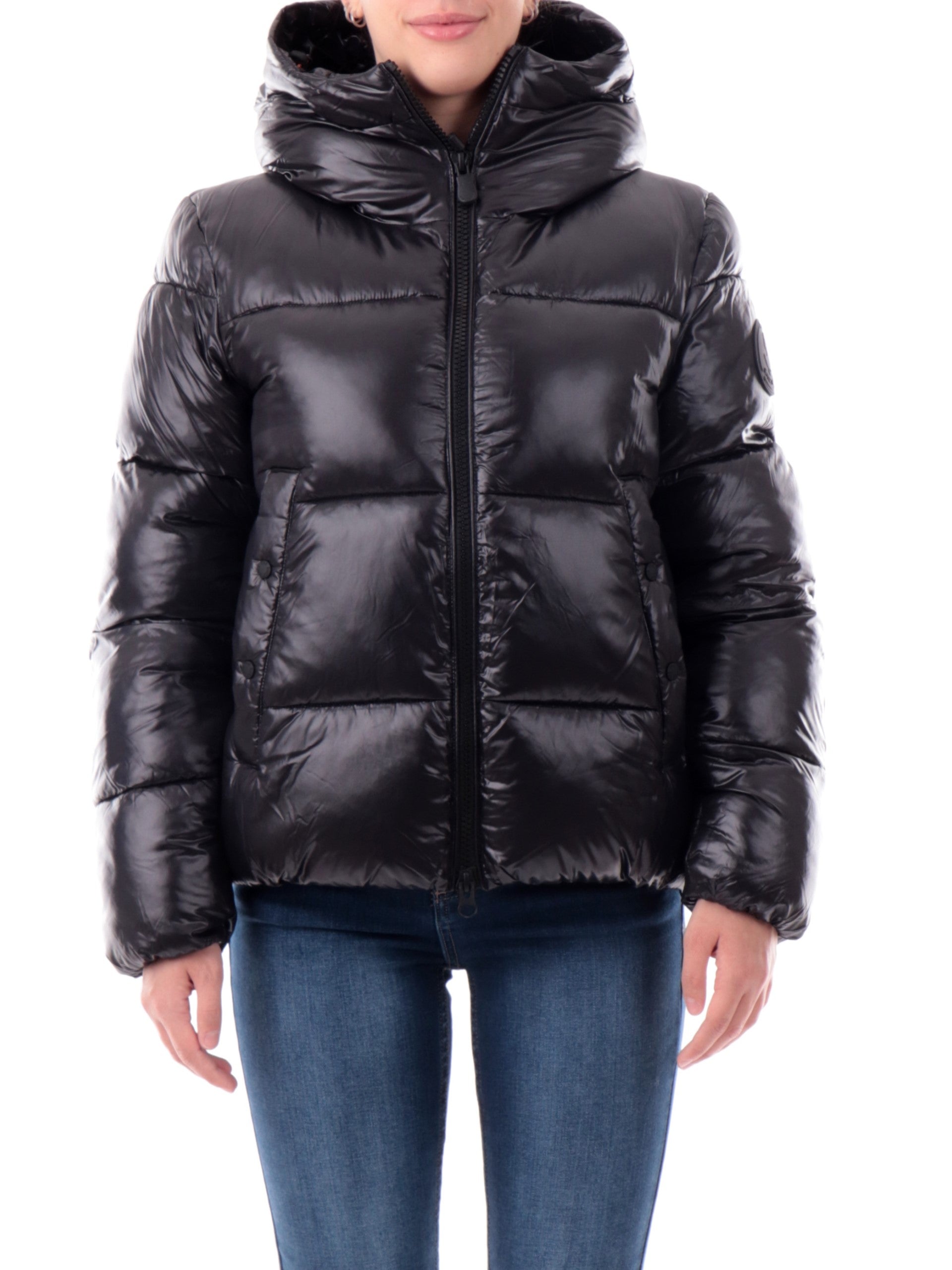 Piumino Save the Duck nero lucido da donna con cappuccio D31989WLOVE2110