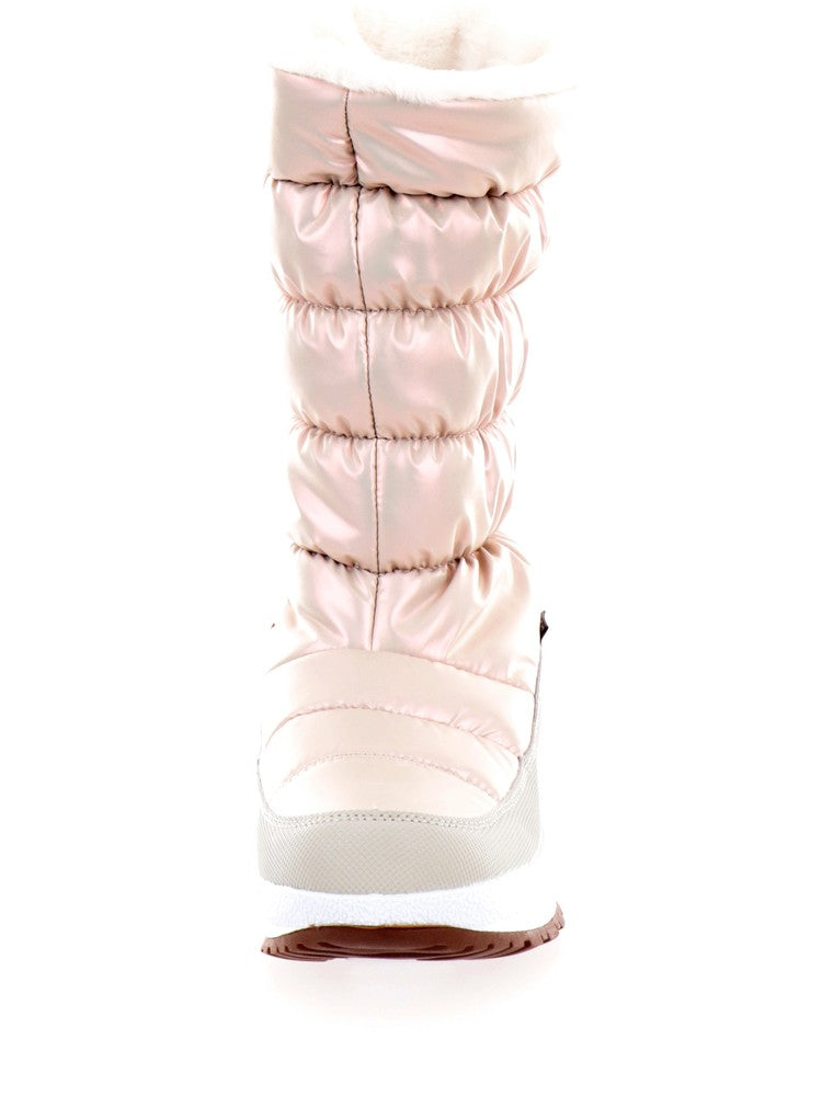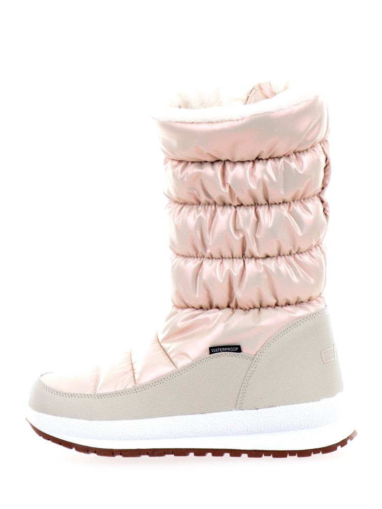 Doposci CMP argento da donna realizzati in materiale tecnico impermeabile. Questi doposci CMP hanno il collo in mesh, la tomaia in gomma e la suola rinforzata in gomma con battistrada a lisca di pesce. Sul davanti troviamo la chiusura full zip (che rende agevole l'entrata del piede) e il collo ampio. Logo del brand posto sulla zona tallonare a contrasto colore.