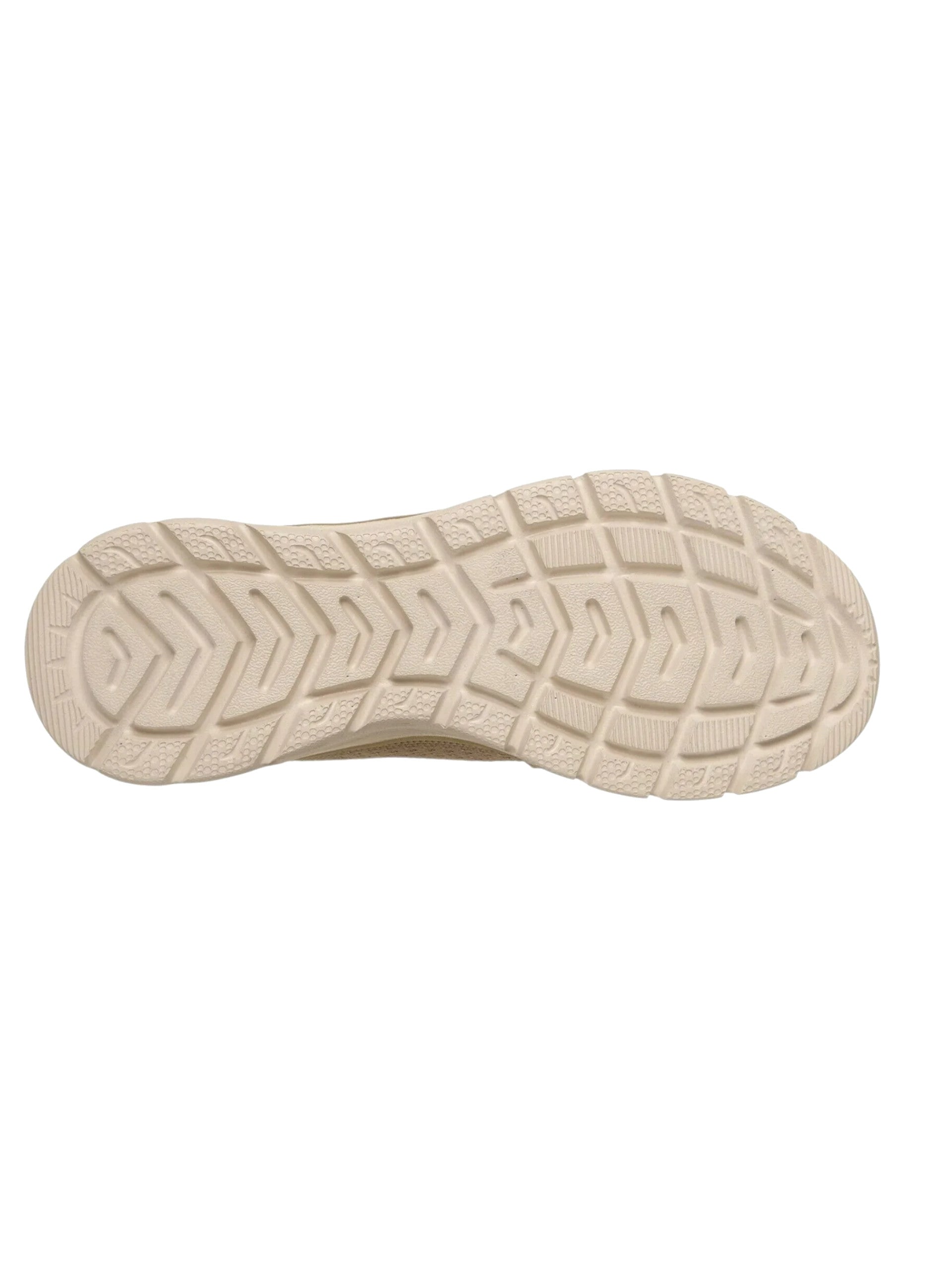 Scarpe Skechers beige da donna Fashion fit 2.0. Queste scarpe Skechers beige hanno la tomaia in tessuto, la chiusura con lacci, la suola in gomma che garantisce un corretto sostegno dell'arco plantare e una soletta Skechers Air-Cooled Memory Foam.