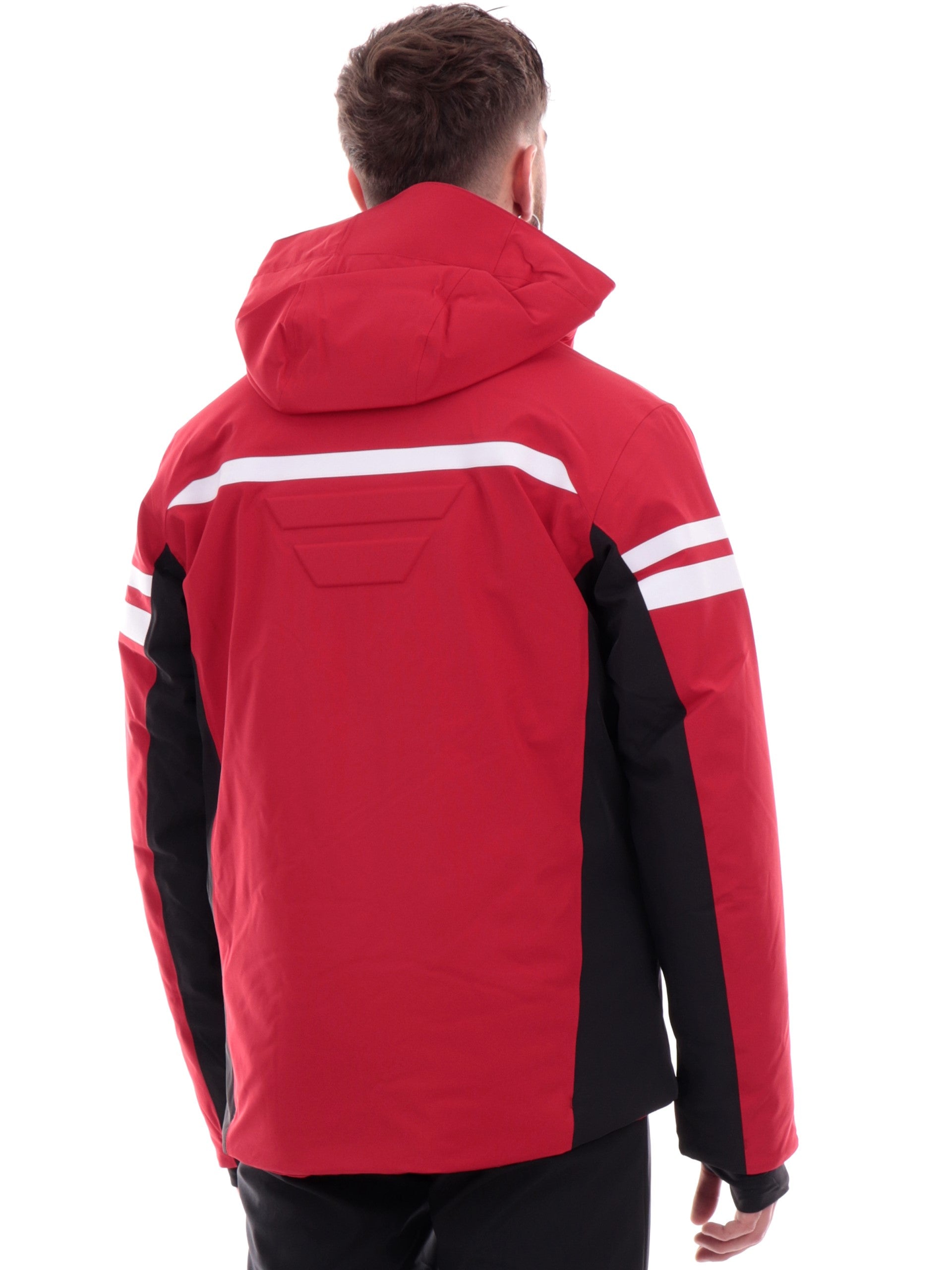 Giacca sci CMP rossa e nera da uomo inserti bianchi 34W4747, realizzata in tessuto tecnico antineve e antivento. Questa giacca neve CMP rossa e nera ha il cappuccio rimovibile regolabile con coulisse, la chiusura full zip centrale, una tasca sulla manica sinistra per lo skipass, la ghetta interna elasticizzata e due tasche laterali con zip. Logo del brand a contrasto colore.