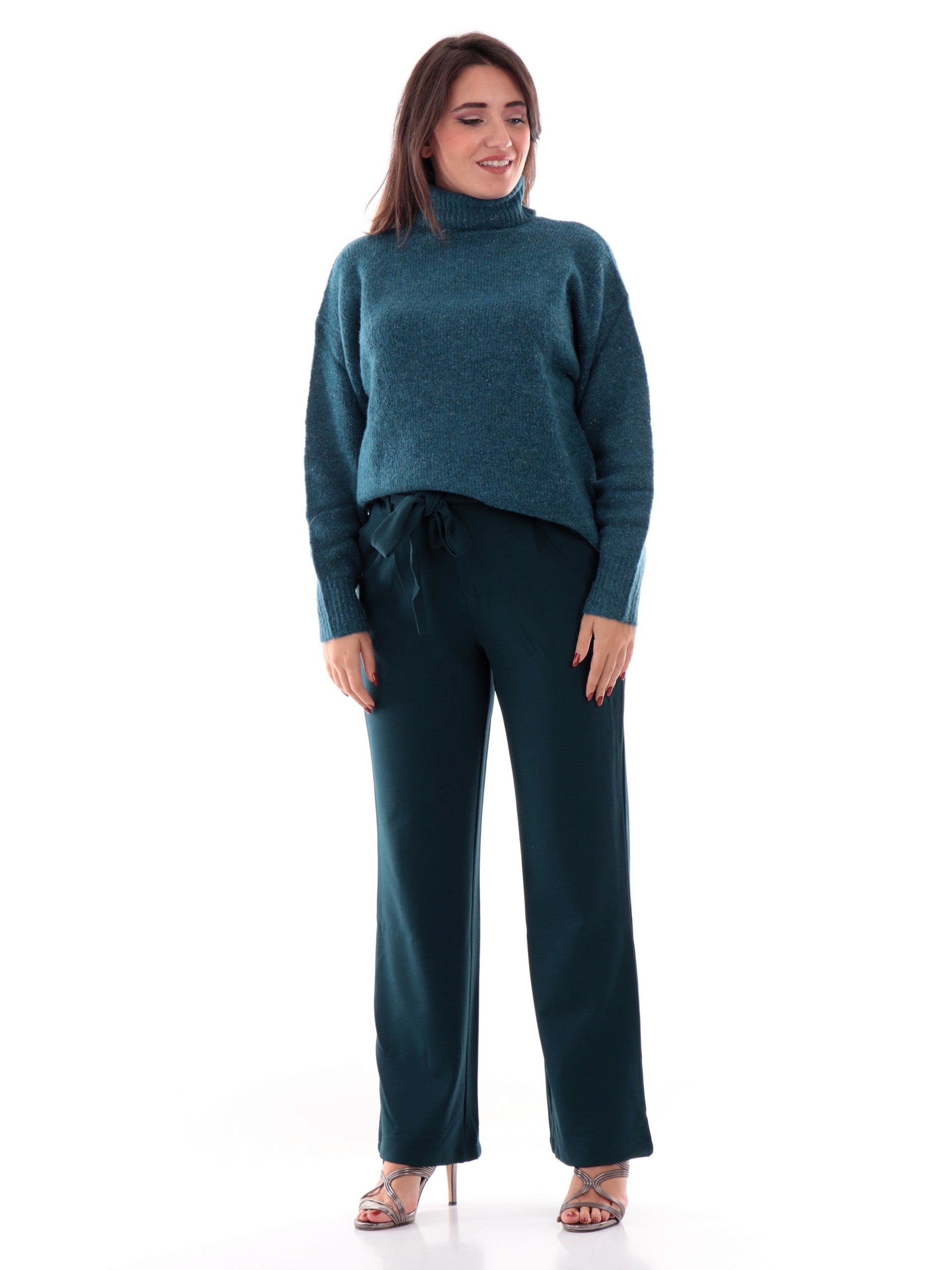 Pantaloni palazzo Tiffosi verdi da donna Joey 1 10056393. Questi pantaloni donna Tiffosi hanno la chiusura con bottone più zip, la banda elastica sul punto vita, la cintura removibile, due tasche laterali aperte con taglio obliquo e il fondo ampio.