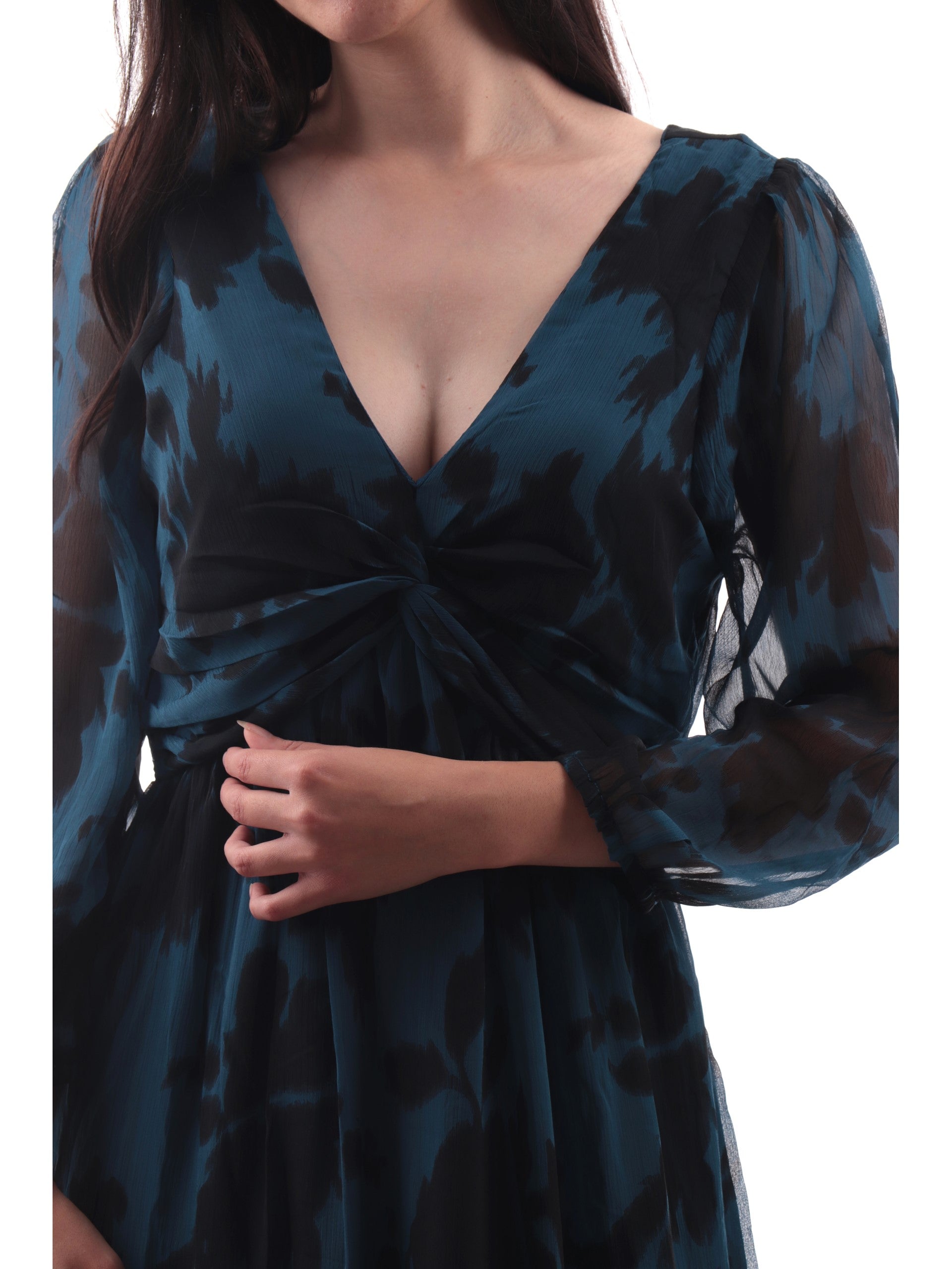 Vestito scollo a V Tiffosi blu da donna svasato Paz 1 10057354. Questo abito donna Tiffosi blu ha lo scollo a V, la chiusura con laccetti sul lato posteriore, le maniche lunghe e il fondo svasato.