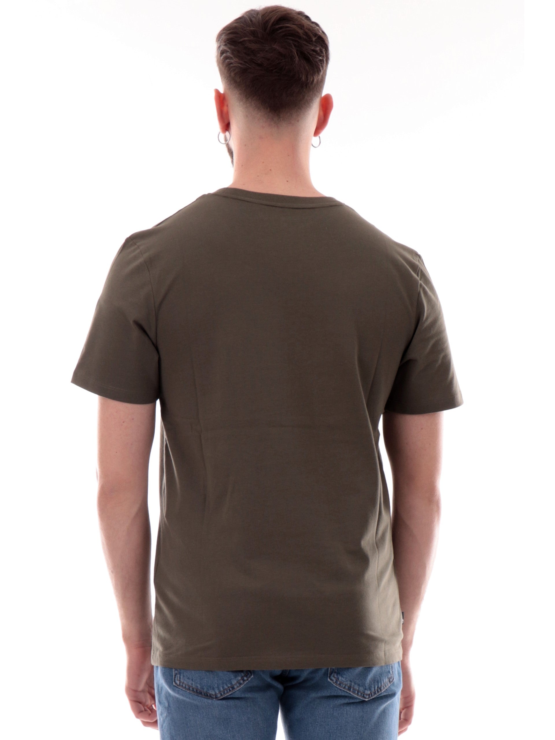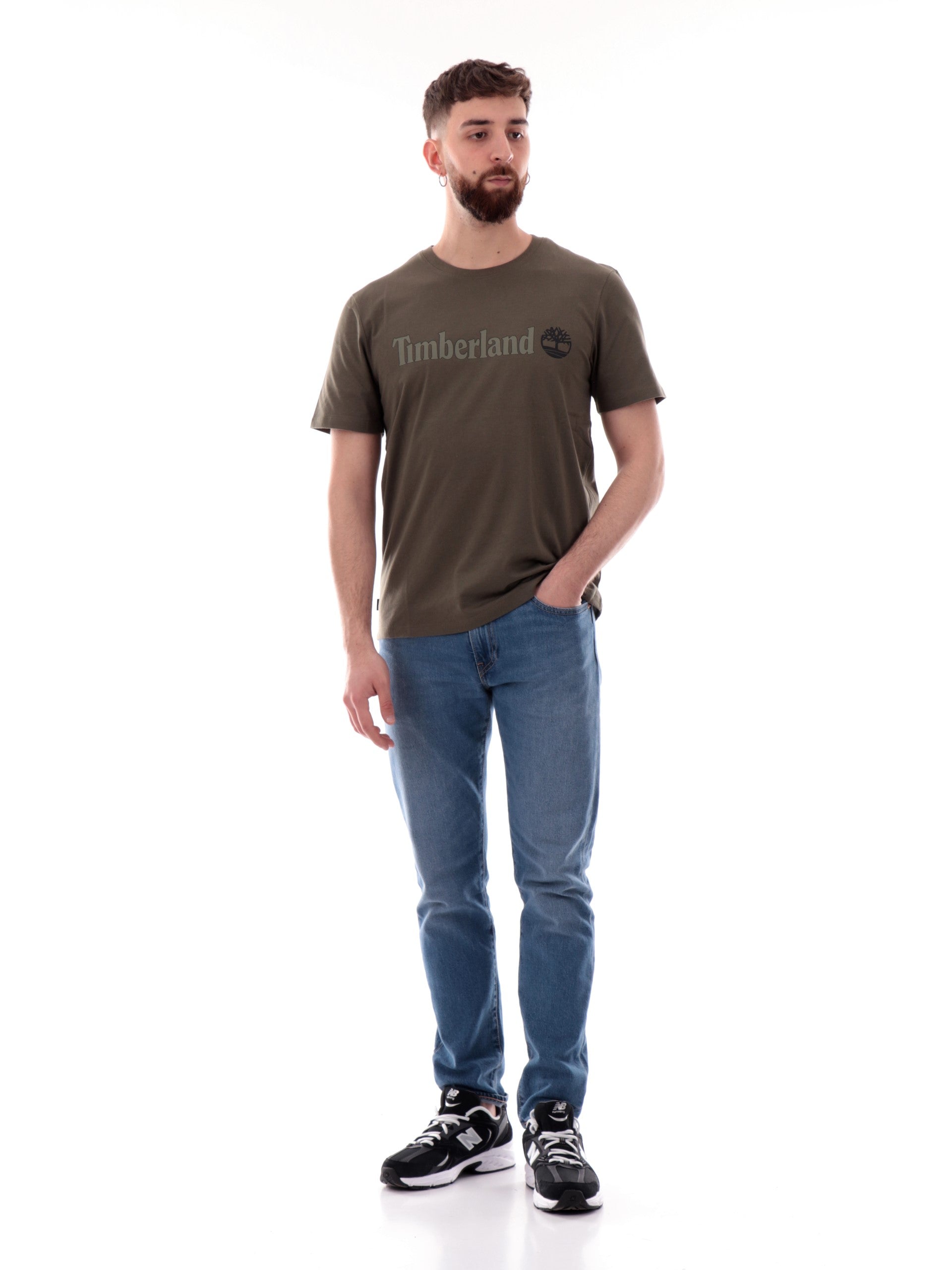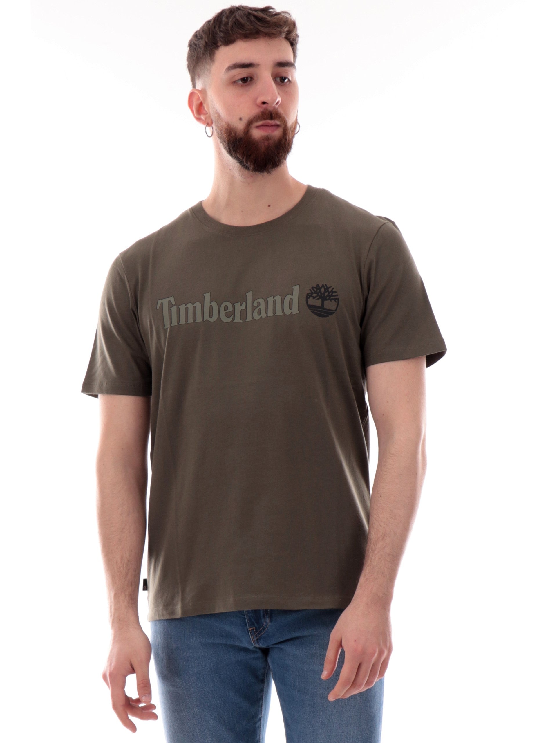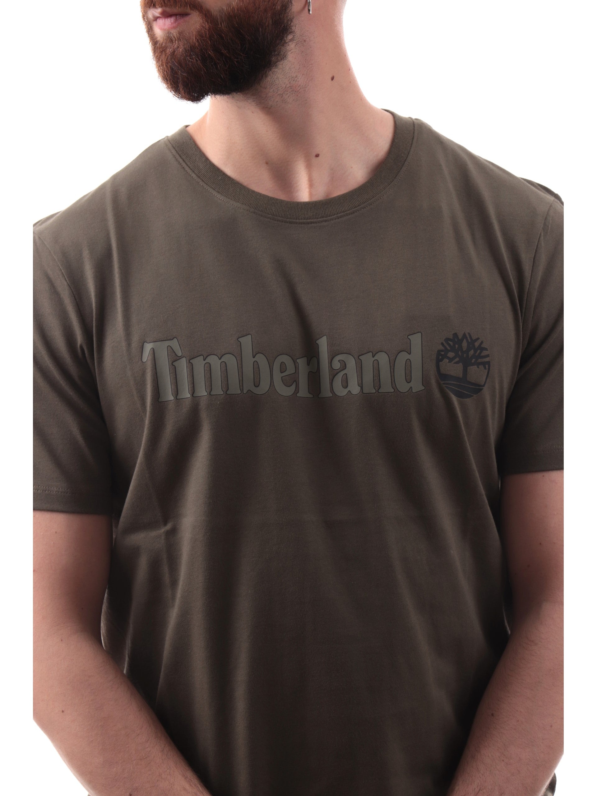 Maglia Timberland verde militare da uomo maxi stampa Timberland Kennebec River TB0A5UPQ, realizzata in 100% puro cotone. Questa t-shirt Timberland verde militare girocollo ha le maniche corte e la maxi stampa Timberland a contrasto colore.